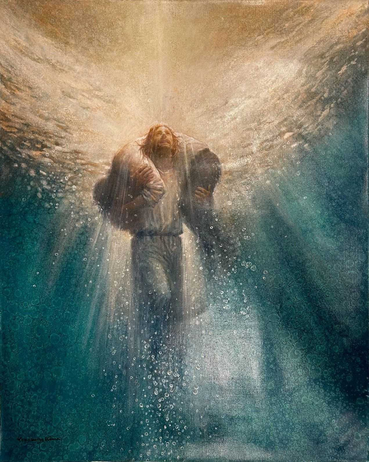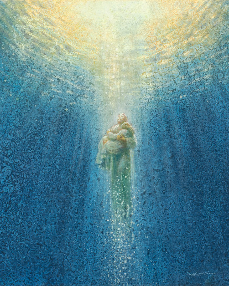 The Hand of God was painted by to give hope to the viewer: helping them imagine themselves sinking in the water rather than Peter. Further, Yongsung hoped we would imagine Christ reaching for our hand, instead of Christ reaching for Peter's hand.
