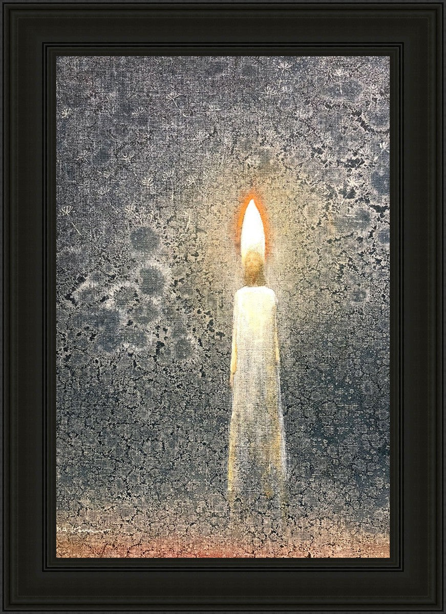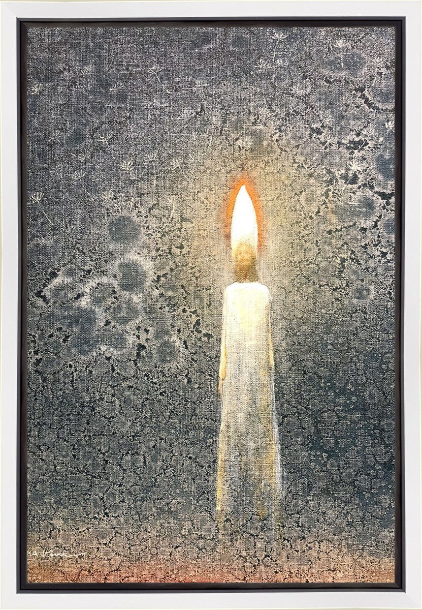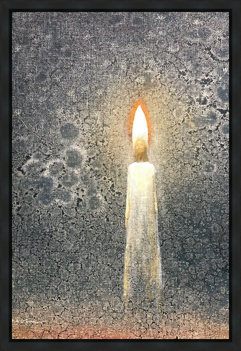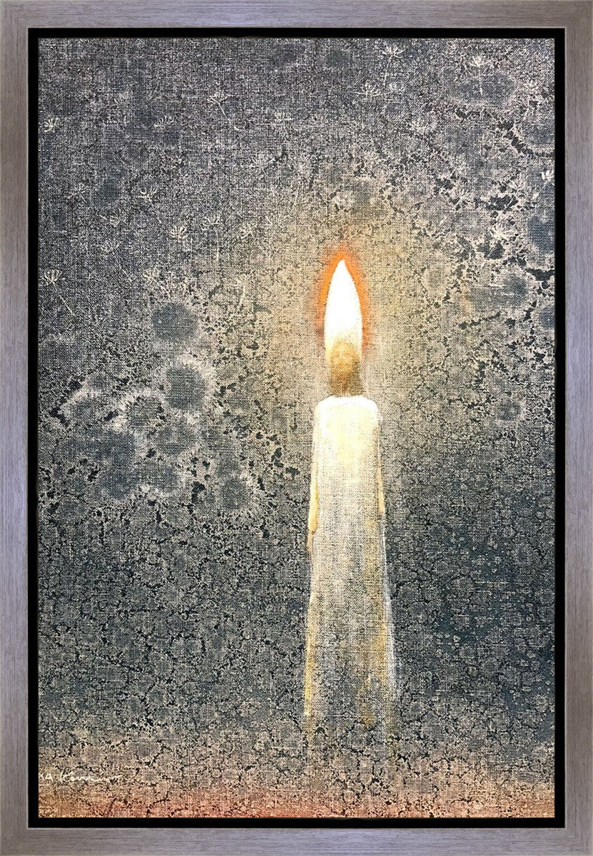 This painting by Yongsung Kim depicts the Light of Christ as a candle. The candle burns to provide light and warmth, ultimately sacrificing itself in the process. In the background are dandelion seeds, spreading throughout the world as the gospel spreads and touches the lives of people everywhere.