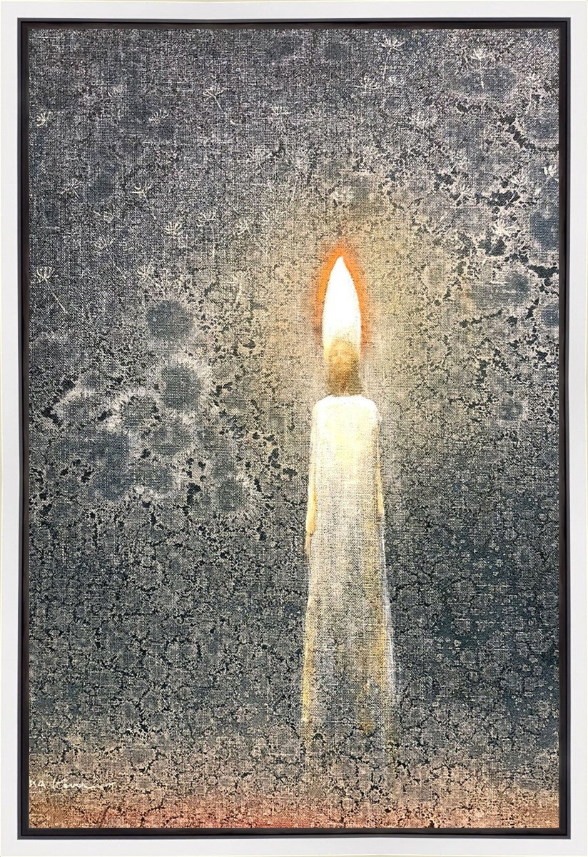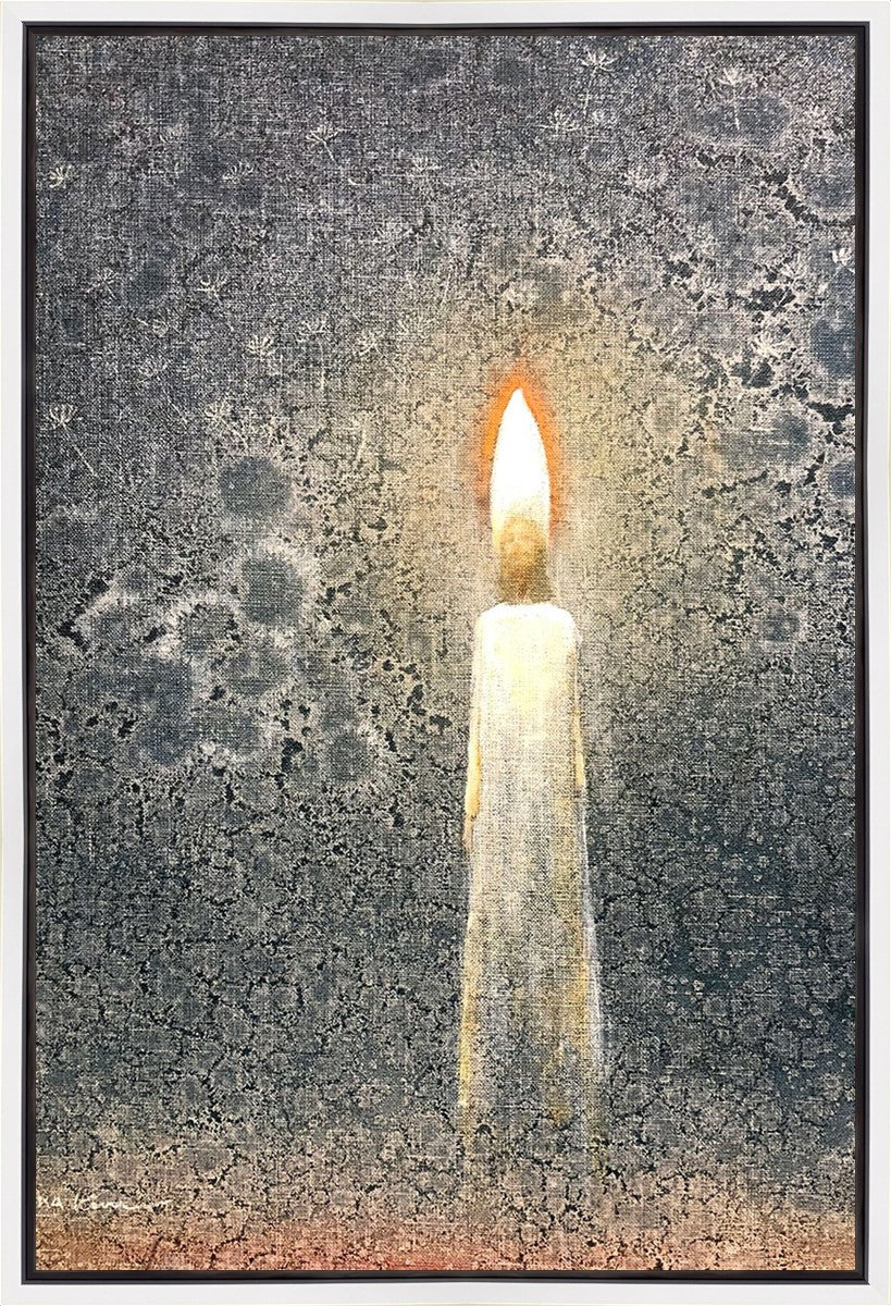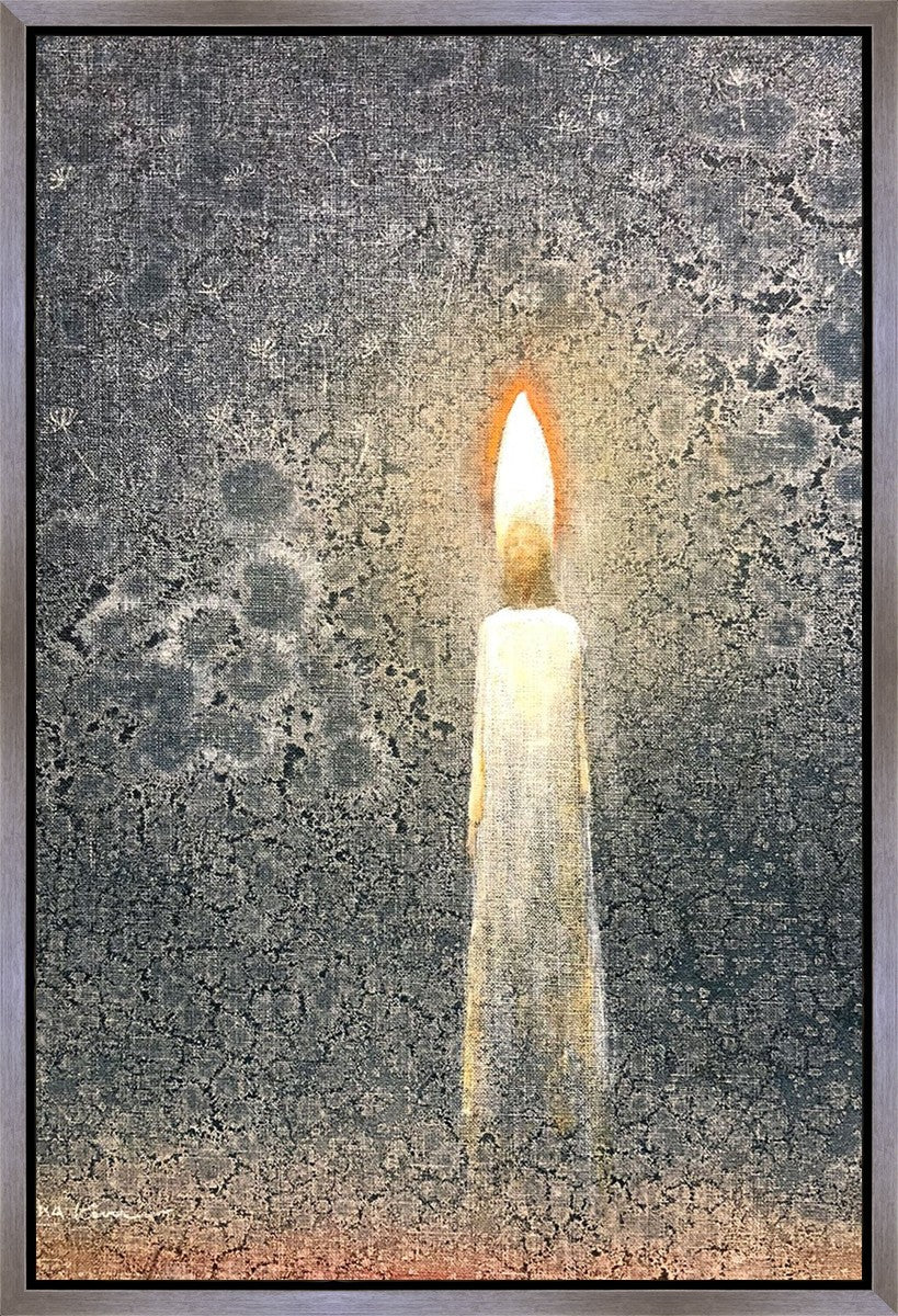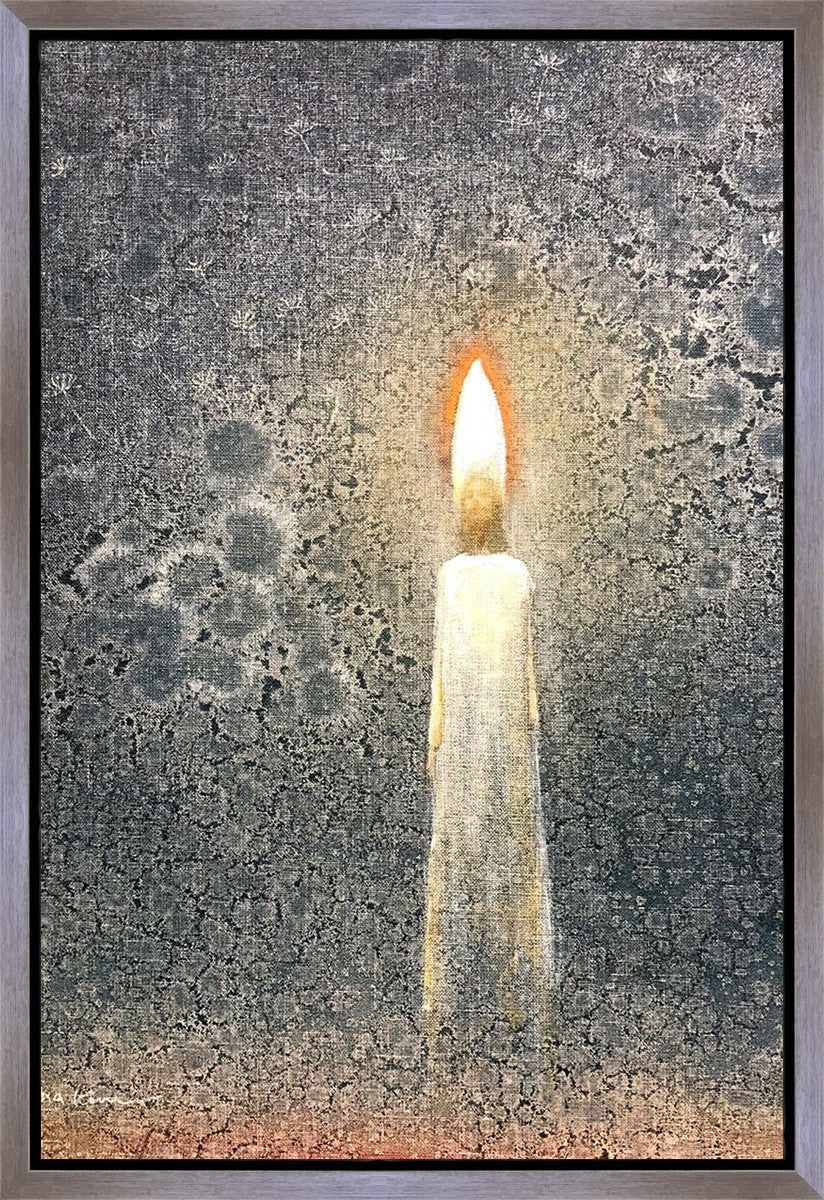 This painting by Yongsung Kim depicts the Light of Christ as a candle. The candle burns to provide light and warmth, ultimately sacrificing itself in the process. In the background are dandelion seeds, spreading throughout the world as the gospel spreads and touches the lives of people everywhere.