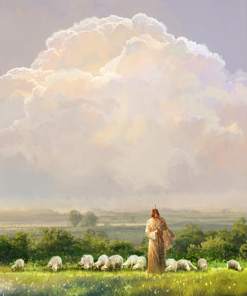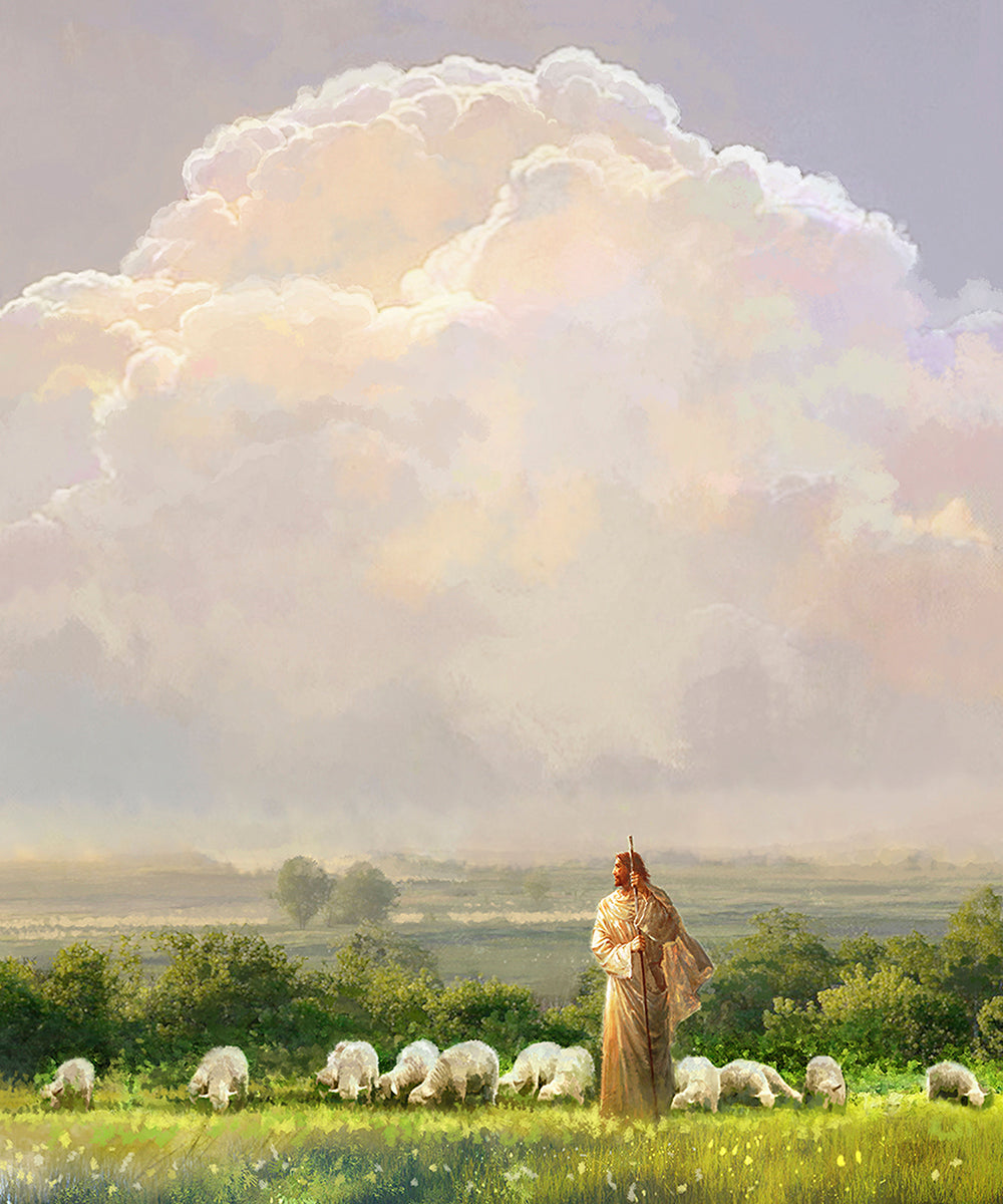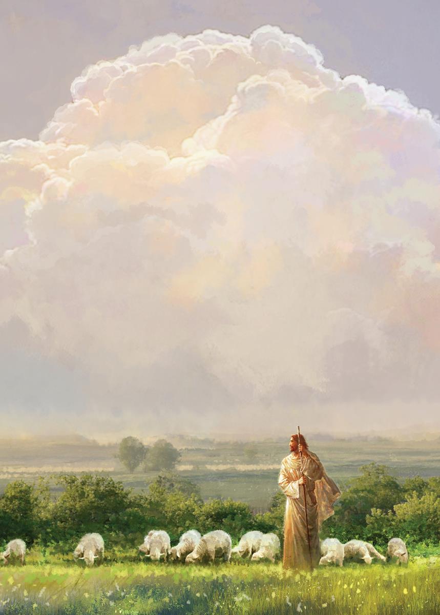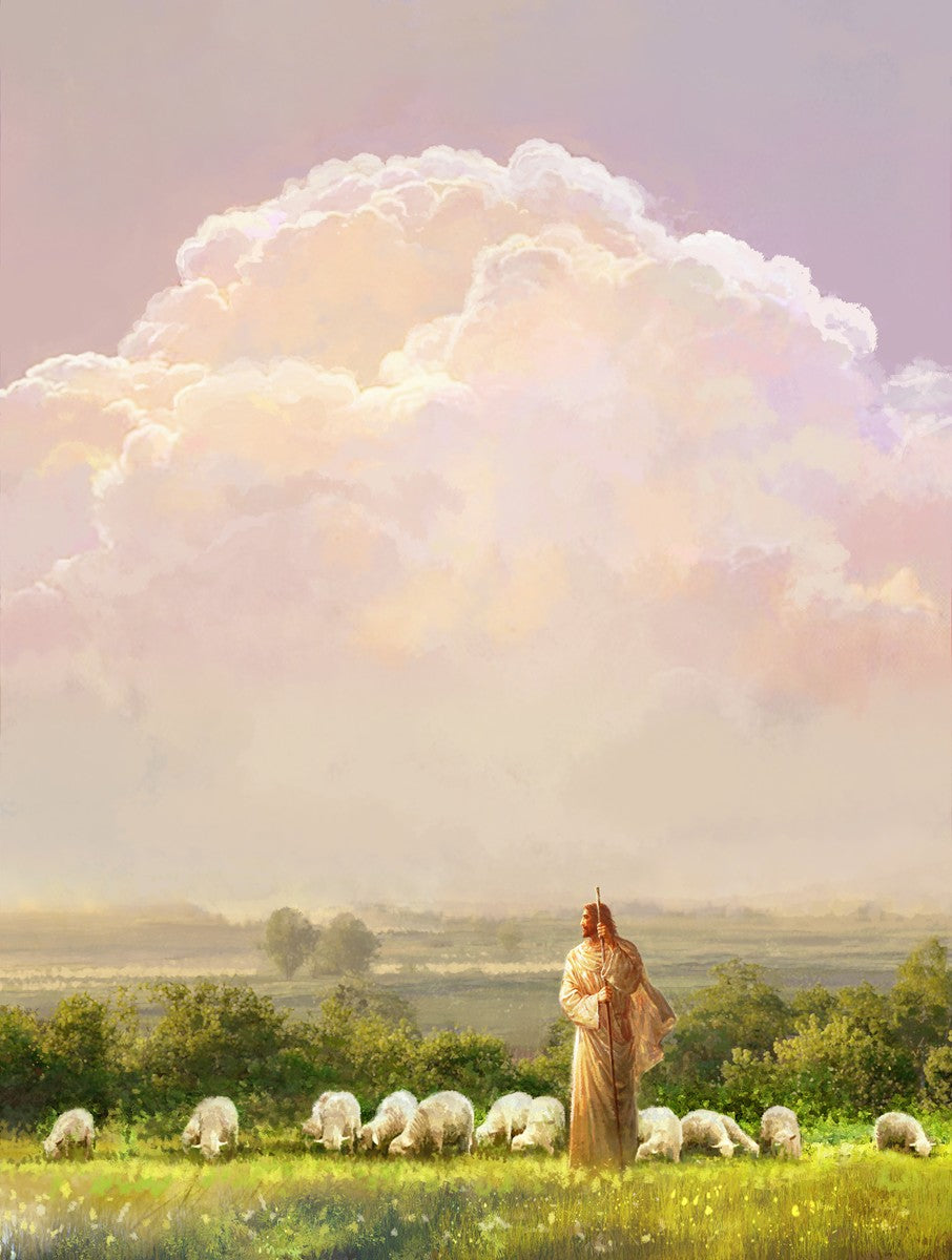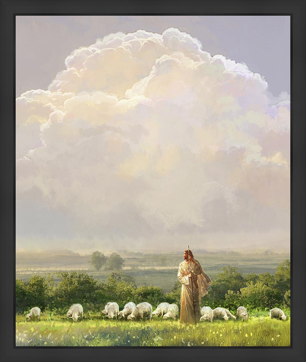 "I Shall Not Want" by Yongsung Kim features Jesus surrounded by His flock "