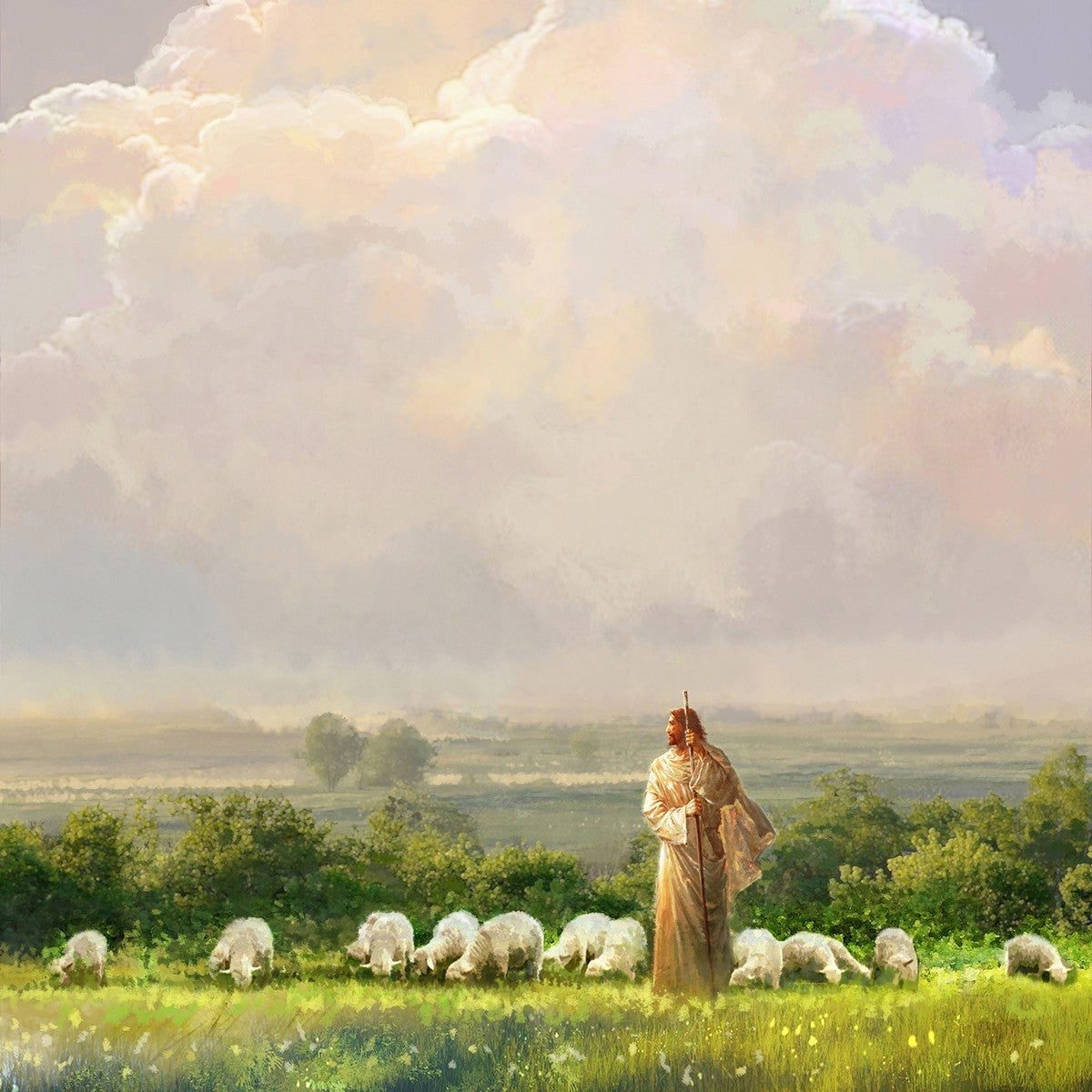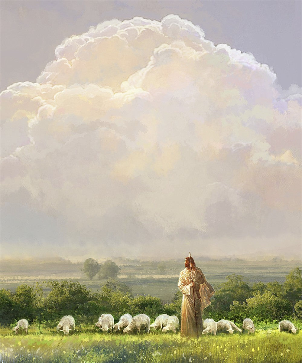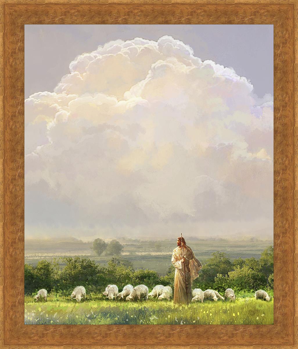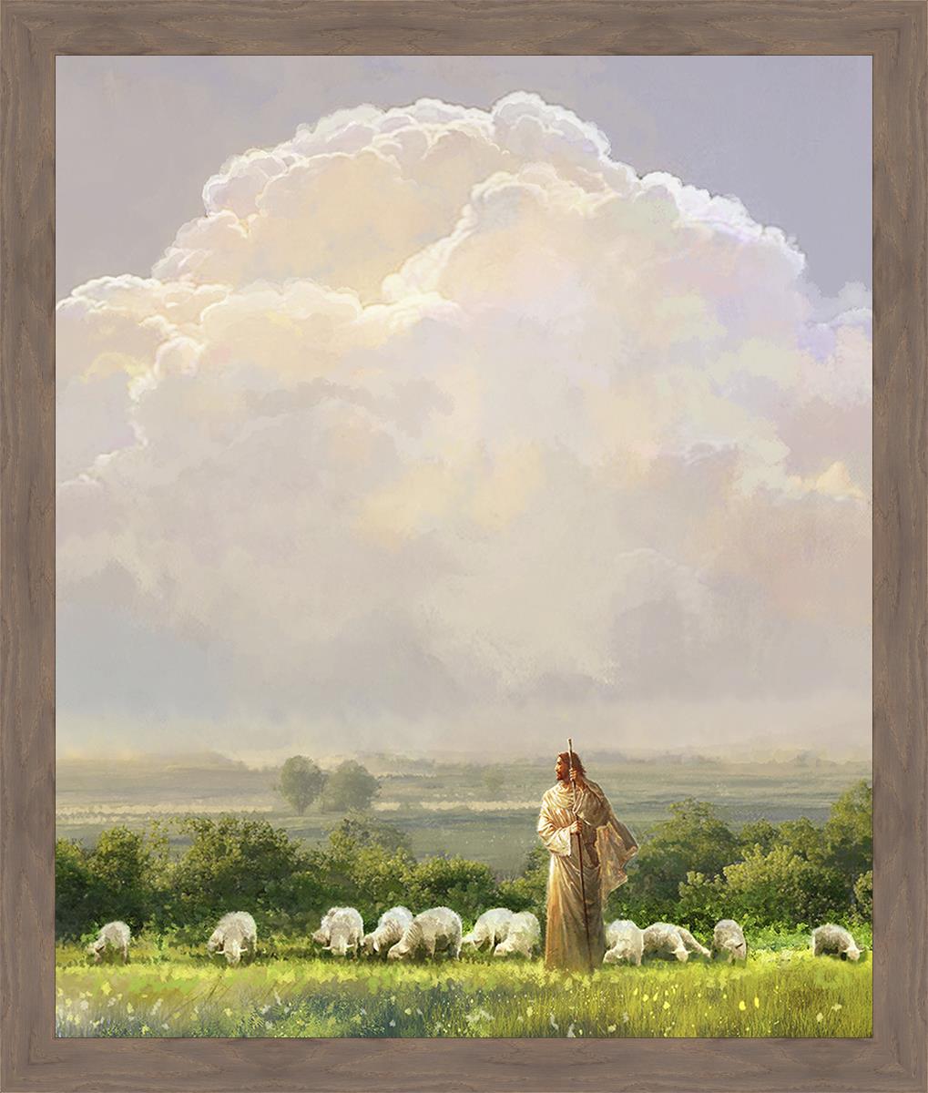 "I Shall Not Want" by Yongsung Kim features Jesus surrounded by His flock "