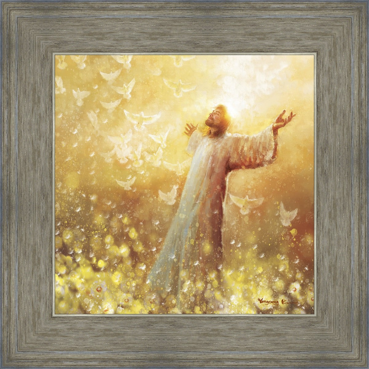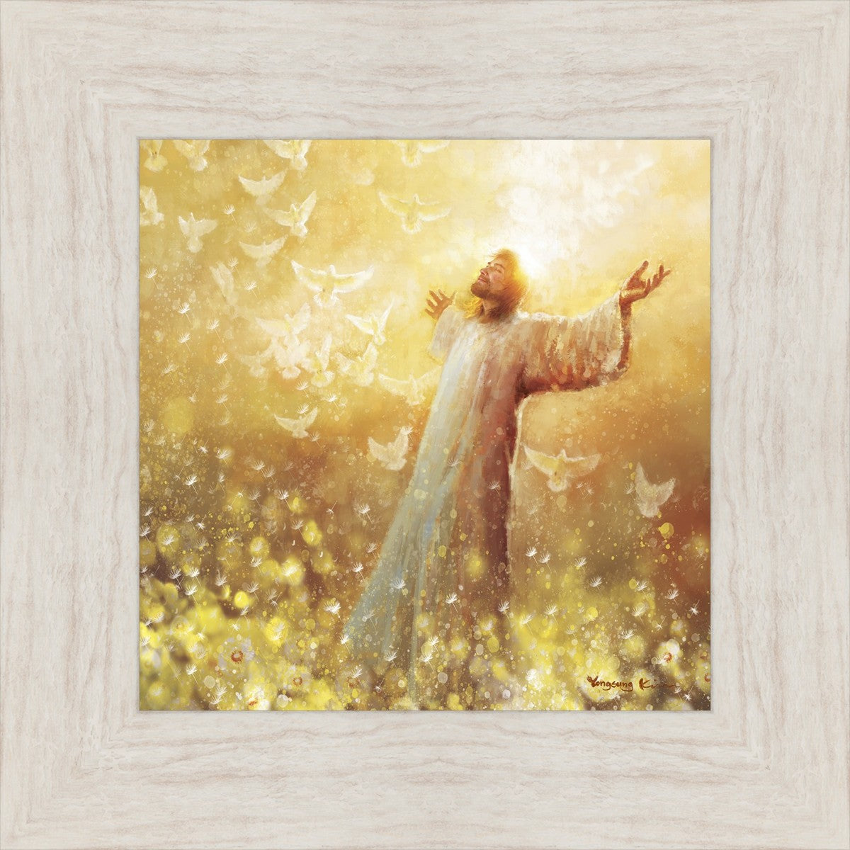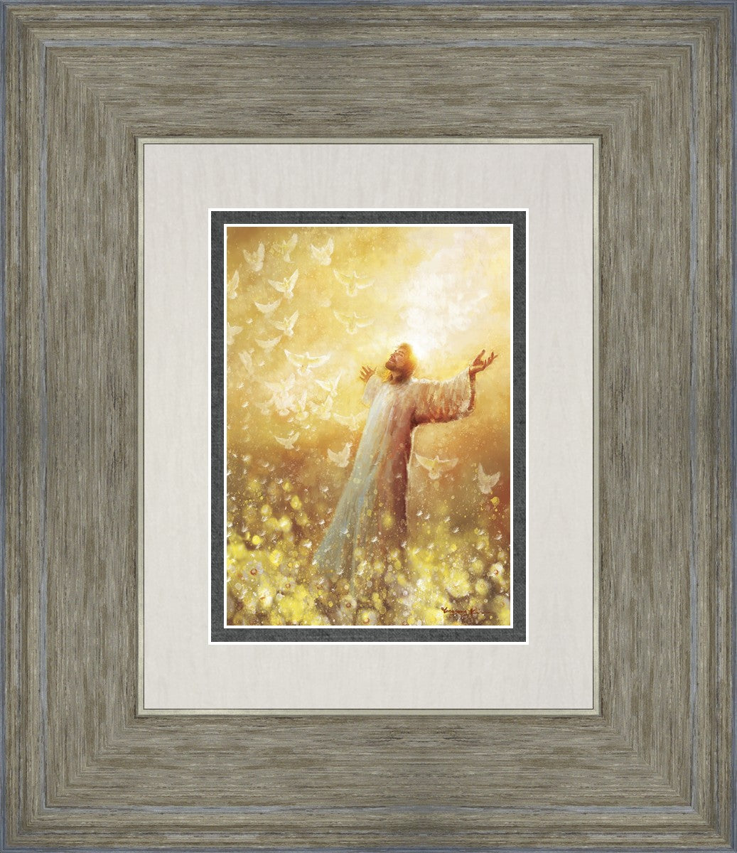 My husband had a dream or vision many years ago. I won’t elaborate on the circumstances but he saw that he was surrounded only by “Golden Raindrops” falling on him. He said all he could do was lift his arms and shout “Hallelujah” over and over as he was overwhelmed by the presence of God. My dear husband went to be with Jesus June 7, 2024. I have had a hard time because I. Miss him so much. But through a Facebook promo I became aware of this artist. And when I saw this painting the first thing I saw were golden raindrops. I sensed the Holy Spirit reminding me of my husbands vision and assuring me he saw them in Heaven as he ran to the Savior. And in running he was complete because he was an amputee and hadn’t walked in three years.