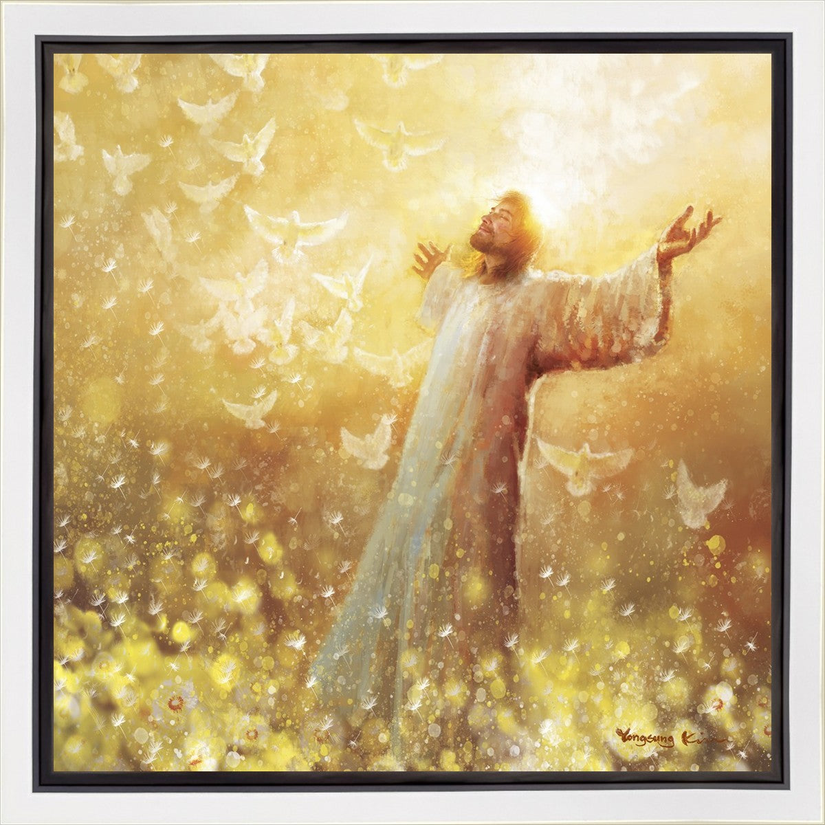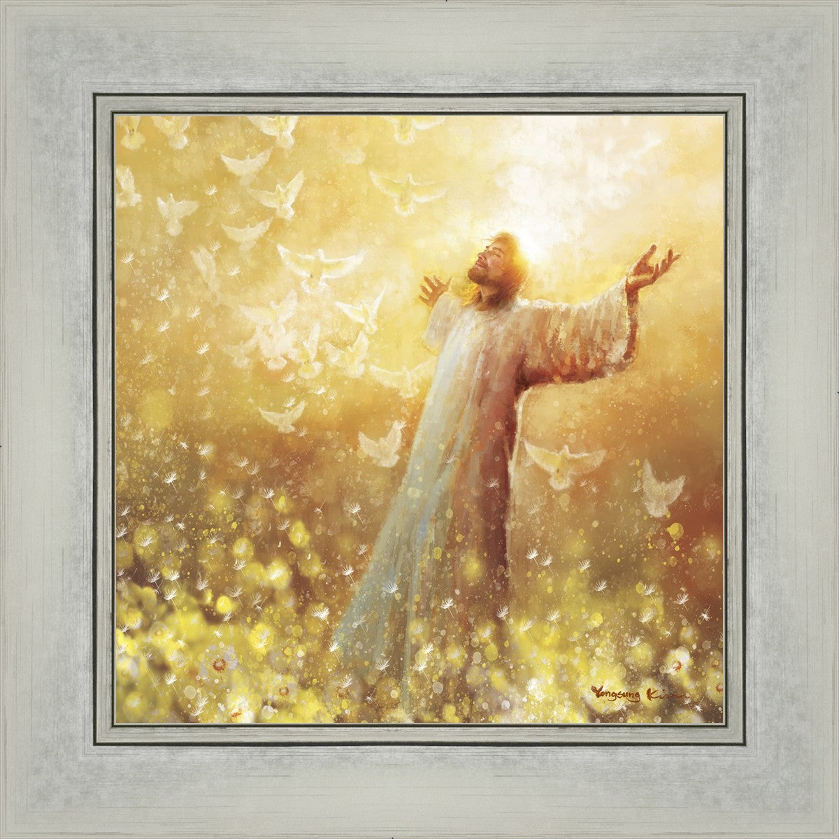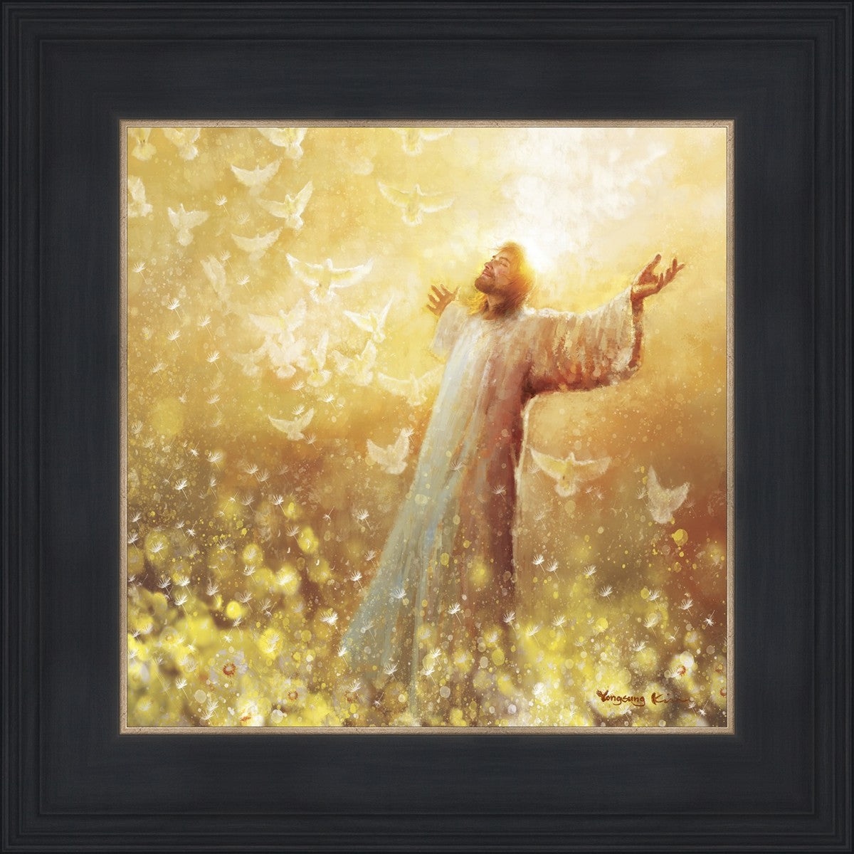 My husband had a dream or vision many years ago. I won’t elaborate on the circumstances but he saw that he was surrounded only by “Golden Raindrops” falling on him. He said all he could do was lift his arms and shout “Hallelujah” over and over as he was overwhelmed by the presence of God. My dear husband went to be with Jesus June 7, 2024. I have had a hard time because I. Miss him so much. But through a Facebook promo I became aware of this artist. And when I saw this painting the first thing I saw were golden raindrops. I sensed the Holy Spirit reminding me of my husbands vision and assuring me he saw them in Heaven as he ran to the Savior. And in running he was complete because he was an amputee and hadn’t walked in three years.