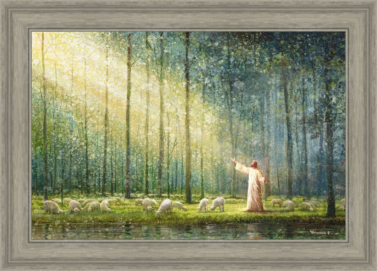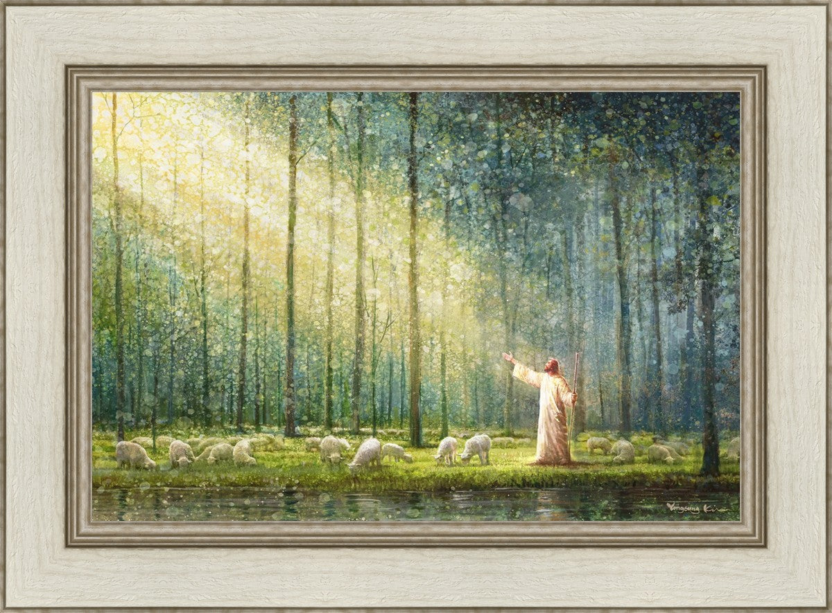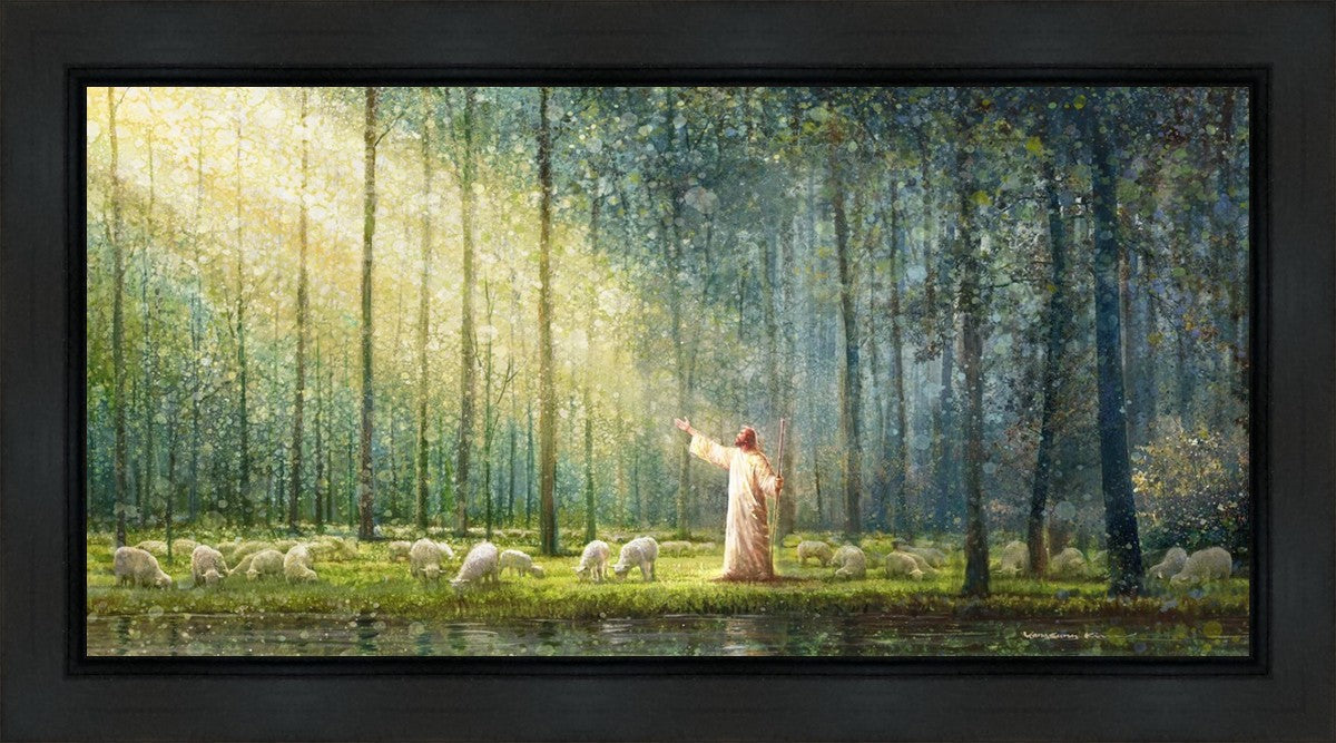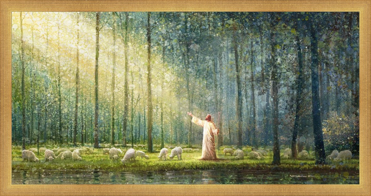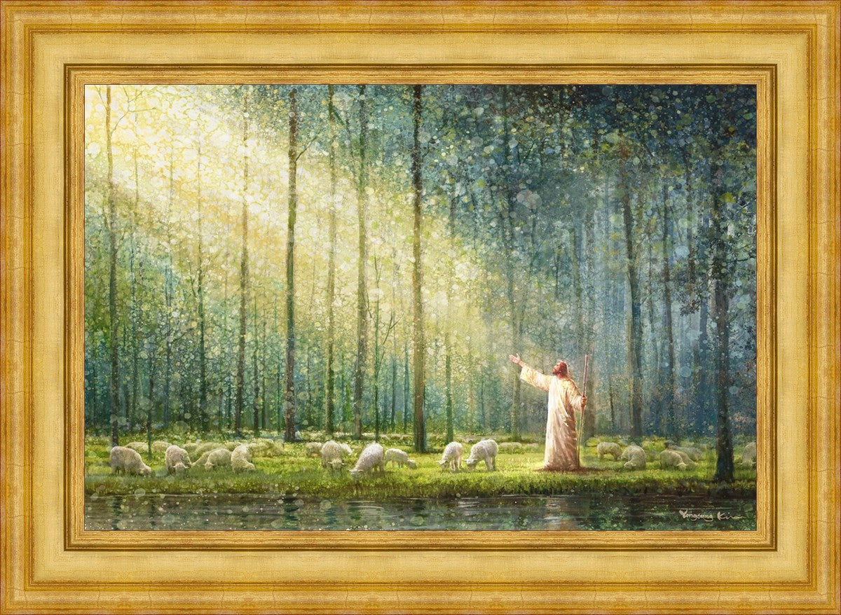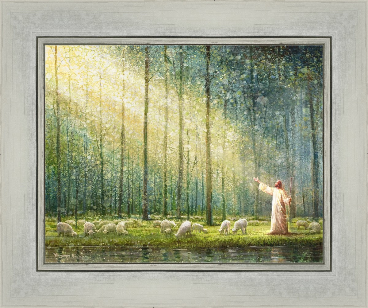 What is the promise of Zion? In Yongsung Kim's painting Rest, inspired by Jeremiah 31:12, the imagery of a lush and vibrant forest reflects a soul nourished by divine grace. Just as the trees,the grasses, and the flock are sustained by life-giving water, so too the soul is replenished by the spiritual nourishment that comes from a deep connection with God. The serene scene invites reflection on the promise of restoration and renewal, where the soul, like the garden, finds its rest in the presence of the divine.