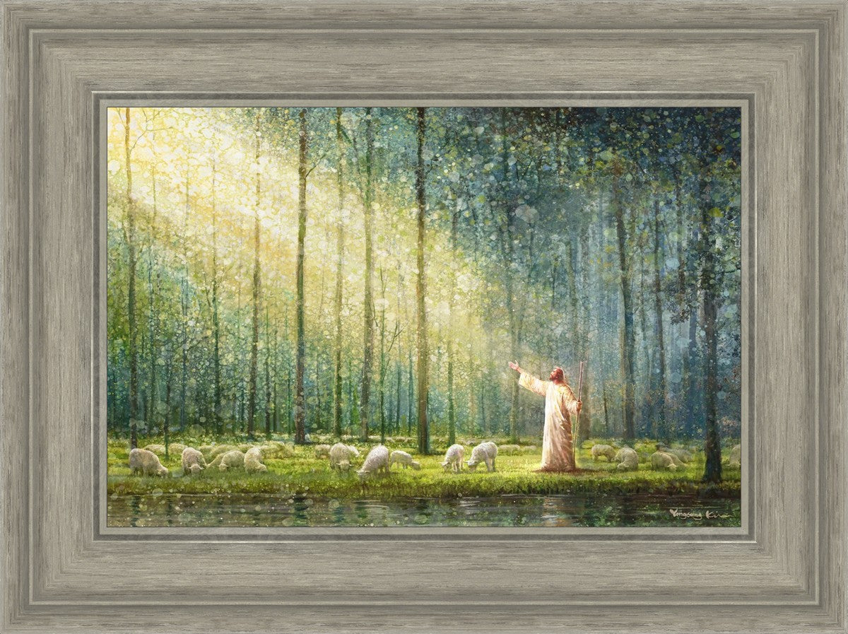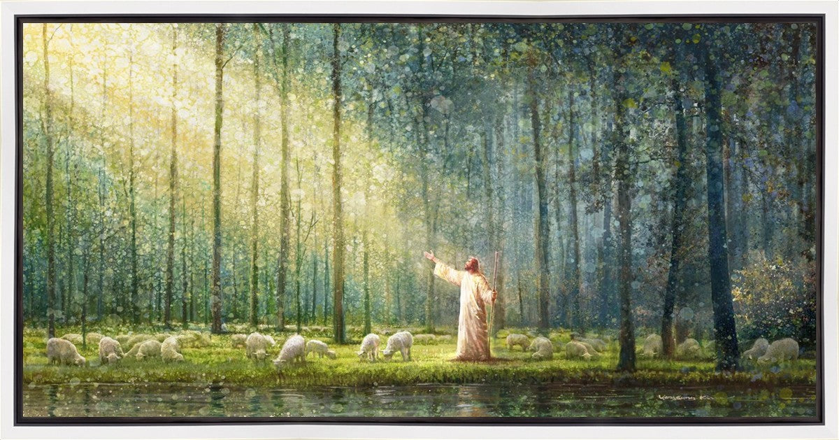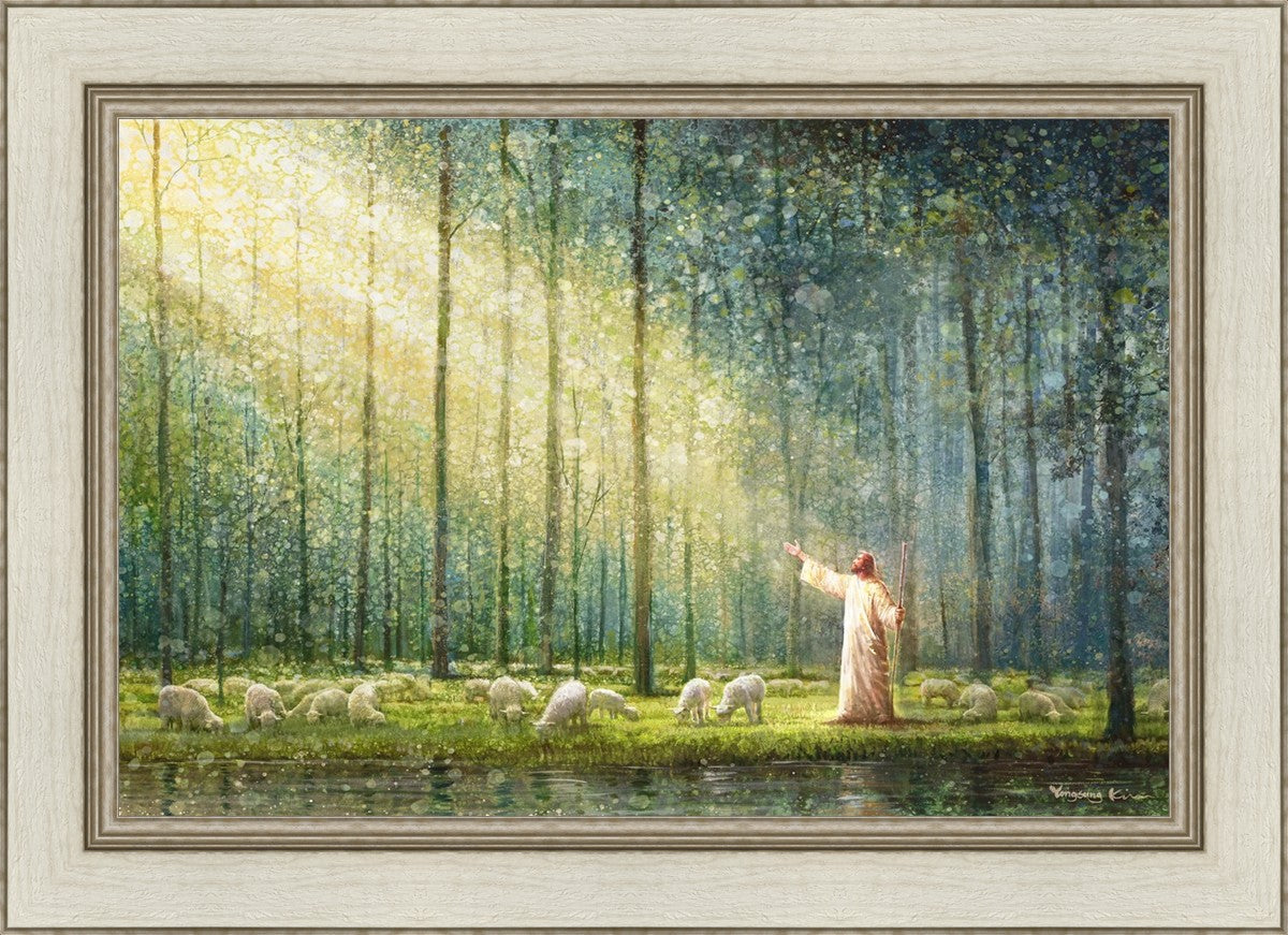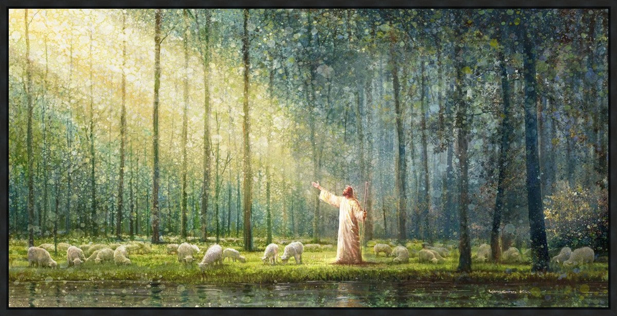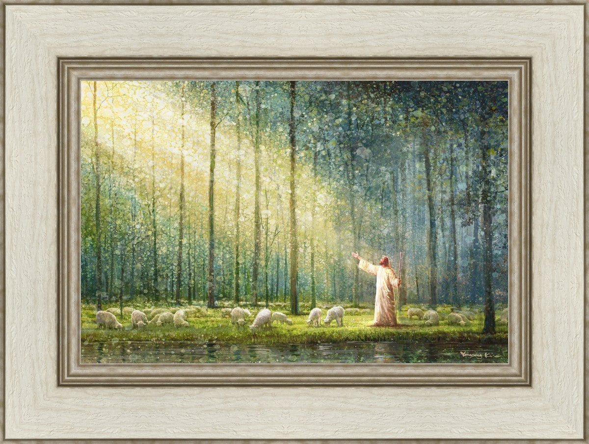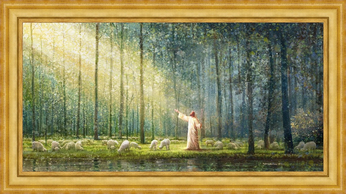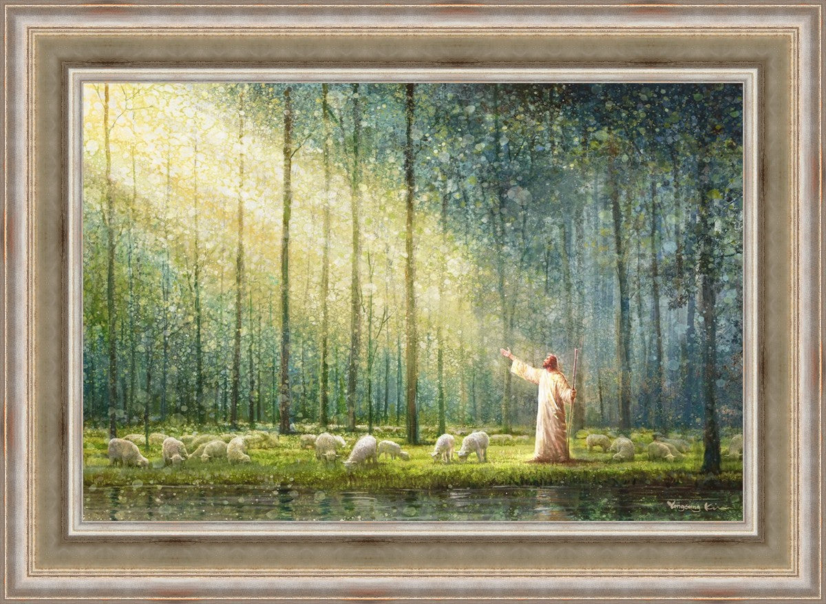 What is the promise of Zion? In Yongsung Kim's painting Rest, inspired by Jeremiah 31:12, the imagery of a lush and vibrant forest reflects a soul nourished by divine grace. Just as the trees,the grasses, and the flock are sustained by life-giving water, so too the soul is replenished by the spiritual nourishment that comes from a deep connection with God. The serene scene invites reflection on the promise of restoration and renewal, where the soul, like the garden, finds its rest in the presence of the divine.