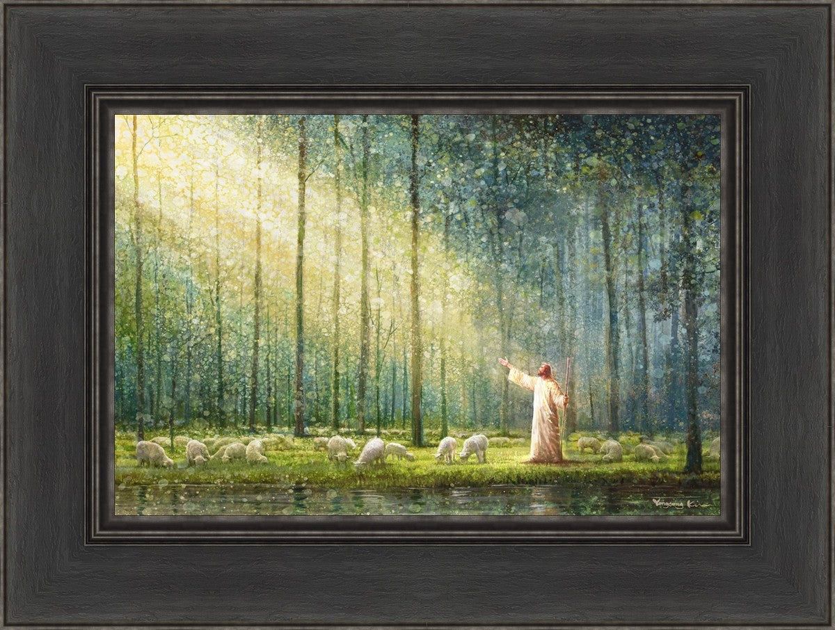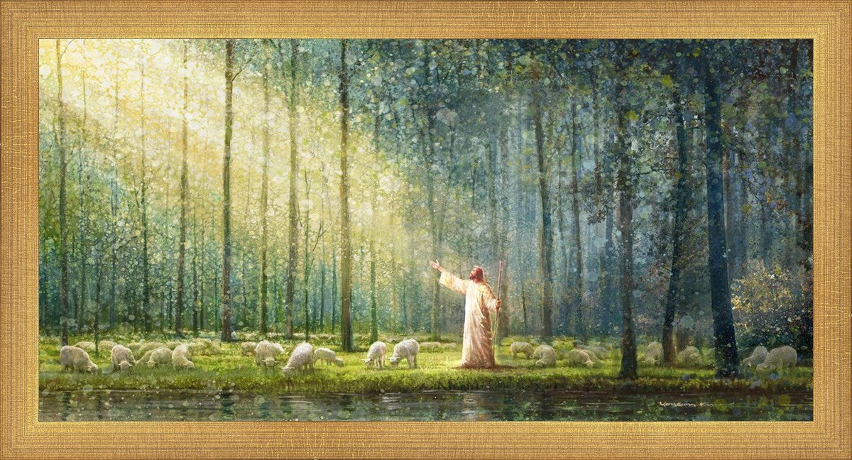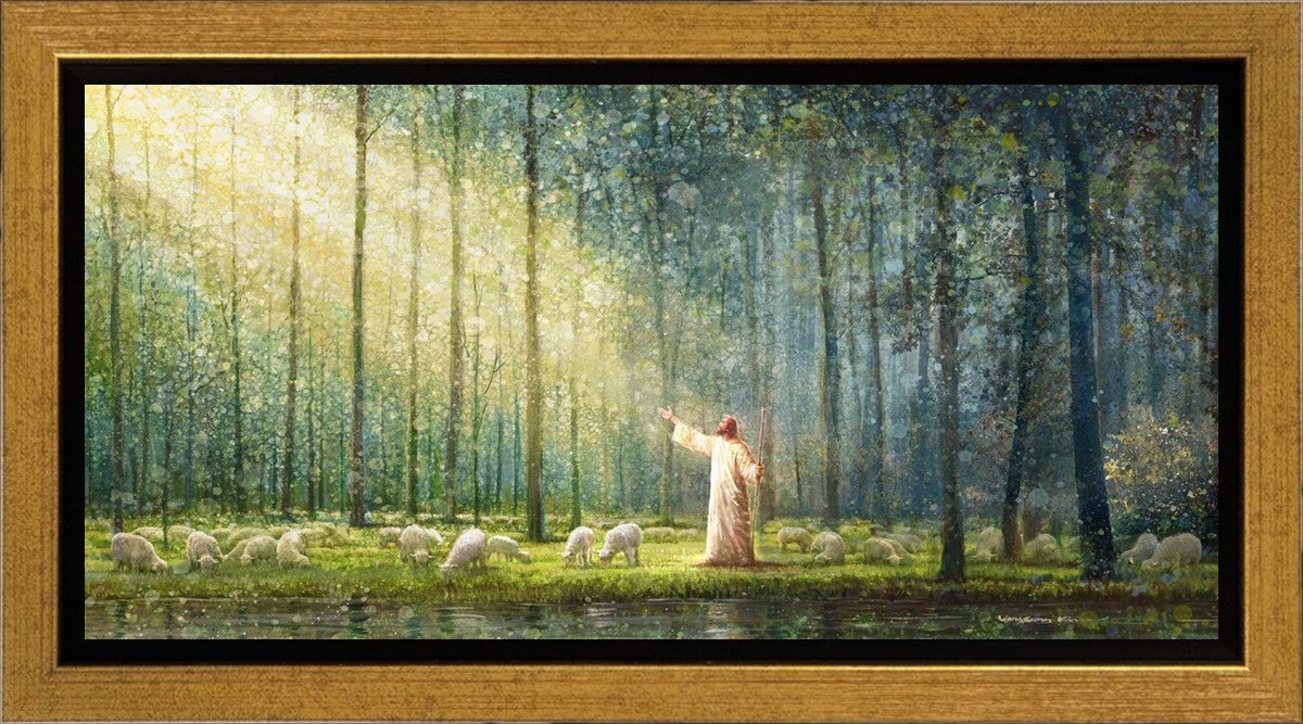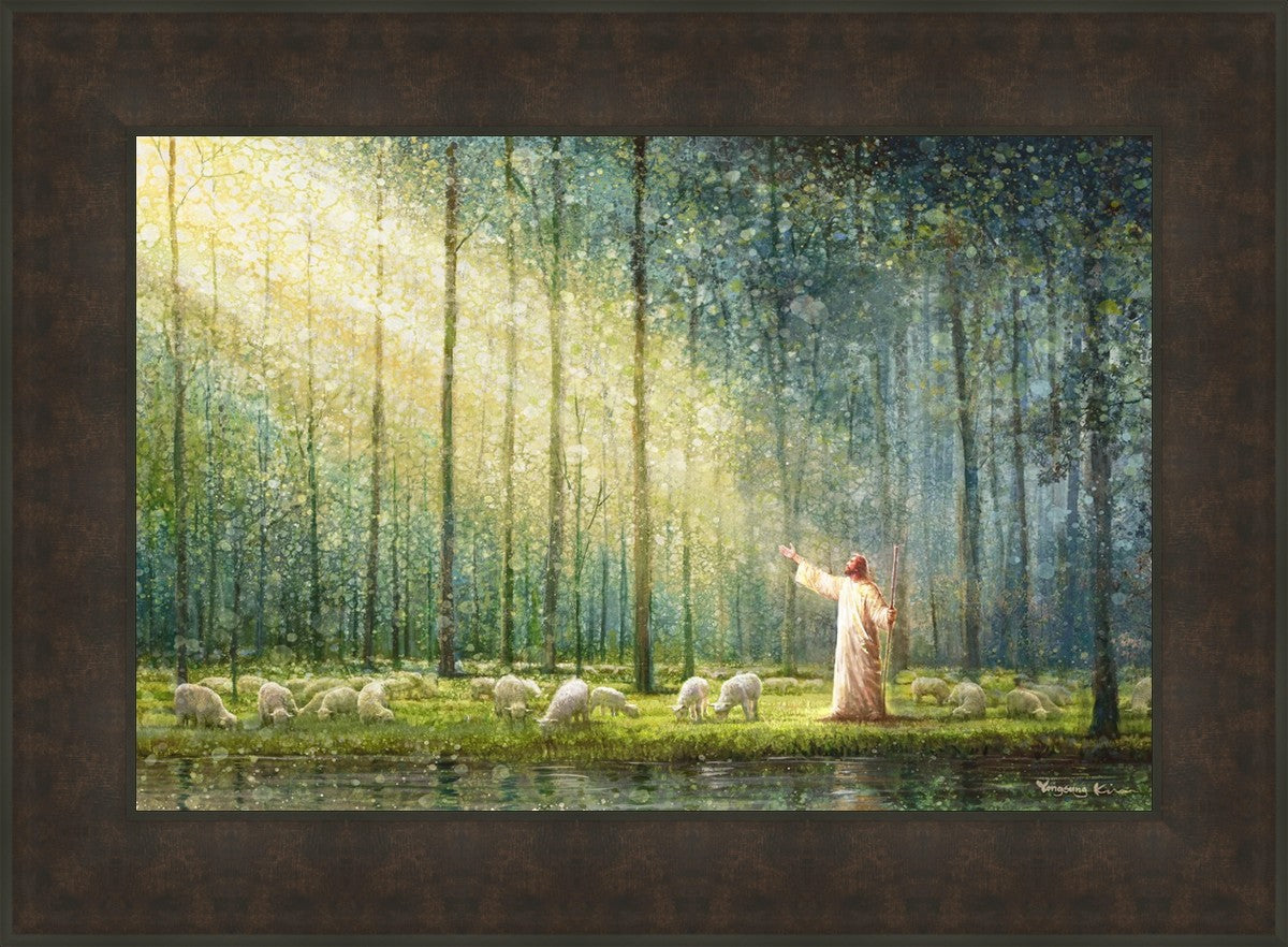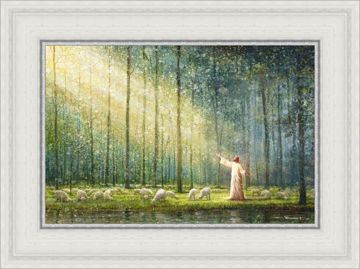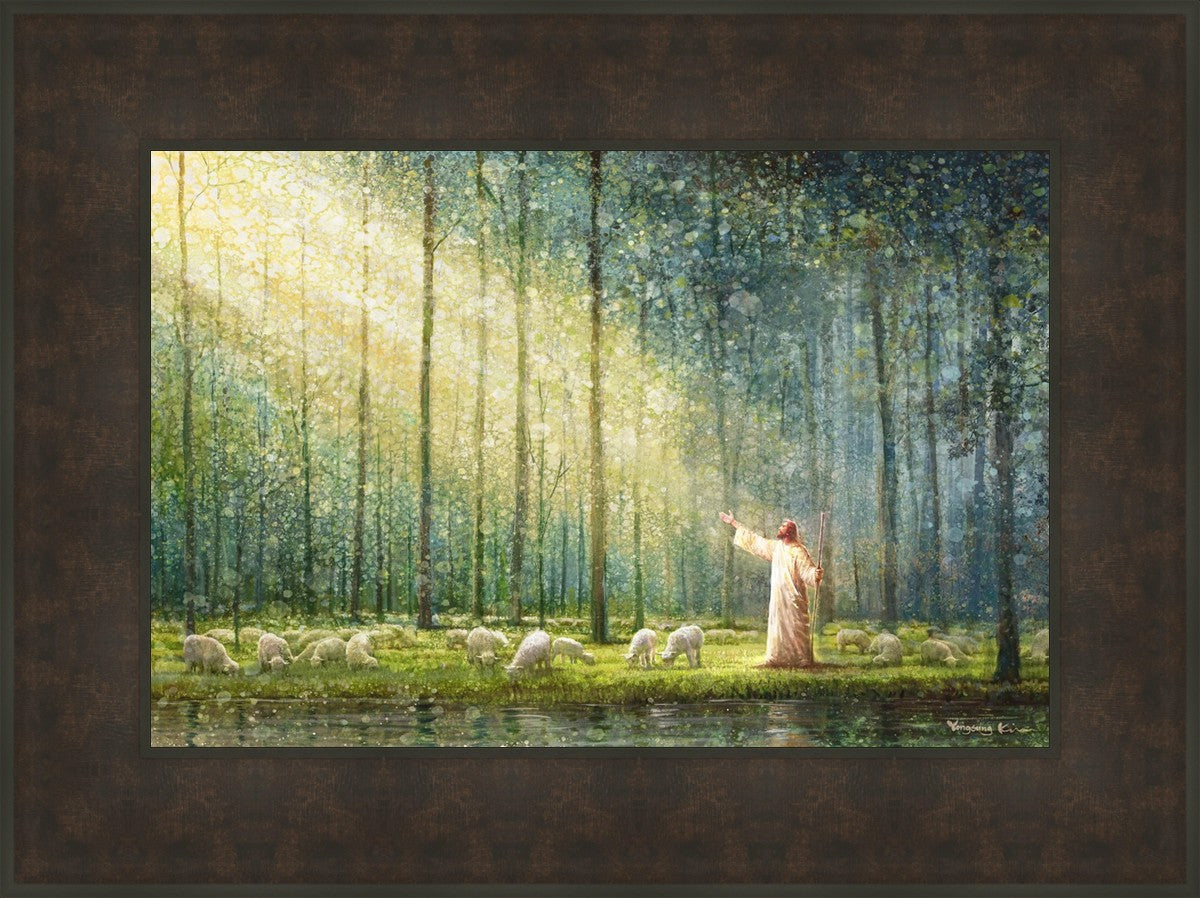 What is the promise of Zion? In Yongsung Kim's painting Rest, inspired by Jeremiah 31:12, the imagery of a lush and vibrant forest reflects a soul nourished by divine grace. Just as the trees,the grasses, and the flock are sustained by life-giving water, so too the soul is replenished by the spiritual nourishment that comes from a deep connection with God. The serene scene invites reflection on the promise of restoration and renewal, where the soul, like the garden, finds its rest in the presence of the divine.