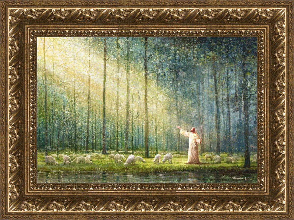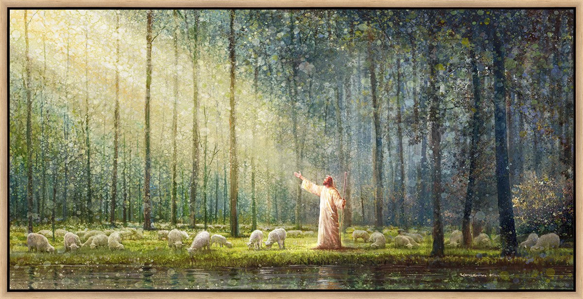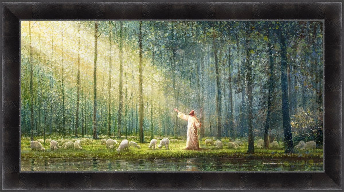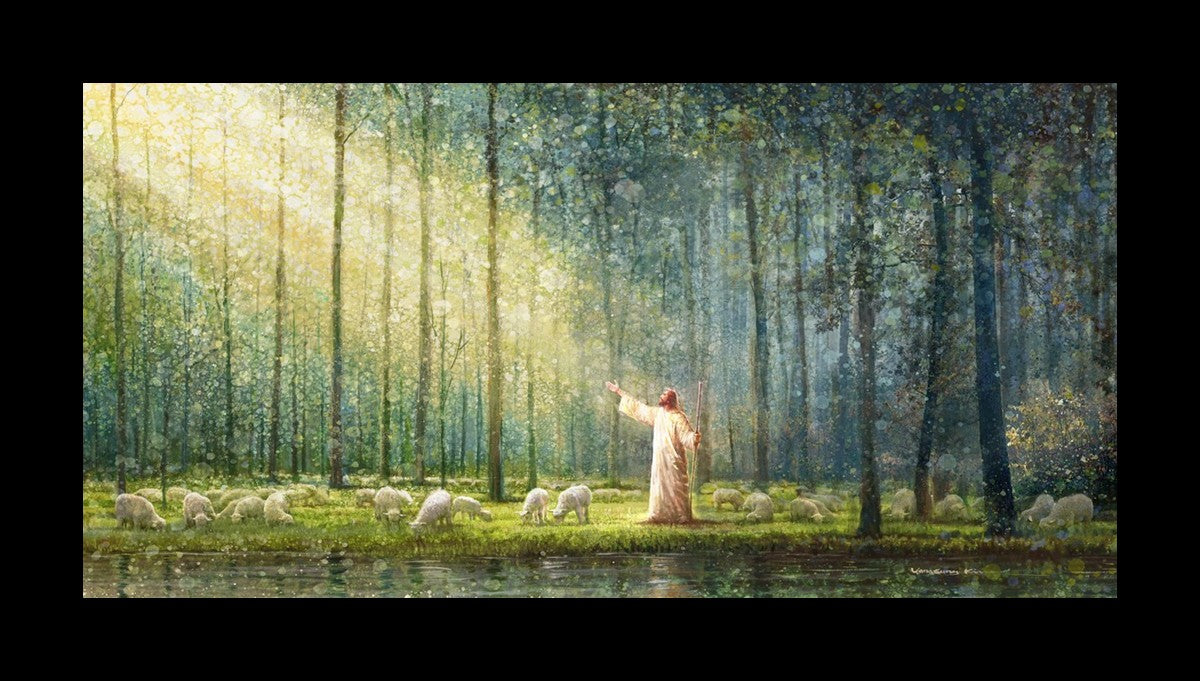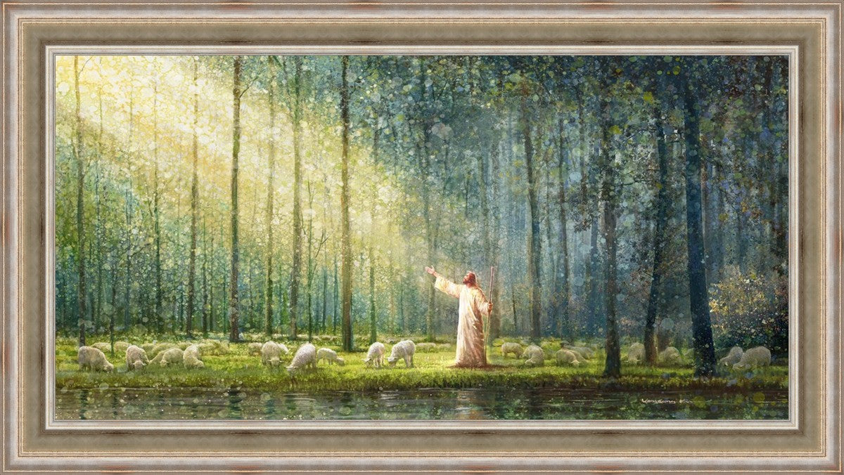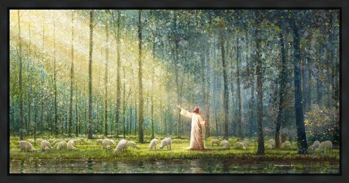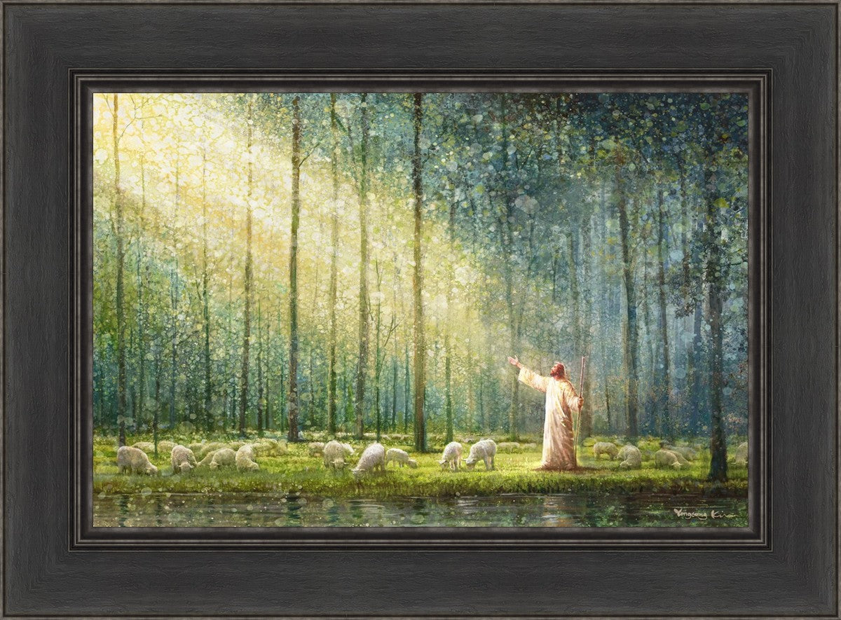 What is the promise of Zion? In Yongsung Kim's painting Rest, inspired by Jeremiah 31:12, the imagery of a lush and vibrant forest reflects a soul nourished by divine grace. Just as the trees,the grasses, and the flock are sustained by life-giving water, so too the soul is replenished by the spiritual nourishment that comes from a deep connection with God. The serene scene invites reflection on the promise of restoration and renewal, where the soul, like the garden, finds its rest in the presence of the divine.