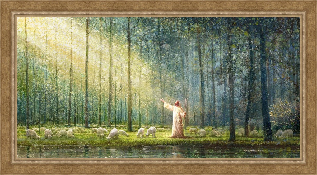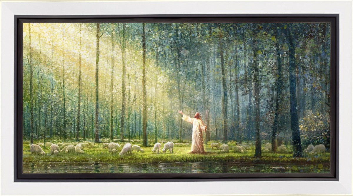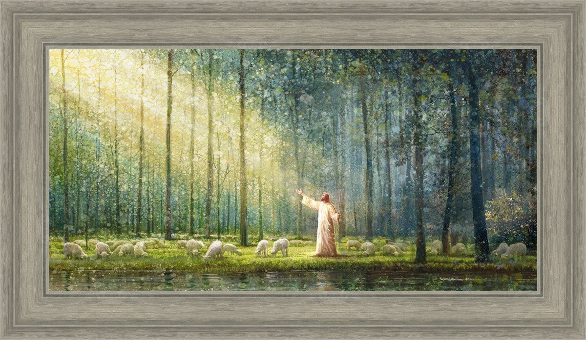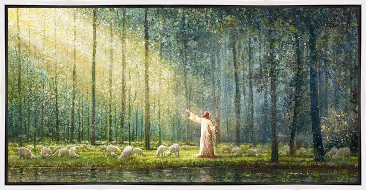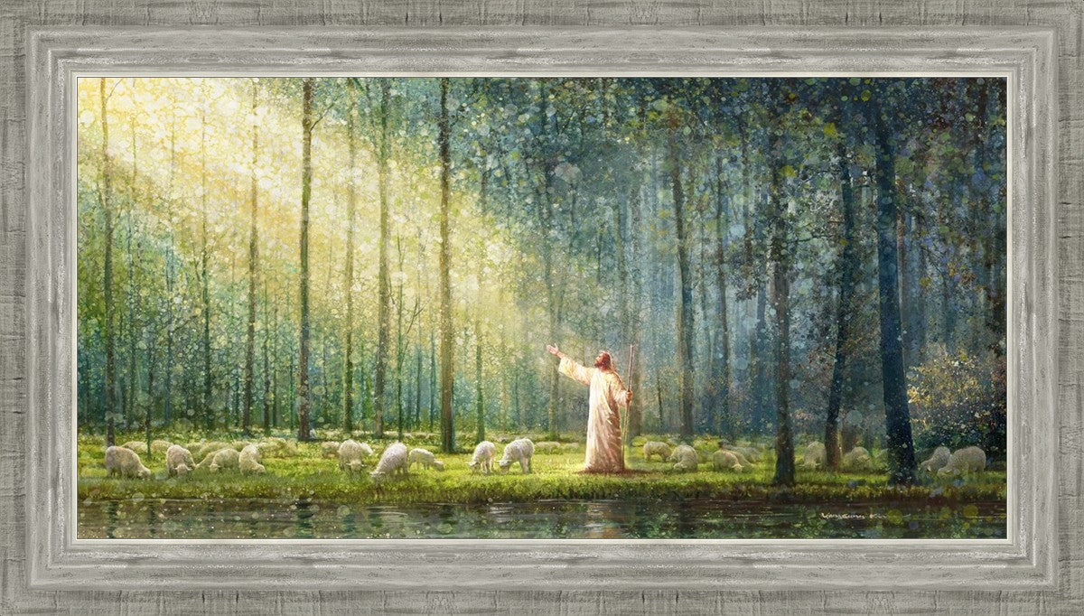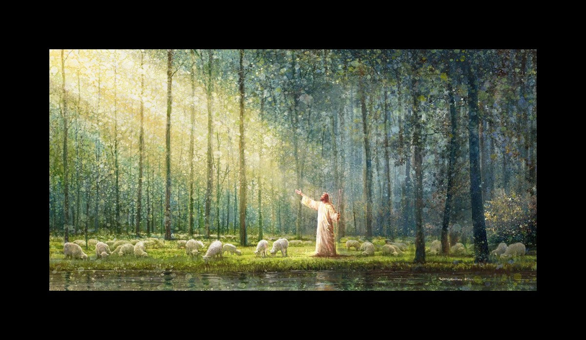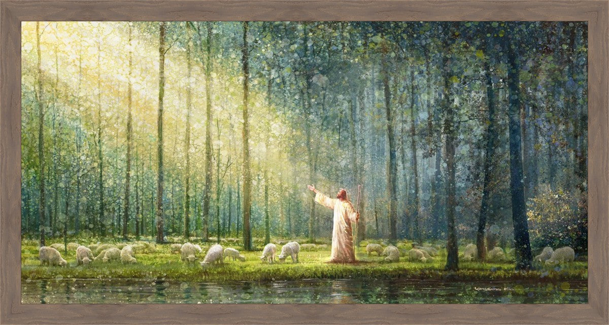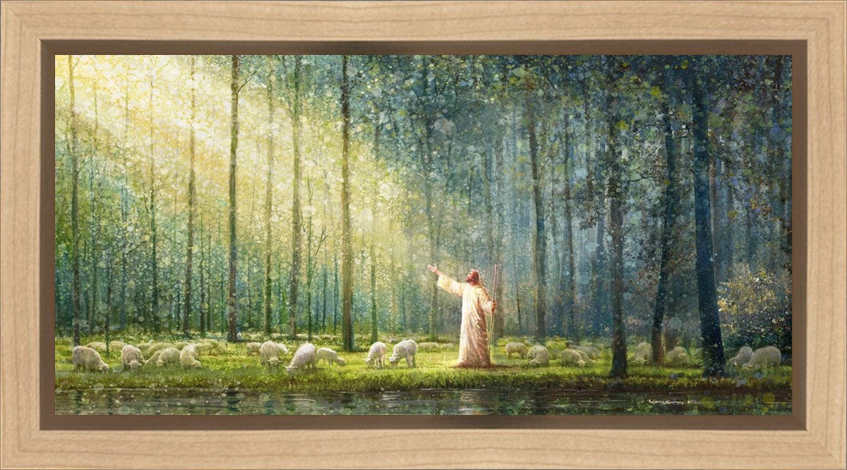 What is the promise of Zion? In Yongsung Kim's painting Rest, inspired by Jeremiah 31:12, the imagery of a lush and vibrant forest reflects a soul nourished by divine grace. Just as the trees,the grasses, and the flock are sustained by life-giving water, so too the soul is replenished by the spiritual nourishment that comes from a deep connection with God. The serene scene invites reflection on the promise of restoration and renewal, where the soul, like the garden, finds its rest in the presence of the divine.