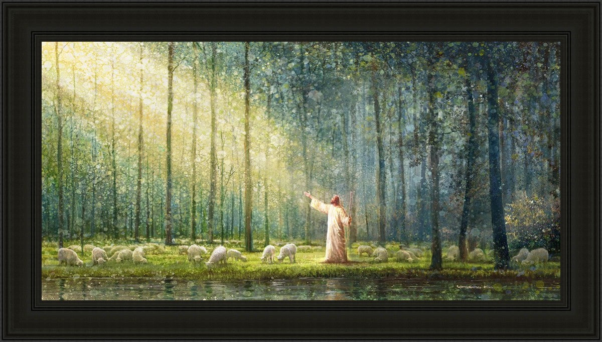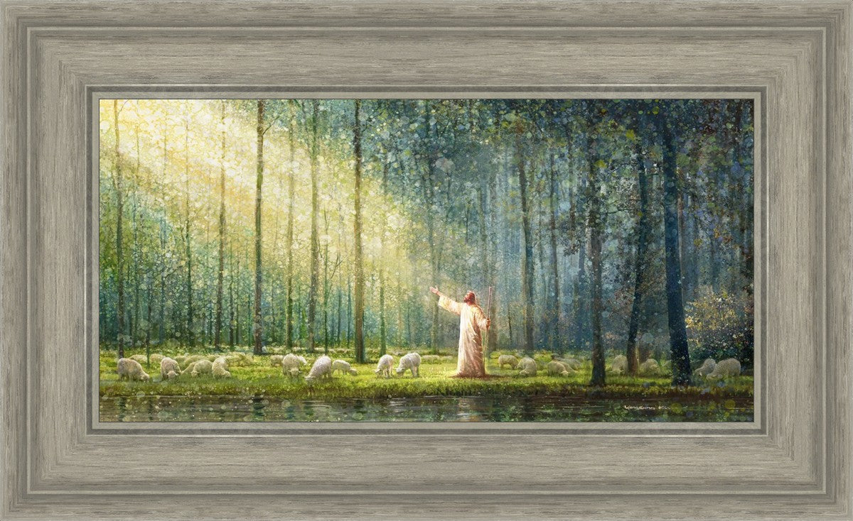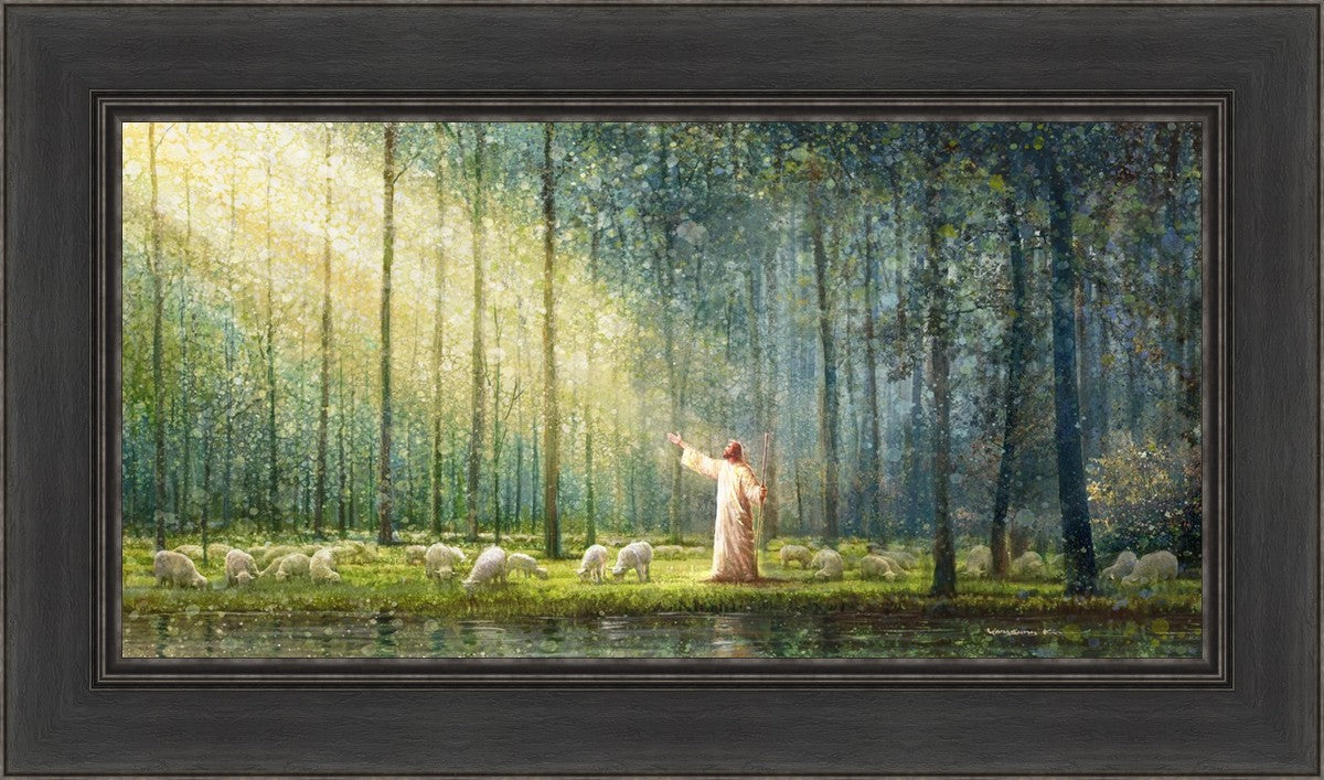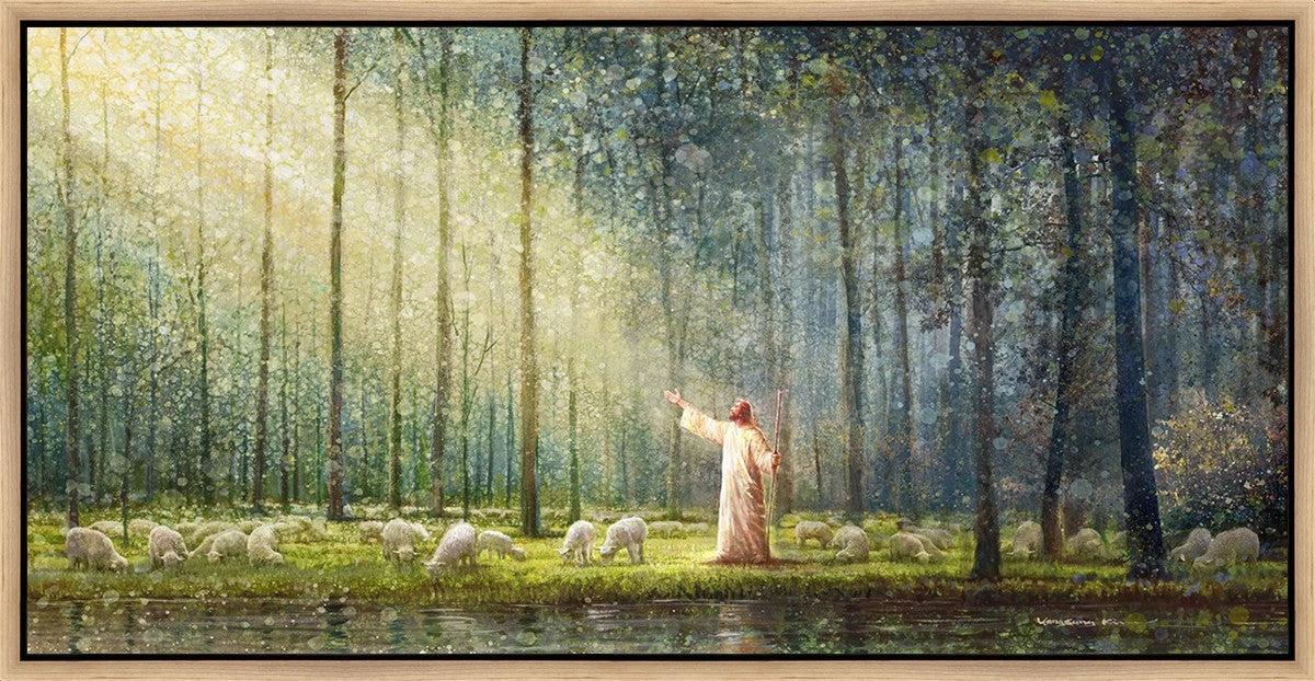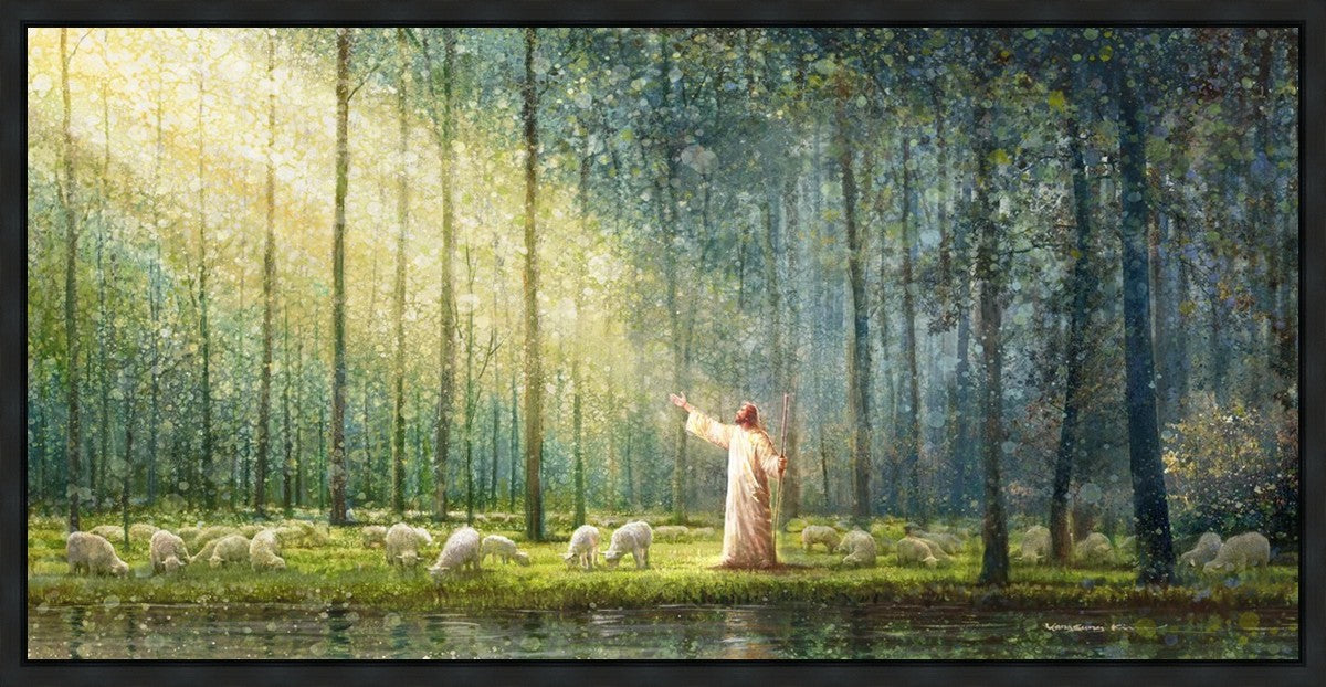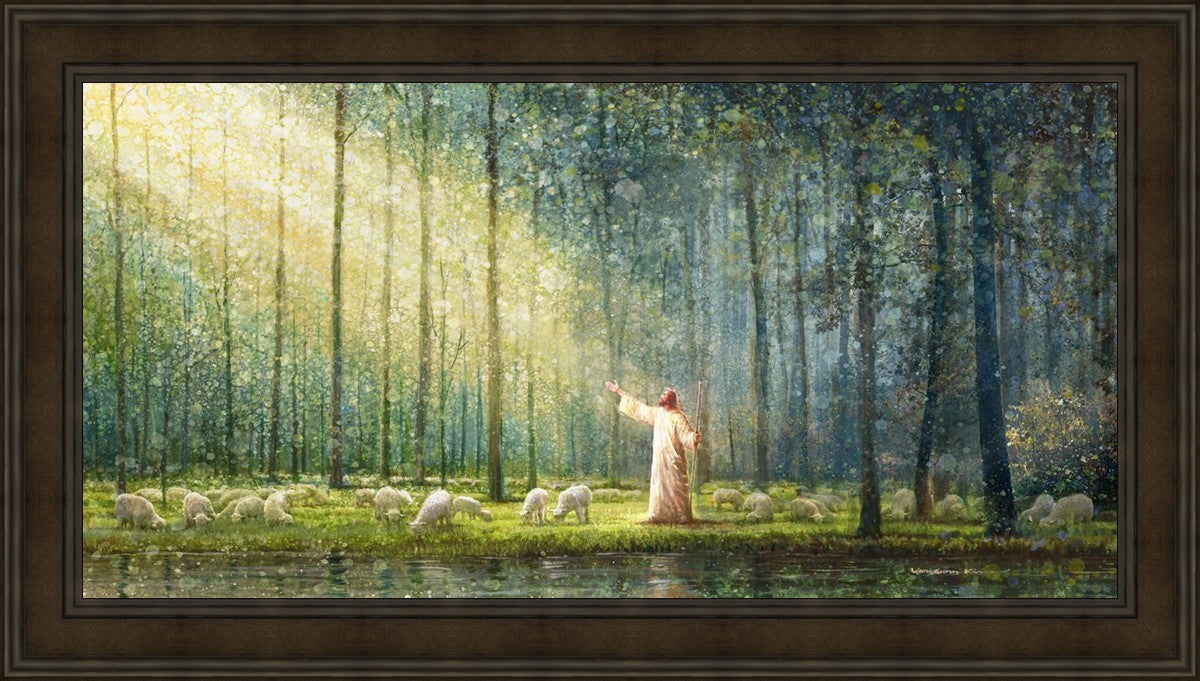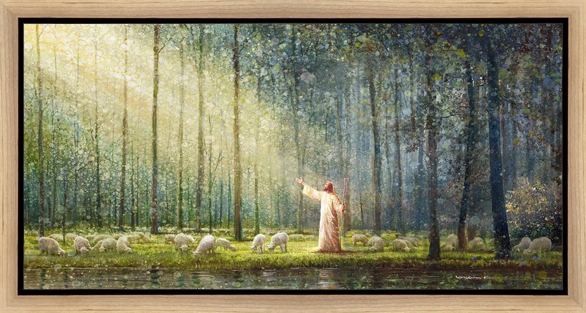 What is the promise of Zion? In Yongsung Kim's painting Rest, inspired by Jeremiah 31:12, the imagery of a lush and vibrant forest reflects a soul nourished by divine grace. Just as the trees,the grasses, and the flock are sustained by life-giving water, so too the soul is replenished by the spiritual nourishment that comes from a deep connection with God. The serene scene invites reflection on the promise of restoration and renewal, where the soul, like the garden, finds its rest in the presence of the divine.