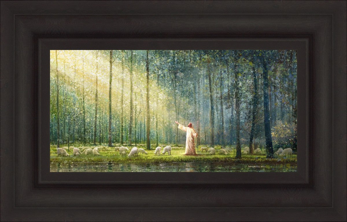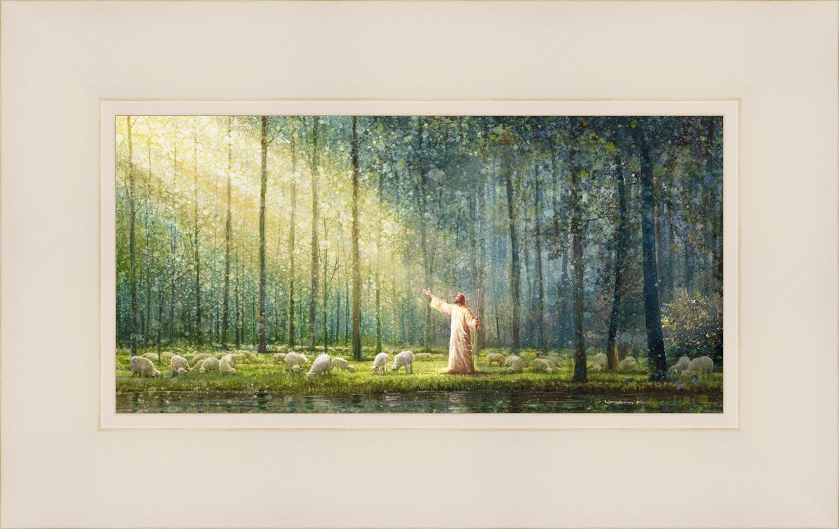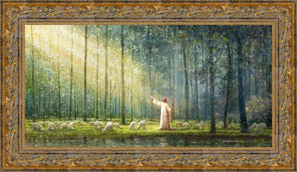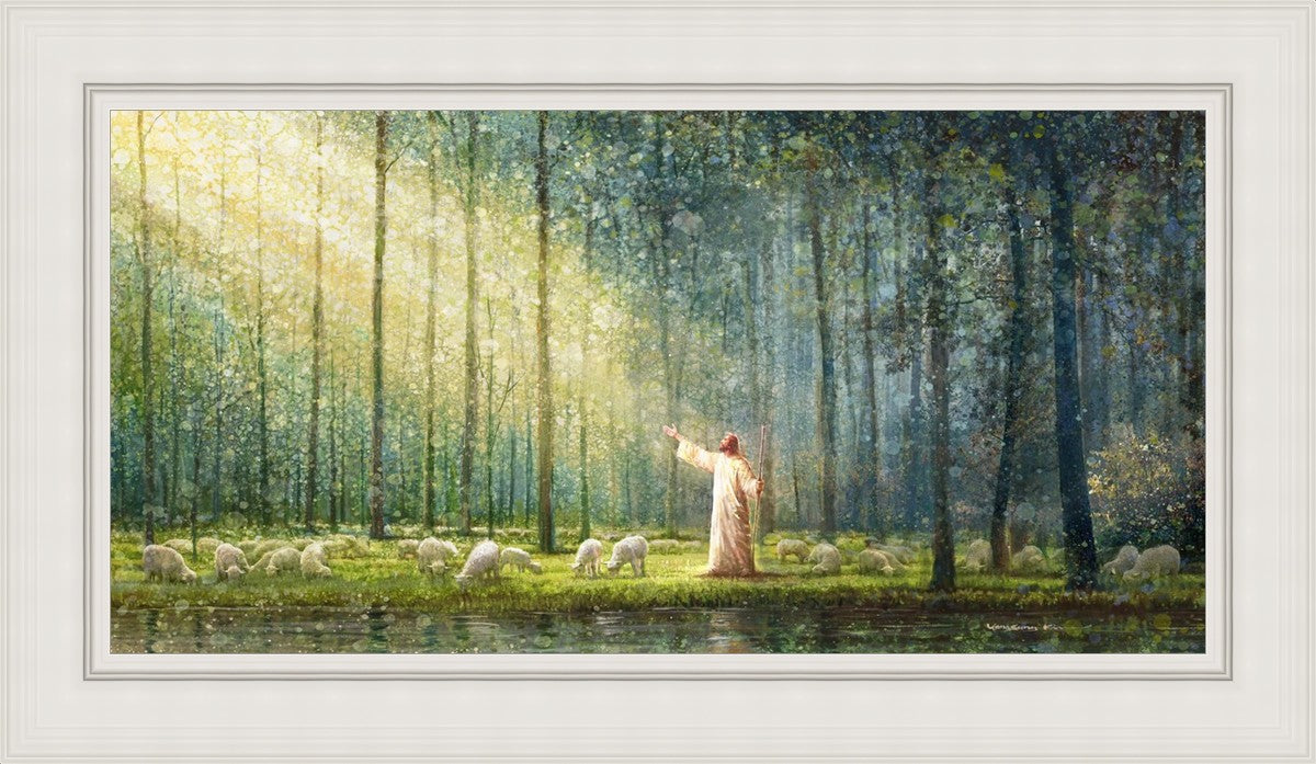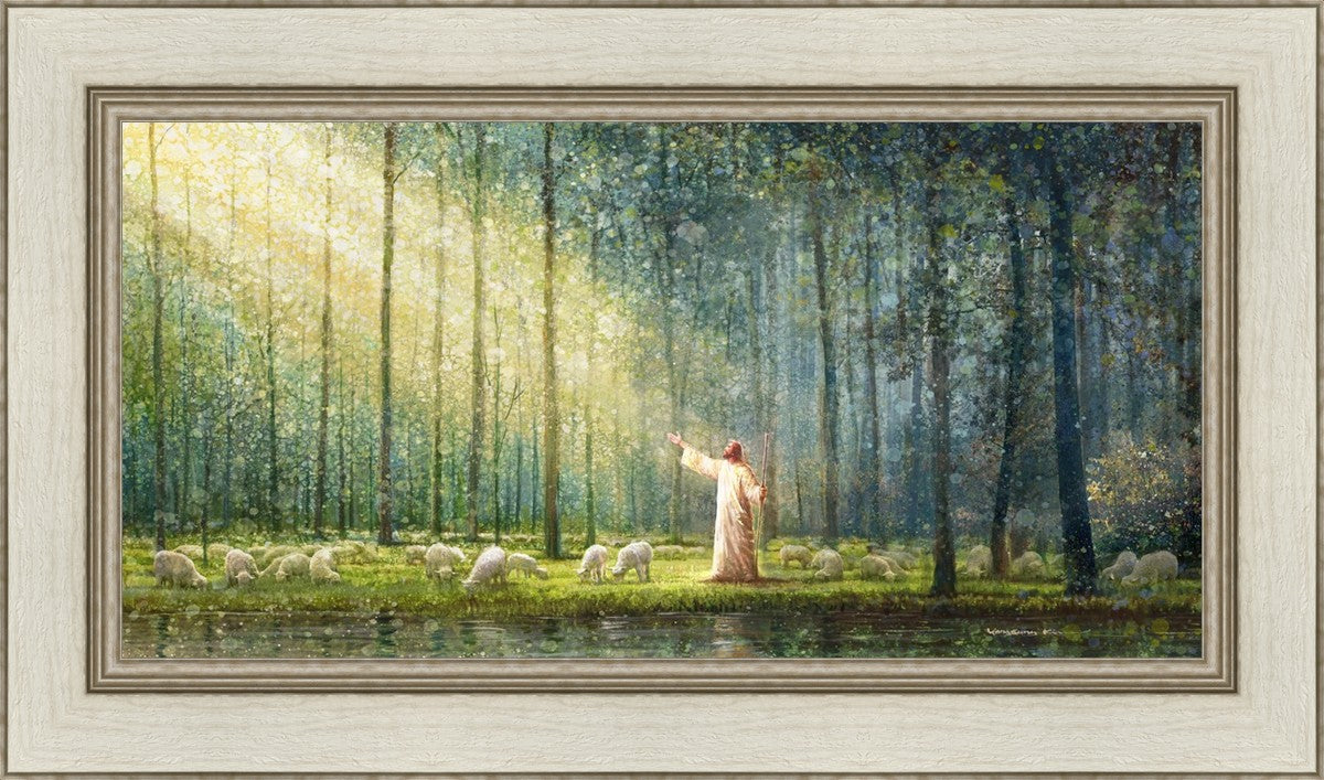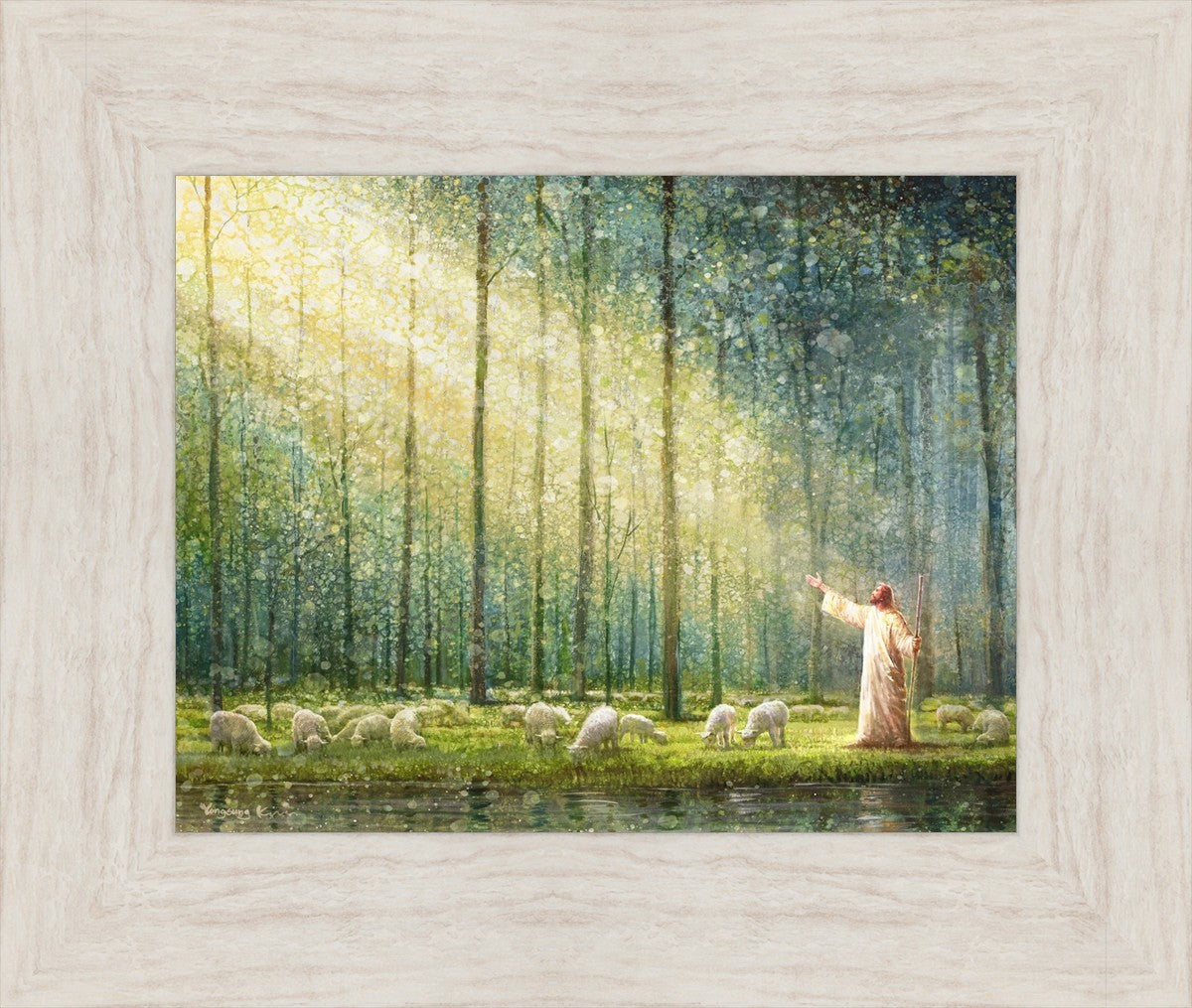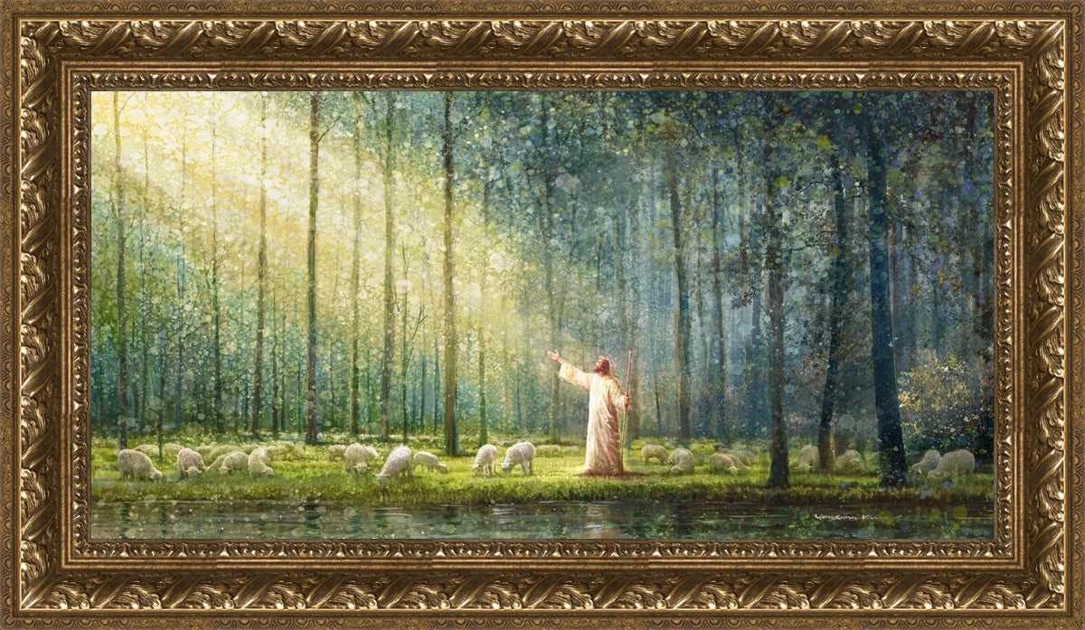 What is the promise of Zion? In Yongsung Kim's painting Rest, inspired by Jeremiah 31:12, the imagery of a lush and vibrant forest reflects a soul nourished by divine grace. Just as the trees,the grasses, and the flock are sustained by life-giving water, so too the soul is replenished by the spiritual nourishment that comes from a deep connection with God. The serene scene invites reflection on the promise of restoration and renewal, where the soul, like the garden, finds its rest in the presence of the divine.