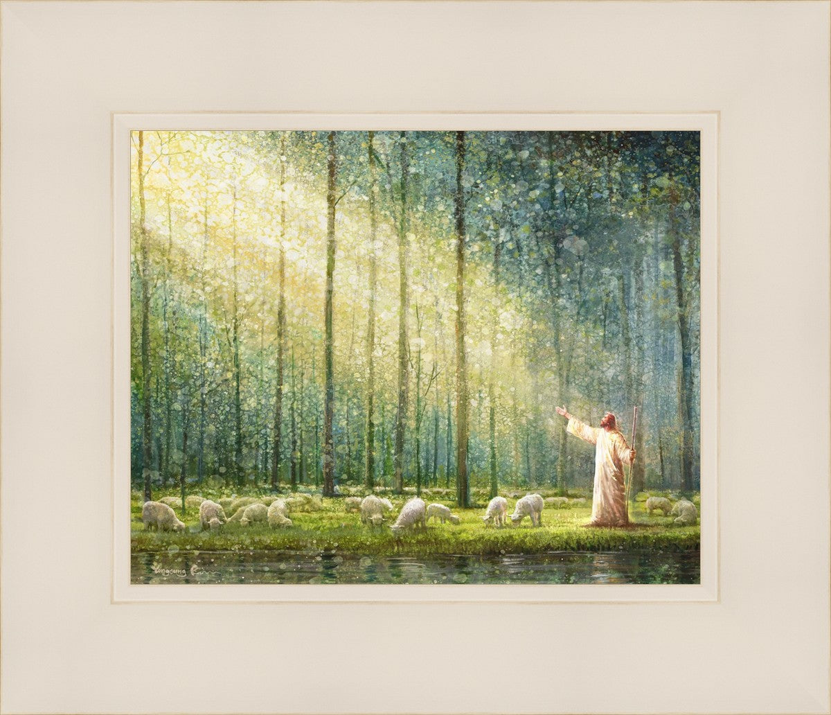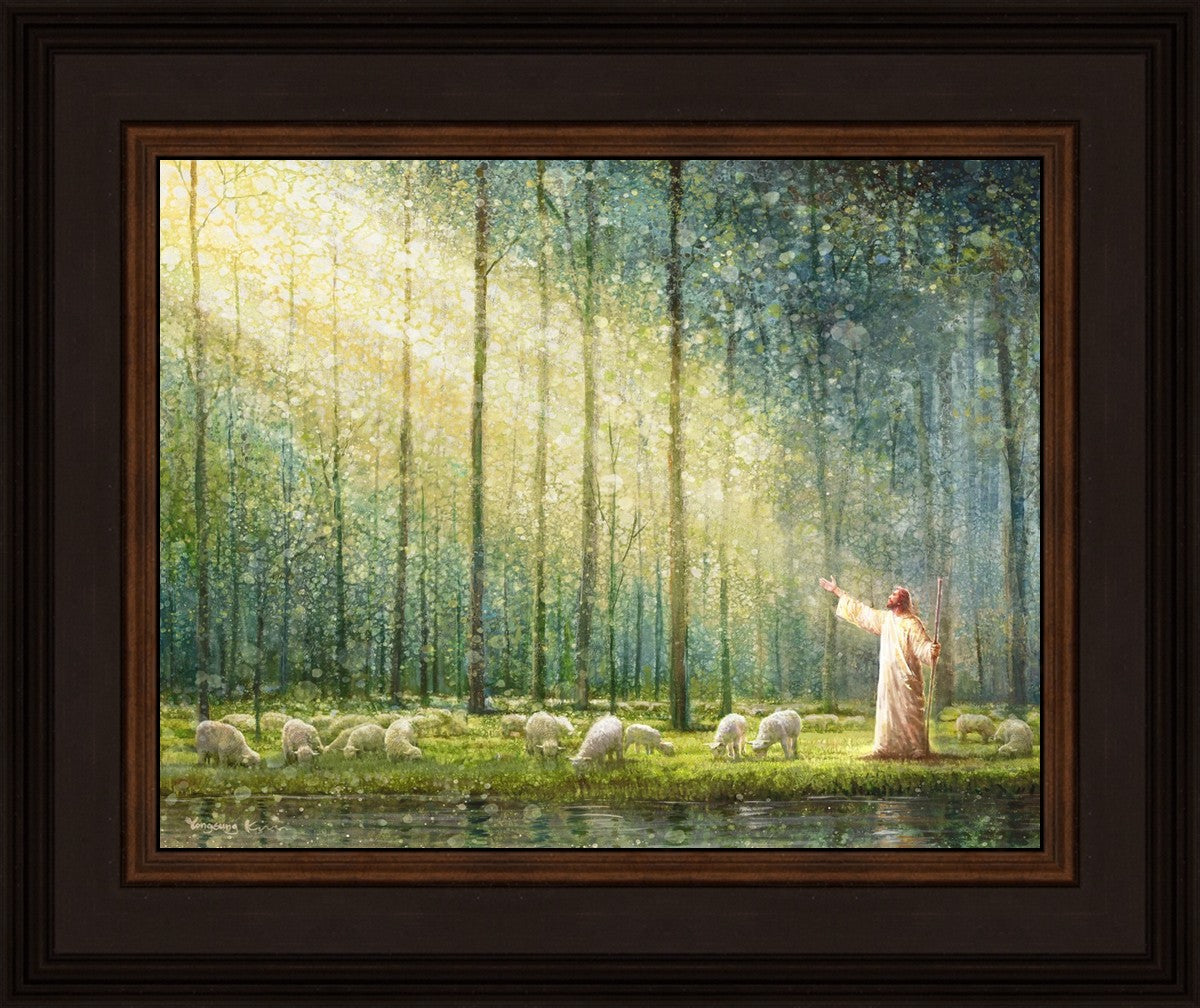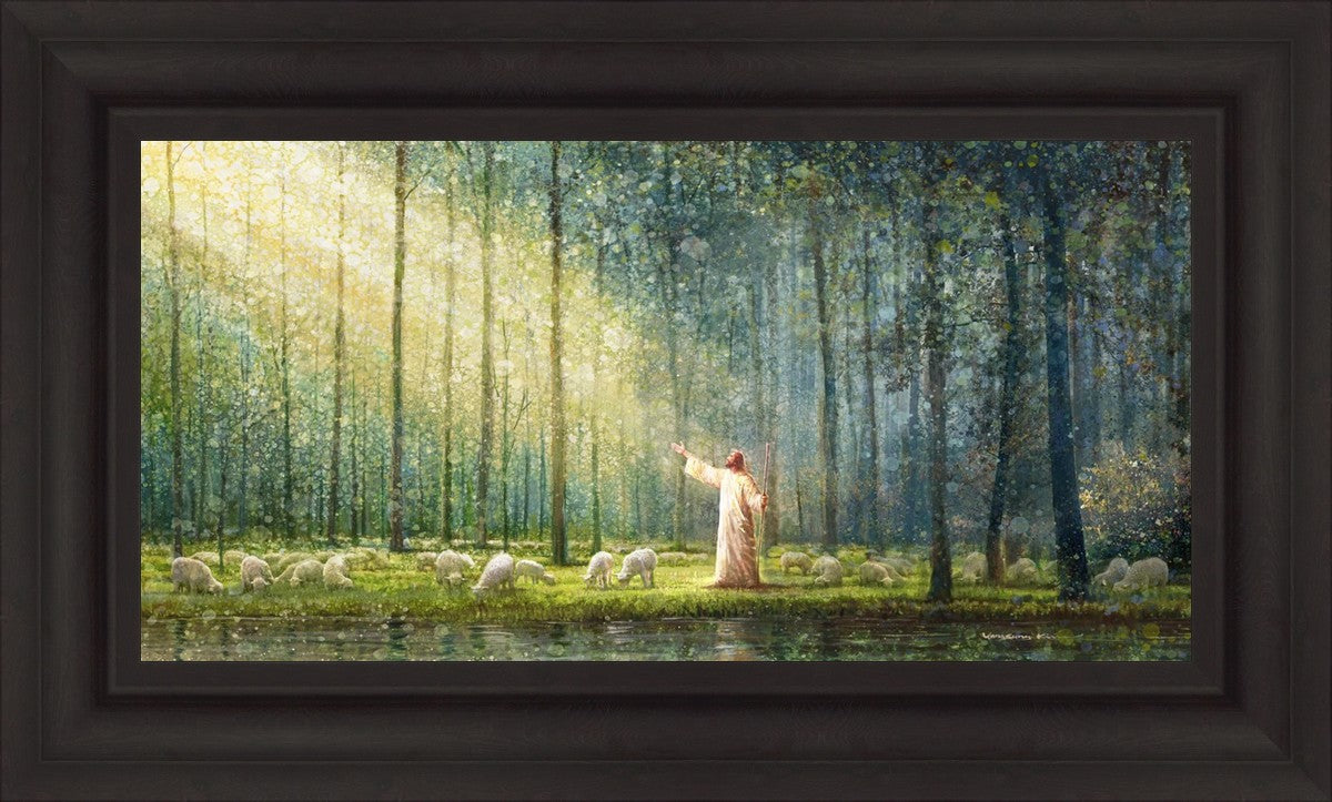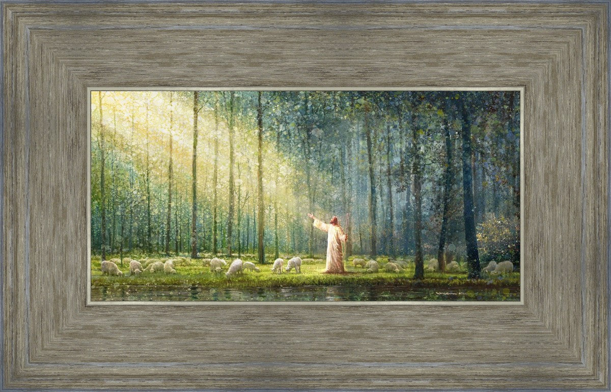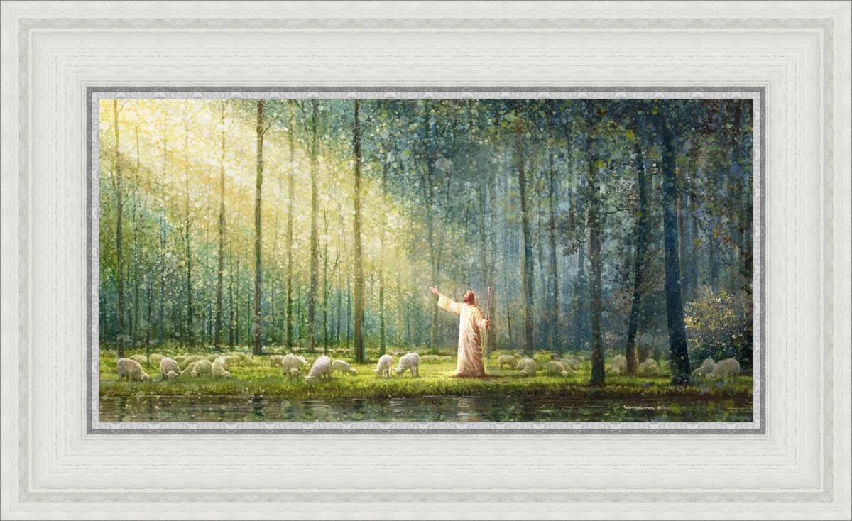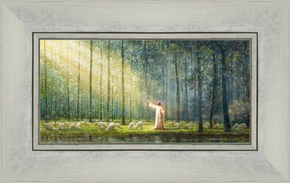 What is the promise of Zion? In Yongsung Kim's painting Rest, inspired by Jeremiah 31:12, the imagery of a lush and vibrant forest reflects a soul nourished by divine grace. Just as the trees,the grasses, and the flock are sustained by life-giving water, so too the soul is replenished by the spiritual nourishment that comes from a deep connection with God. The serene scene invites reflection on the promise of restoration and renewal, where the soul, like the garden, finds its rest in the presence of the divine.