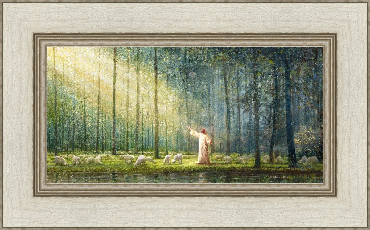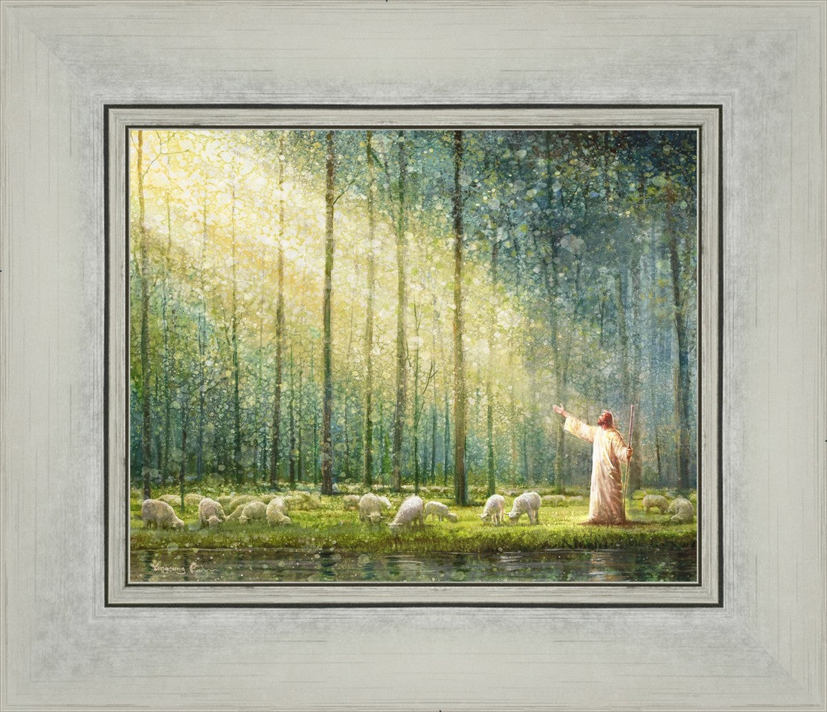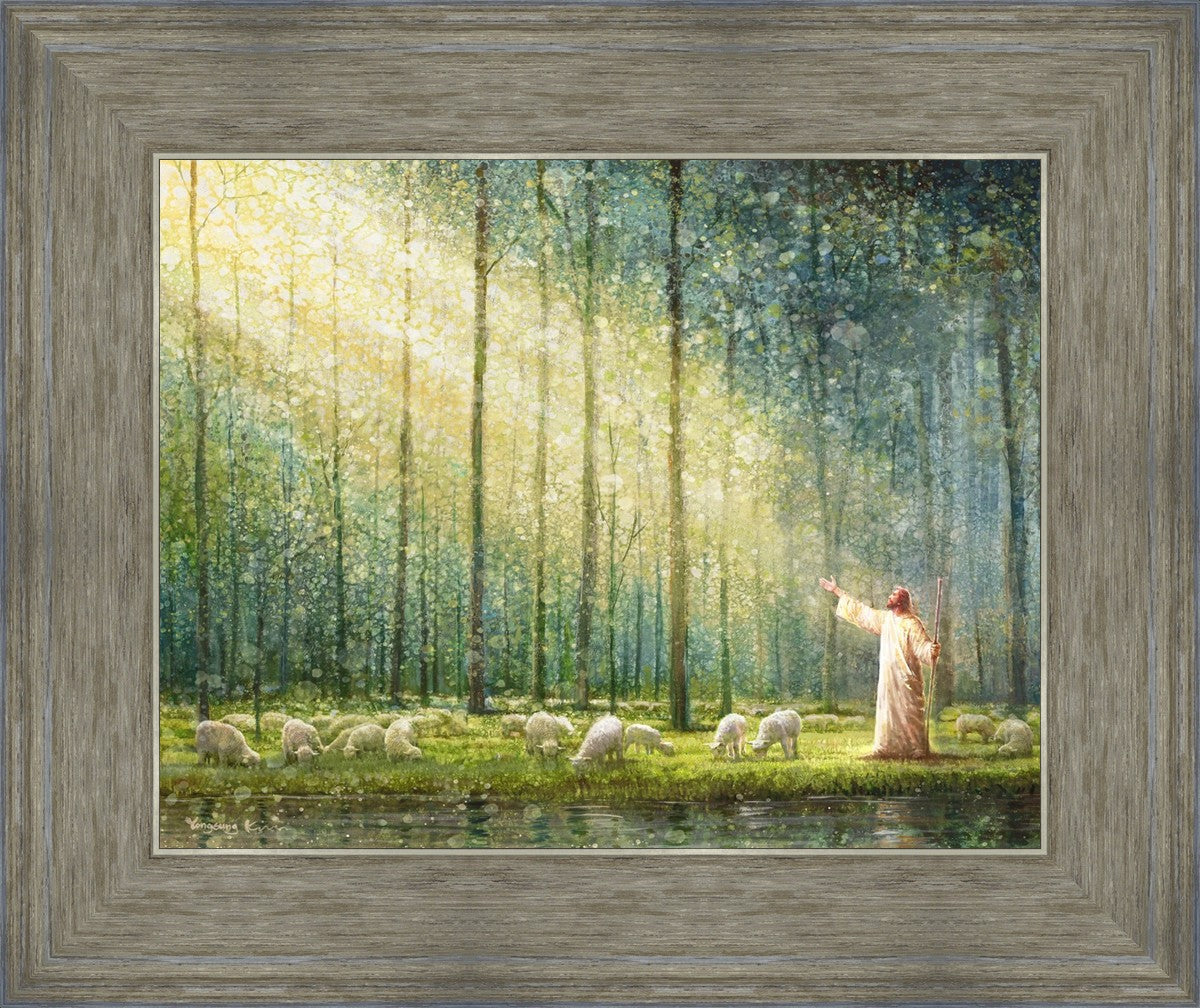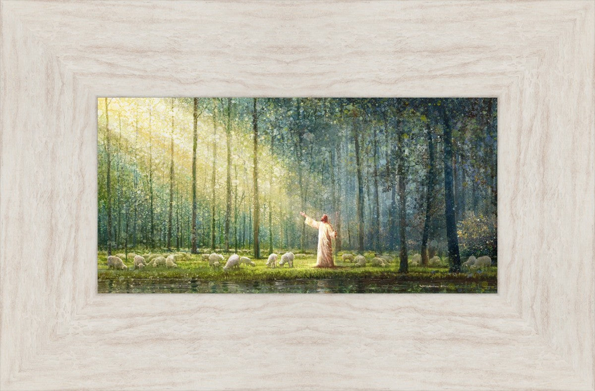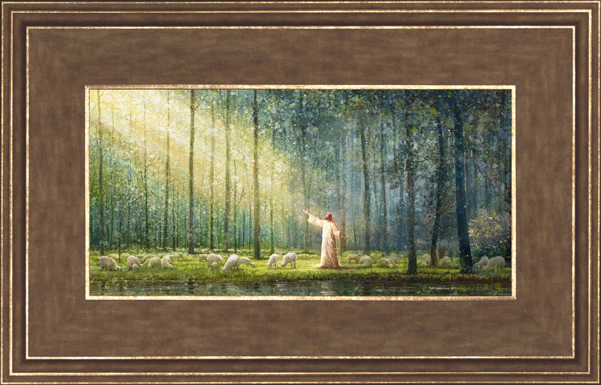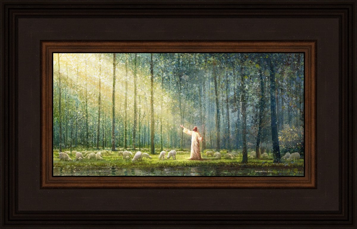 What is the promise of Zion? In Yongsung Kim's painting Rest, inspired by Jeremiah 31:12, the imagery of a lush and vibrant forest reflects a soul nourished by divine grace. Just as the trees,the grasses, and the flock are sustained by life-giving water, so too the soul is replenished by the spiritual nourishment that comes from a deep connection with God. The serene scene invites reflection on the promise of restoration and renewal, where the soul, like the garden, finds its rest in the presence of the divine.