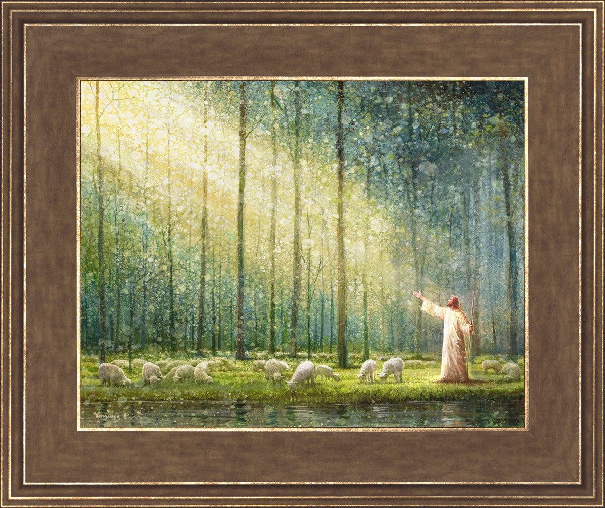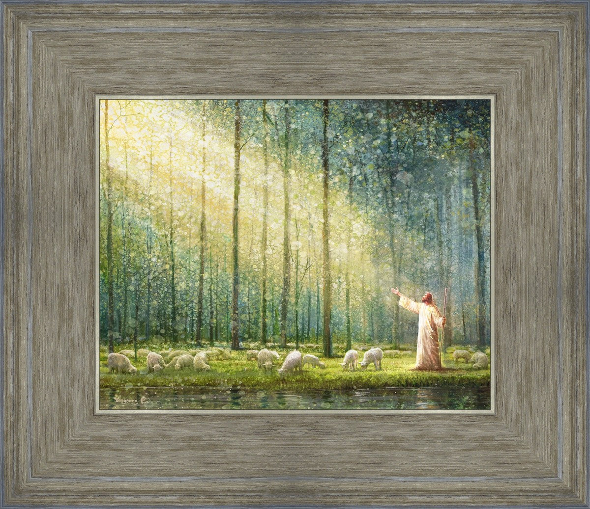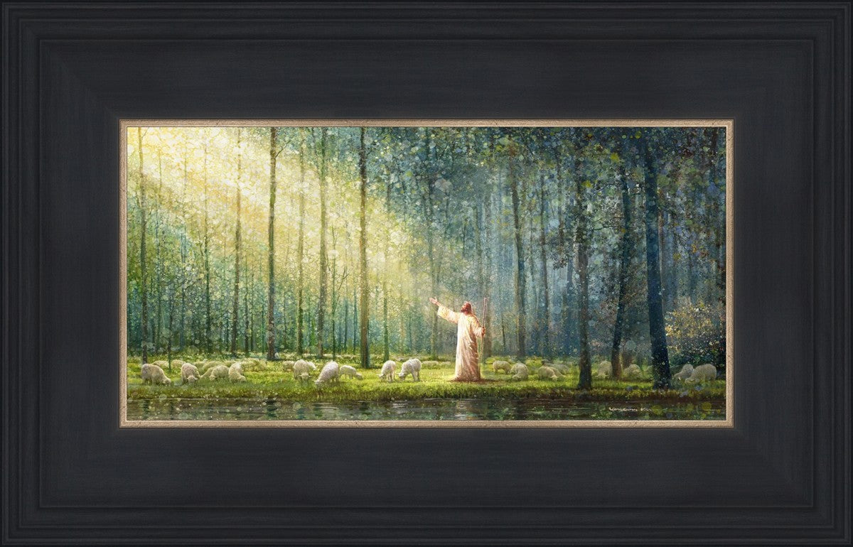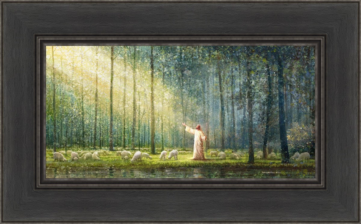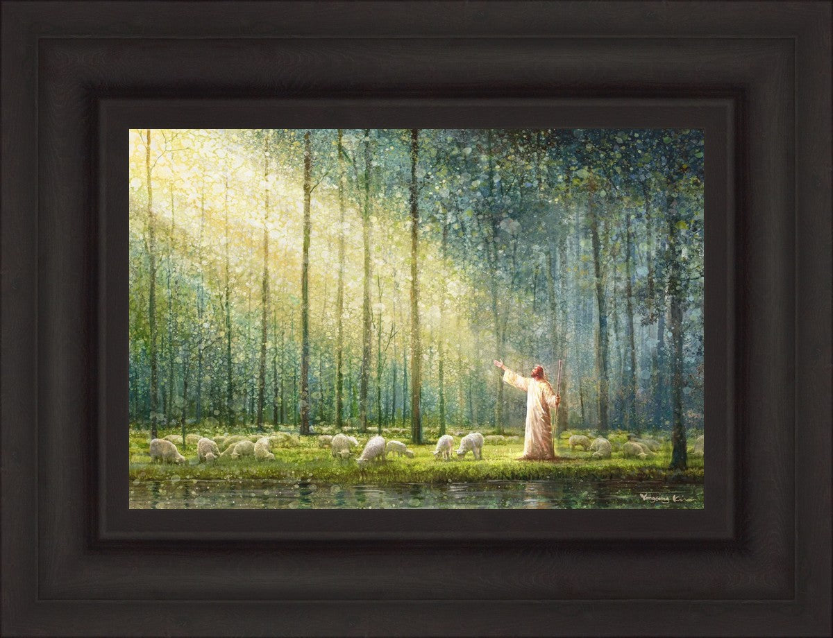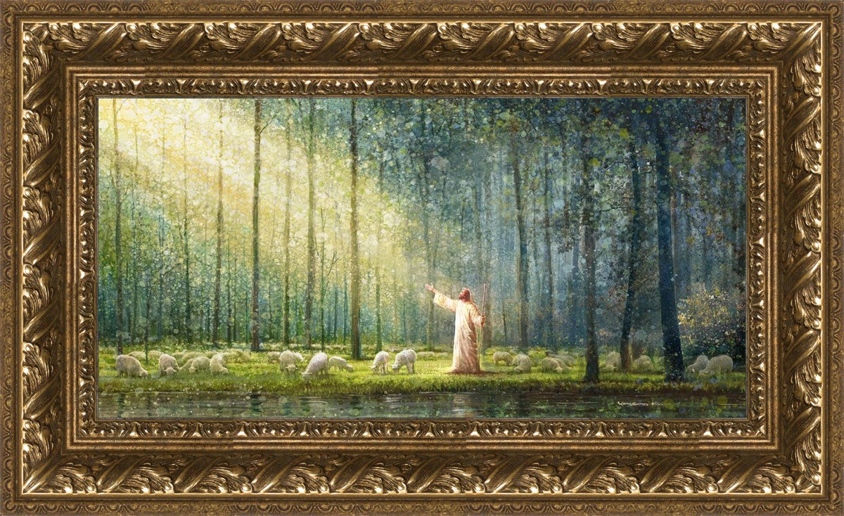 What is the promise of Zion? In Yongsung Kim's painting Rest, inspired by Jeremiah 31:12, the imagery of a lush and vibrant forest reflects a soul nourished by divine grace. Just as the trees,the grasses, and the flock are sustained by life-giving water, so too the soul is replenished by the spiritual nourishment that comes from a deep connection with God. The serene scene invites reflection on the promise of restoration and renewal, where the soul, like the garden, finds its rest in the presence of the divine.