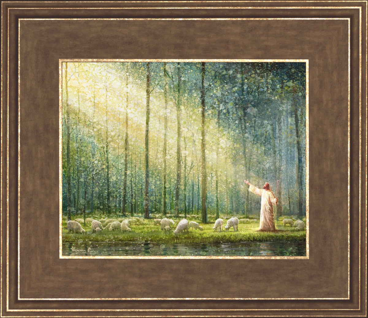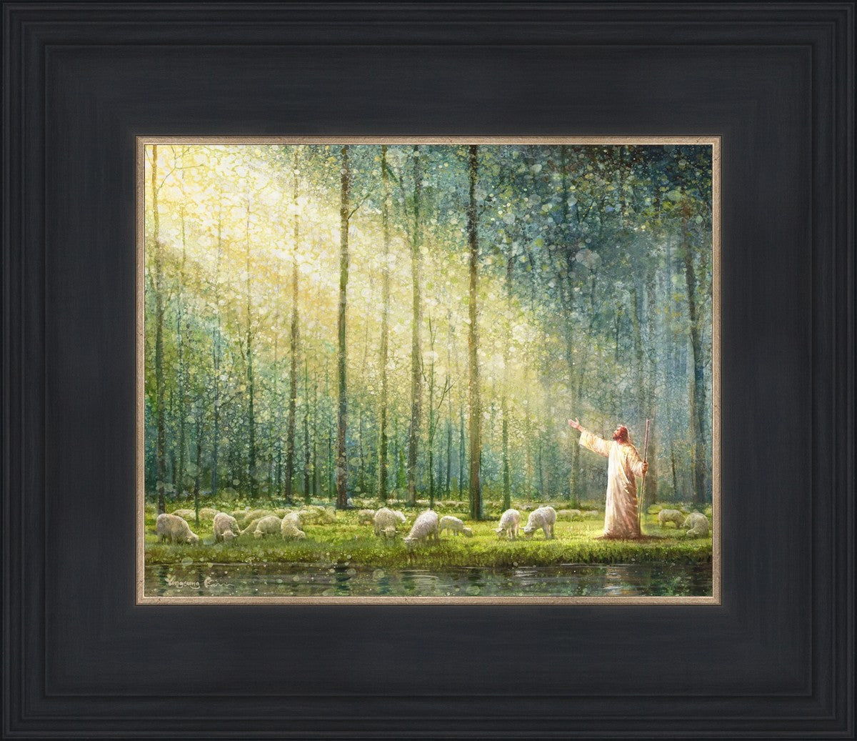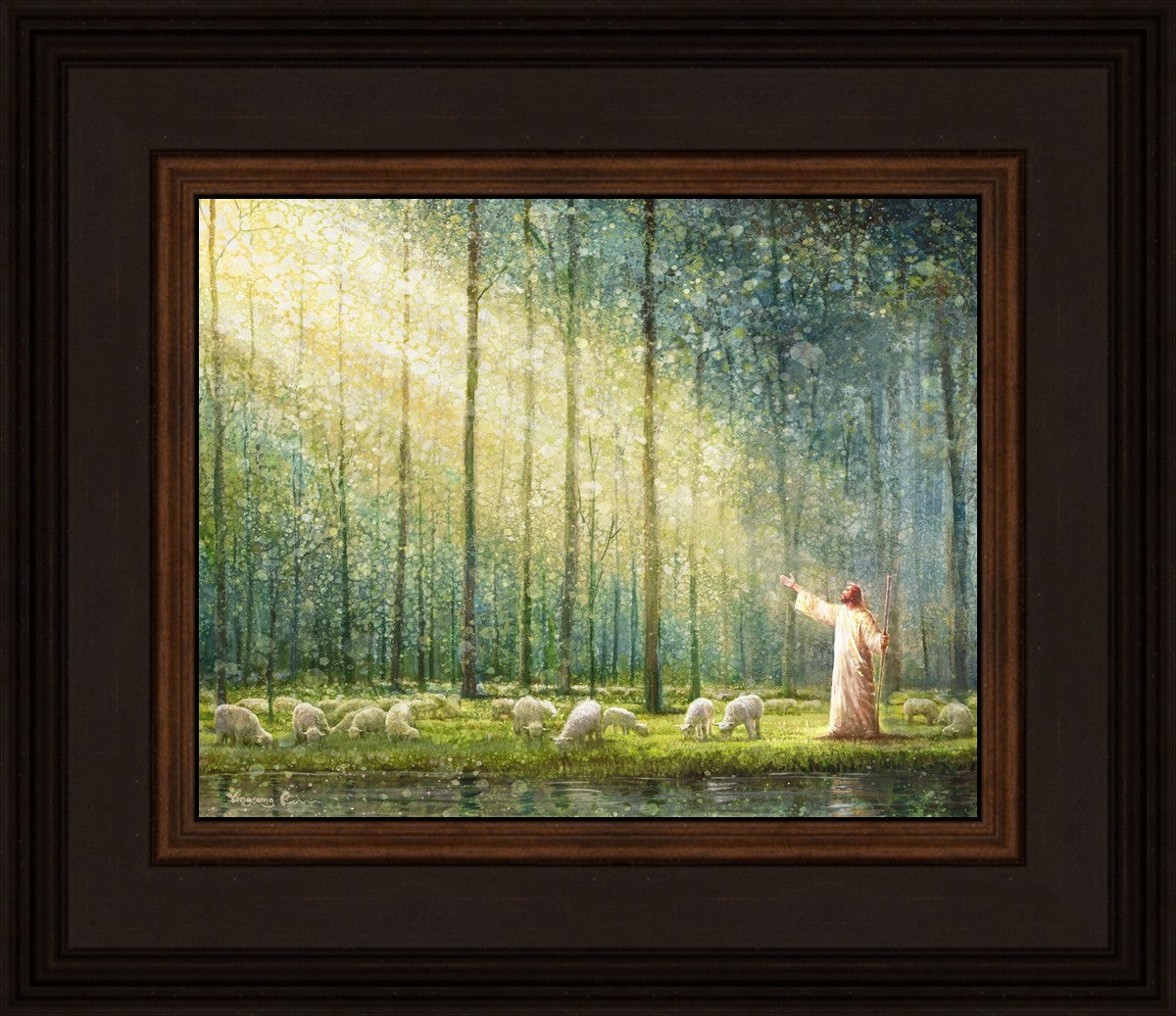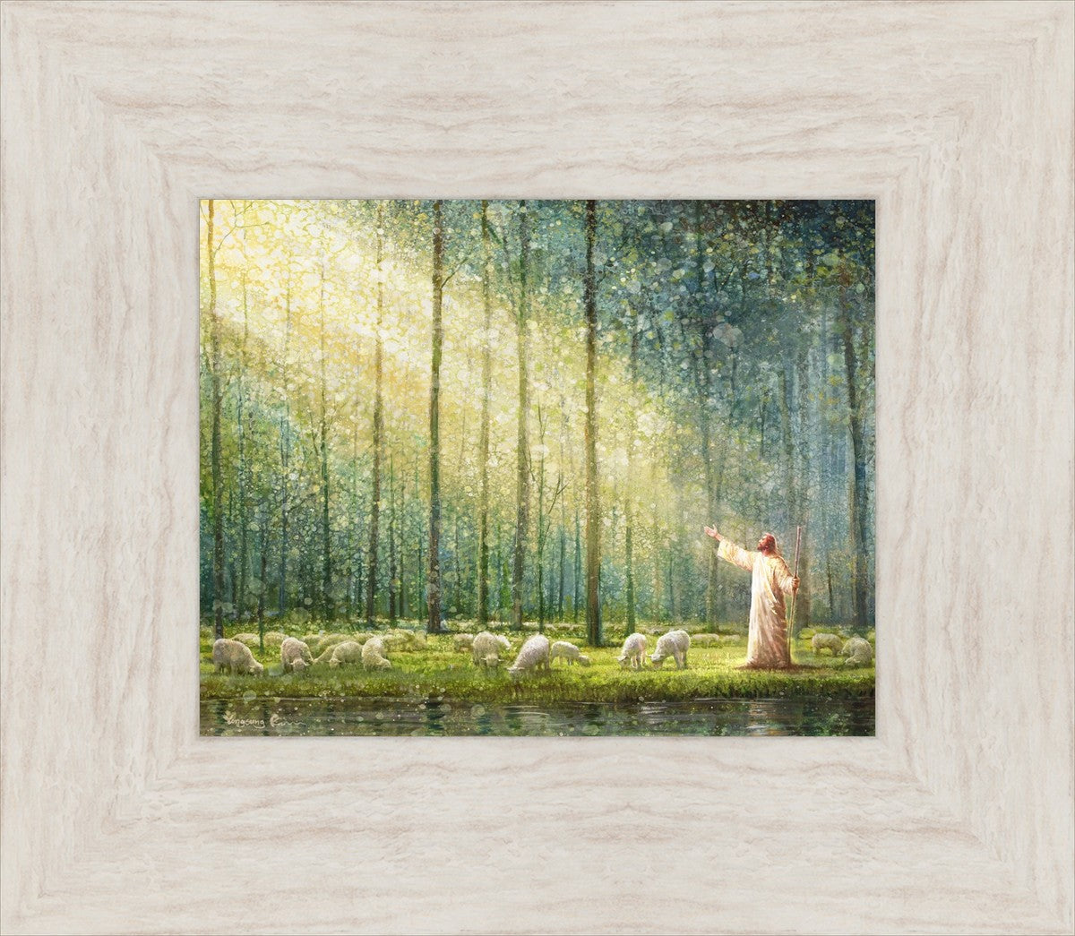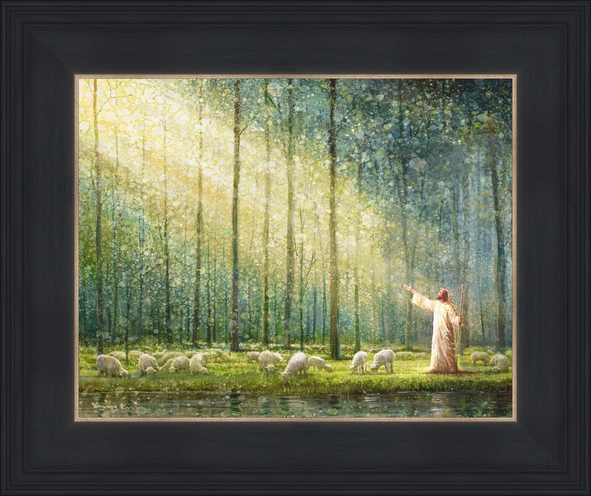 What is the promise of Zion? In Yongsung Kim's painting Rest, inspired by Jeremiah 31:12, the imagery of a lush and vibrant forest reflects a soul nourished by divine grace. Just as the trees,the grasses, and the flock are sustained by life-giving water, so too the soul is replenished by the spiritual nourishment that comes from a deep connection with God. The serene scene invites reflection on the promise of restoration and renewal, where the soul, like the garden, finds its rest in the presence of the divine.