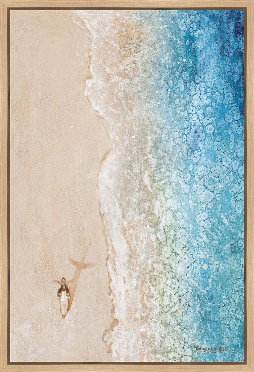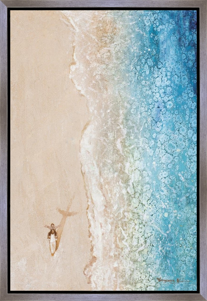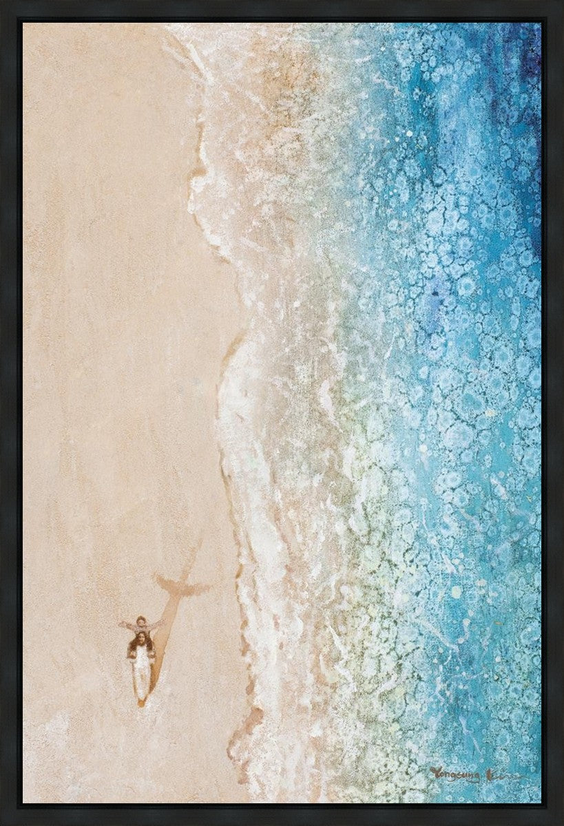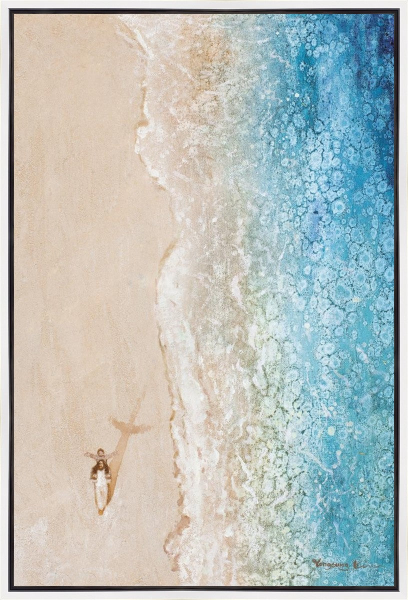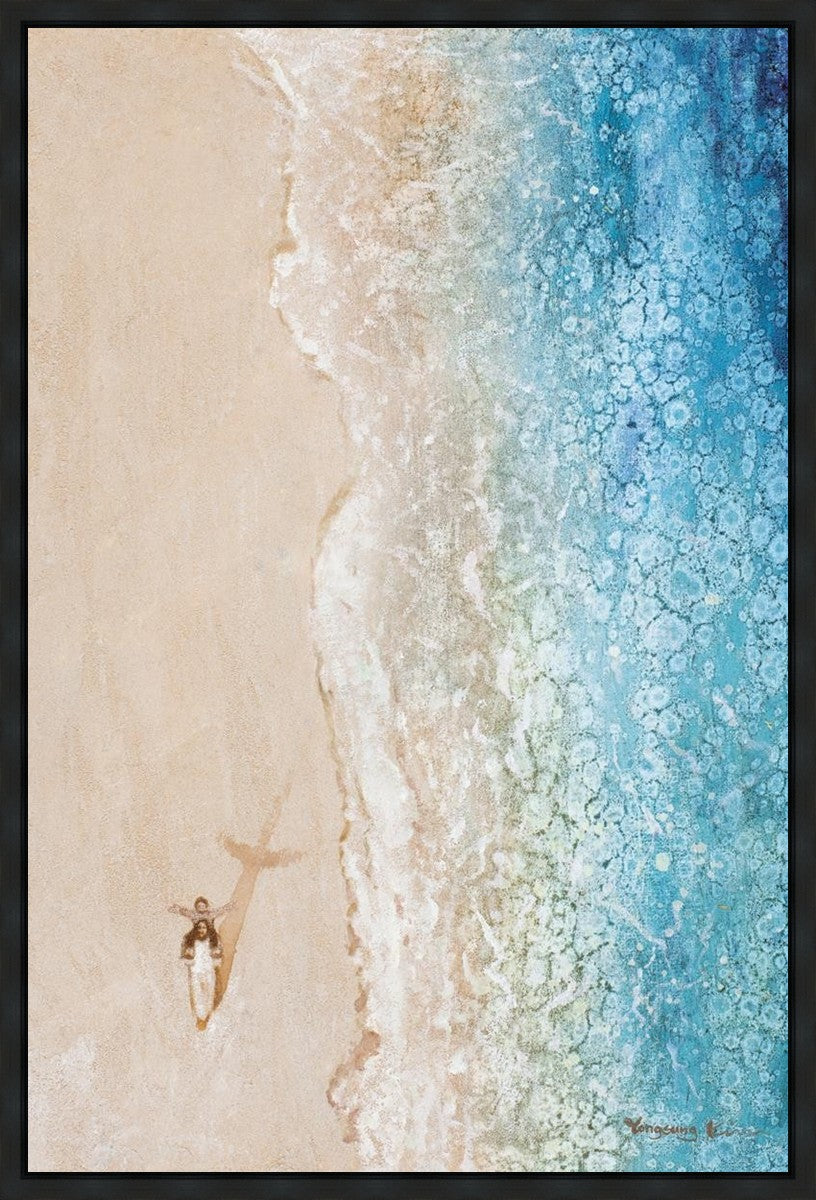 We own a different painting of Jesus walking on water that's stunning and then I bought this painting for my Best Friend after losing her Son to suicide. She said it makes her feel like her son is on Jesus shoulders in this painting and she absolutely loves it. This artist is TALENTED!