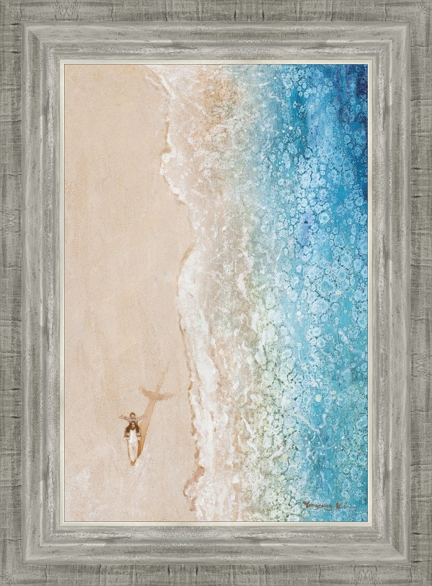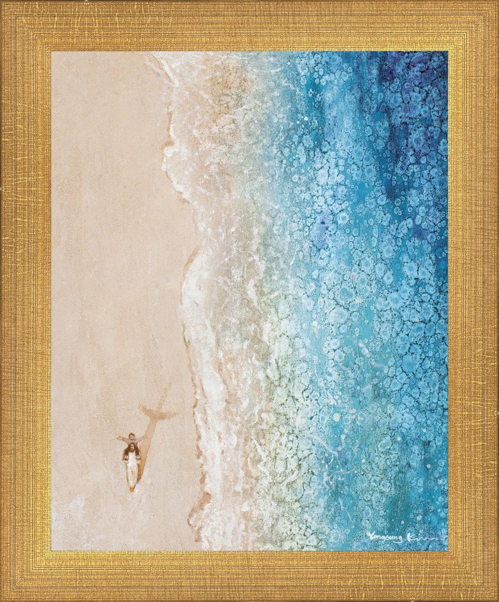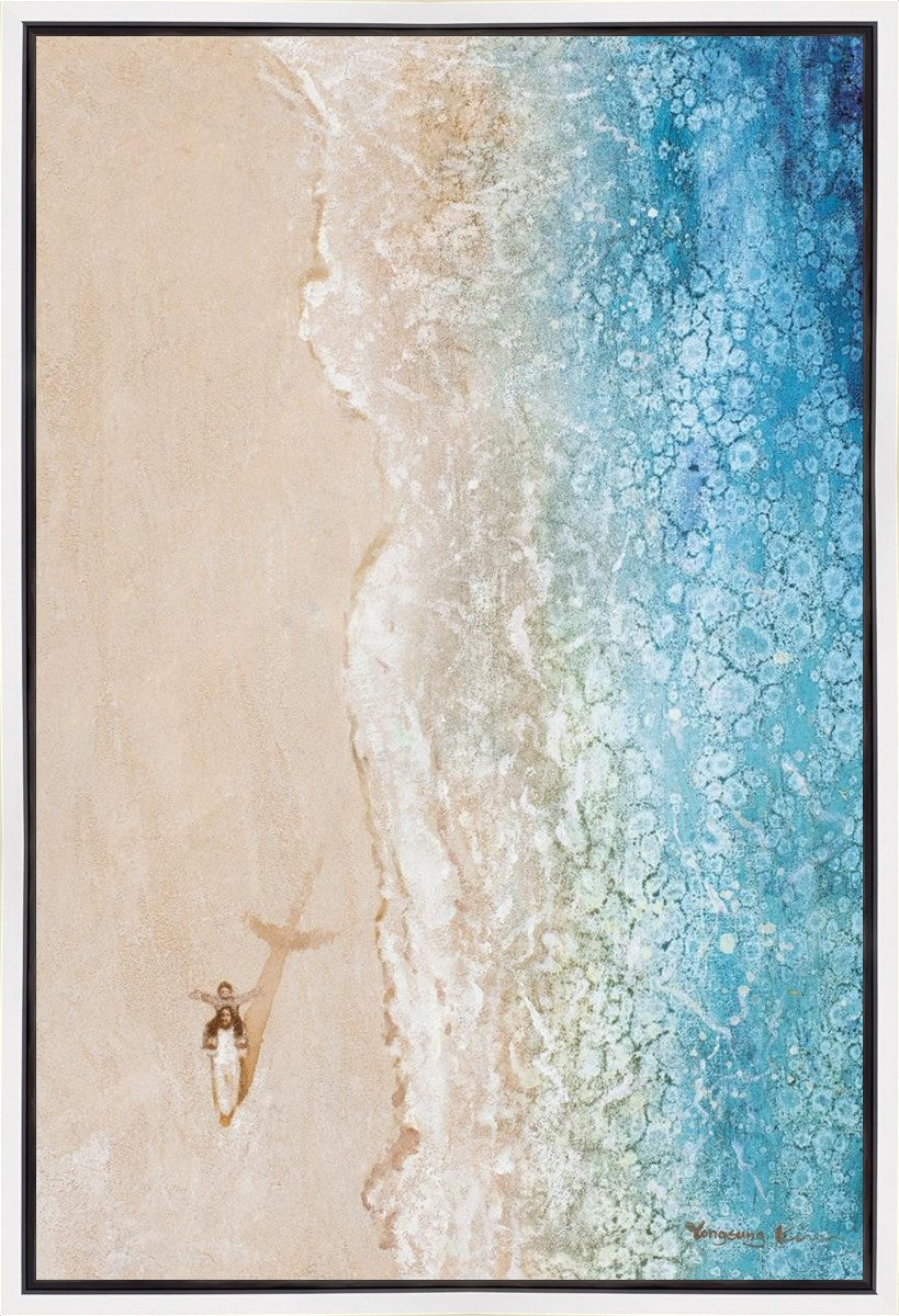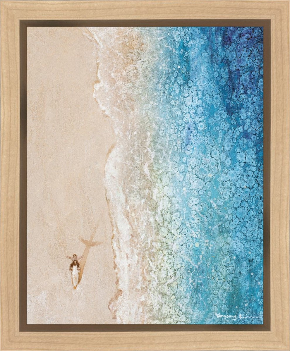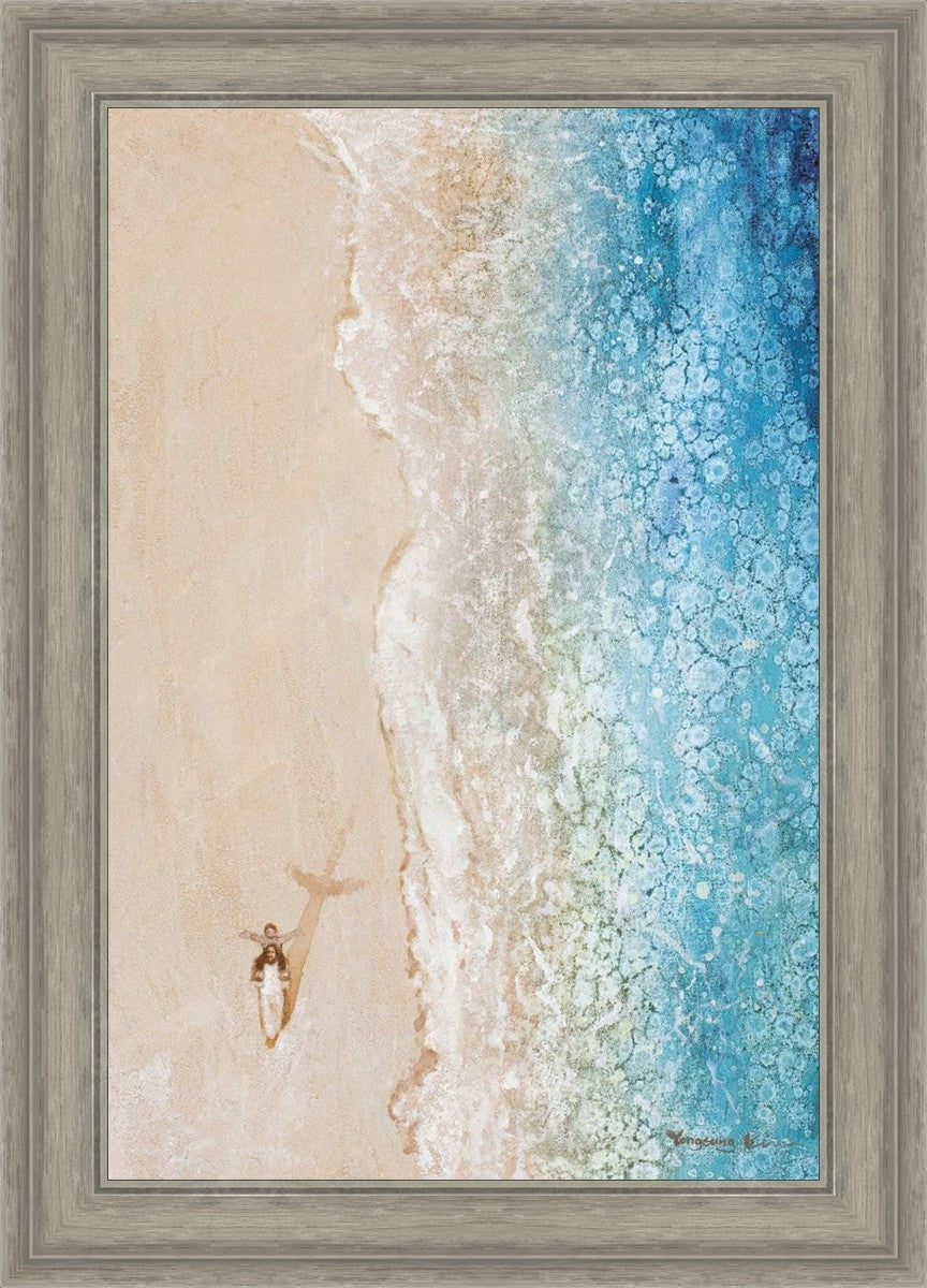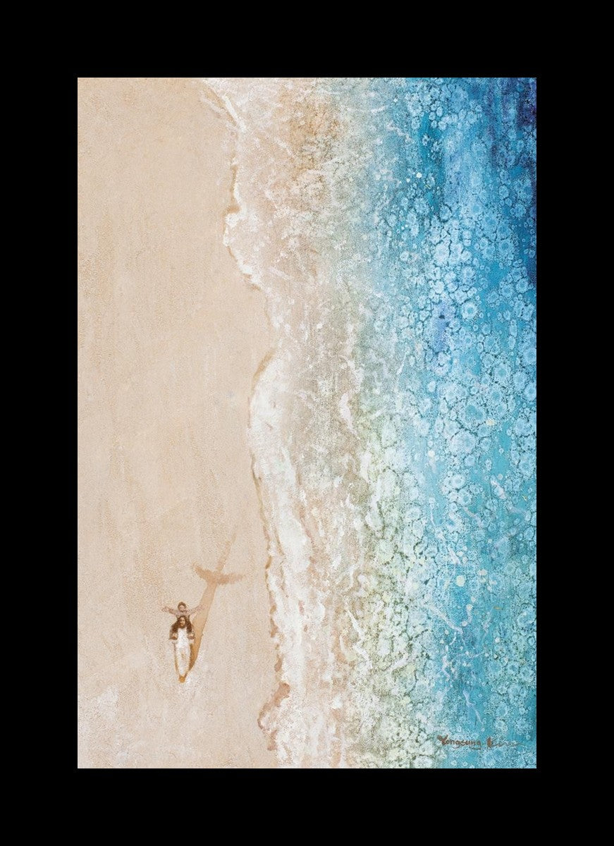 We own a different painting of Jesus walking on water that's stunning and then I bought this painting for my Best Friend after losing her Son to suicide. She said it makes her feel like her son is on Jesus shoulders in this painting and she absolutely loves it. This artist is TALENTED!