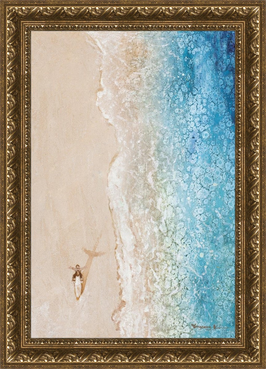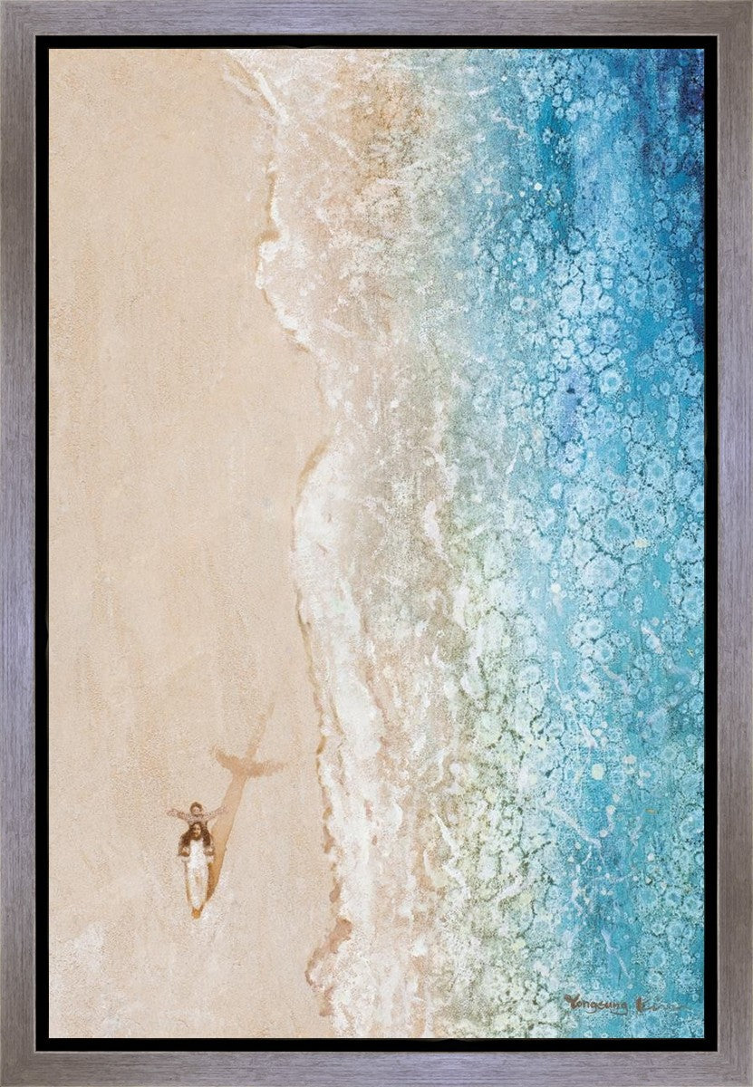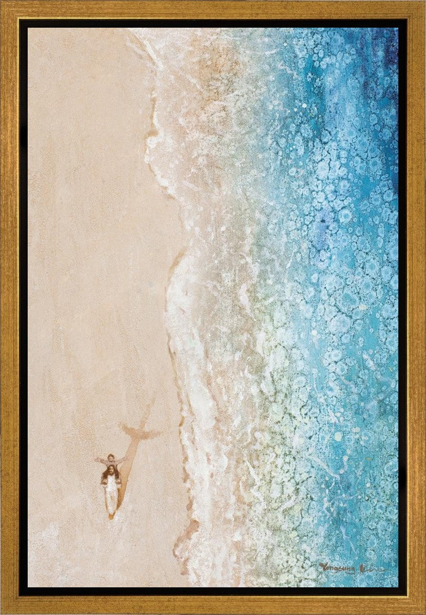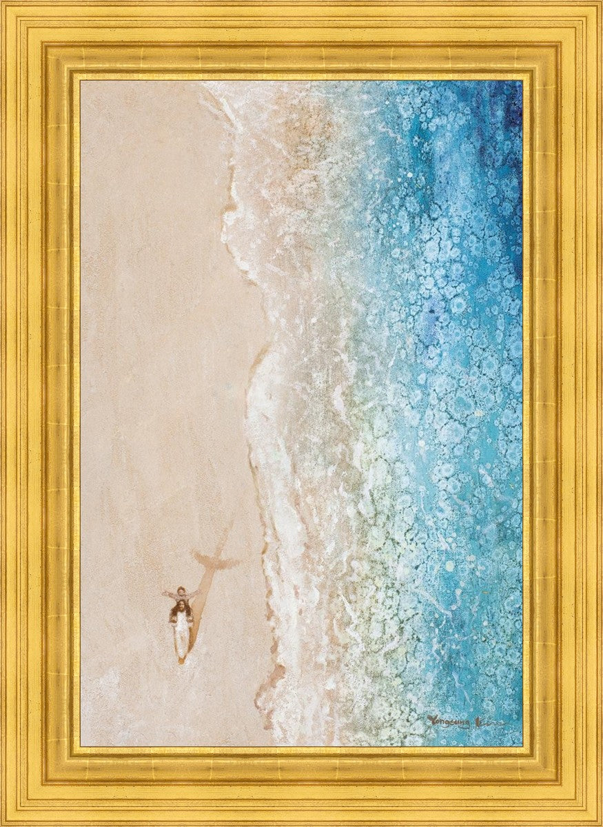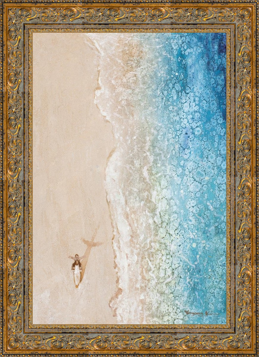 We own a different painting of Jesus walking on water that's stunning and then I bought this painting for my Best Friend after losing her Son to suicide. She said it makes her feel like her son is on Jesus shoulders in this painting and she absolutely loves it. This artist is TALENTED!