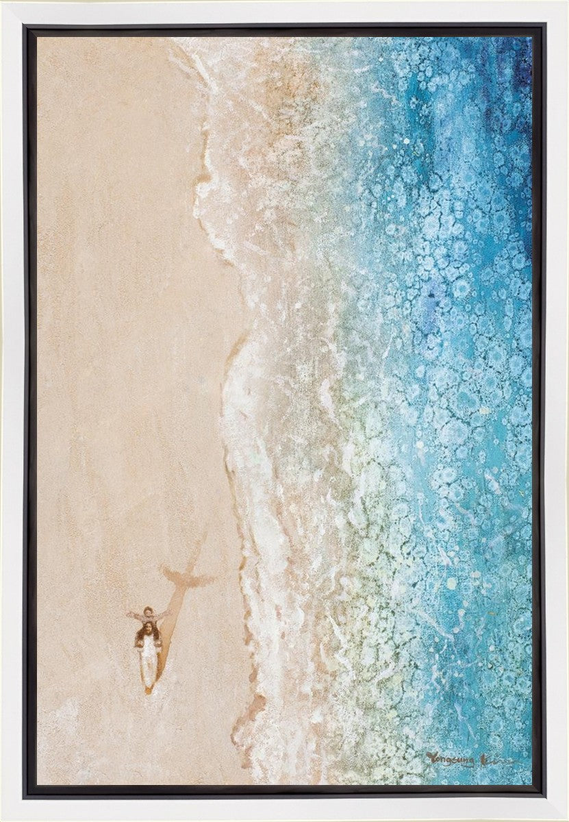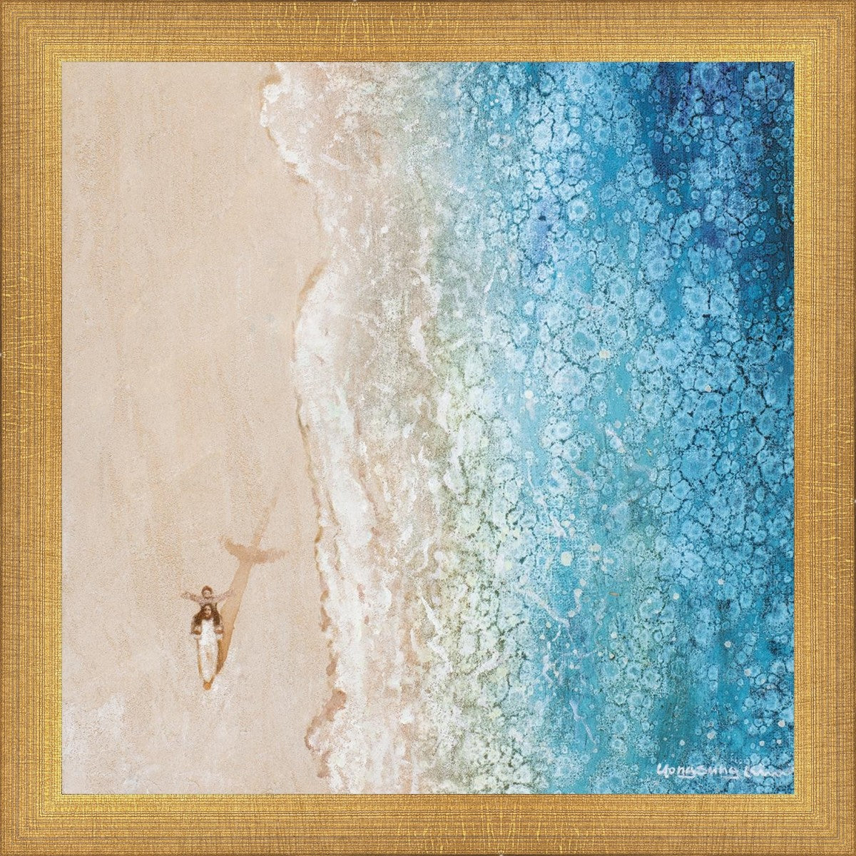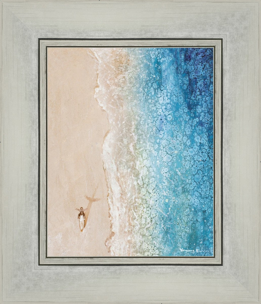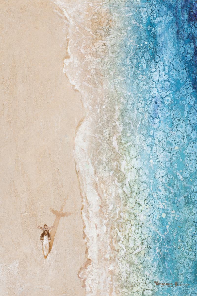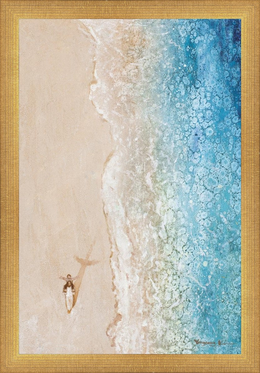 We own a different painting of Jesus walking on water that's stunning and then I bought this painting for my Best Friend after losing her Son to suicide. She said it makes her feel like her son is on Jesus shoulders in this painting and she absolutely loves it. This artist is TALENTED!