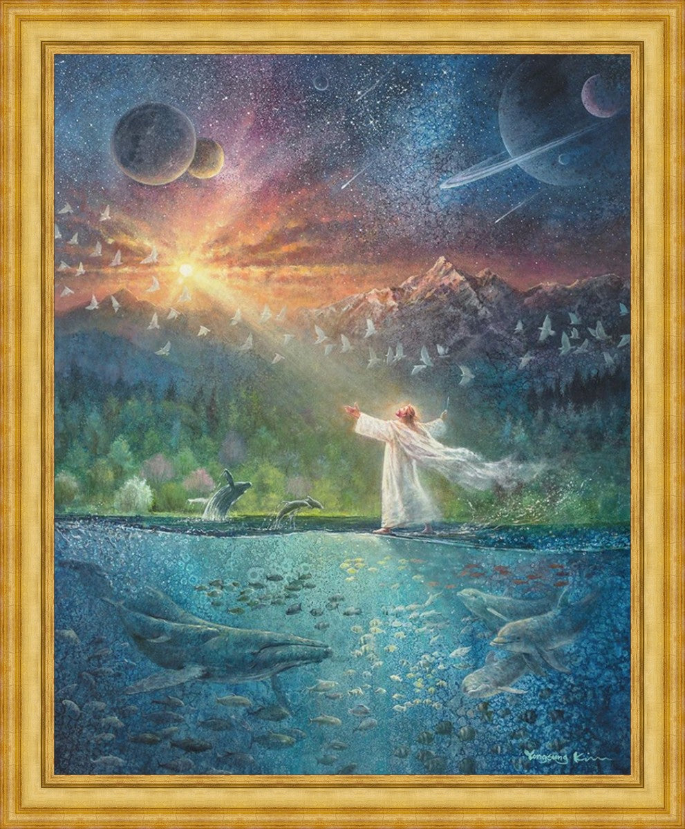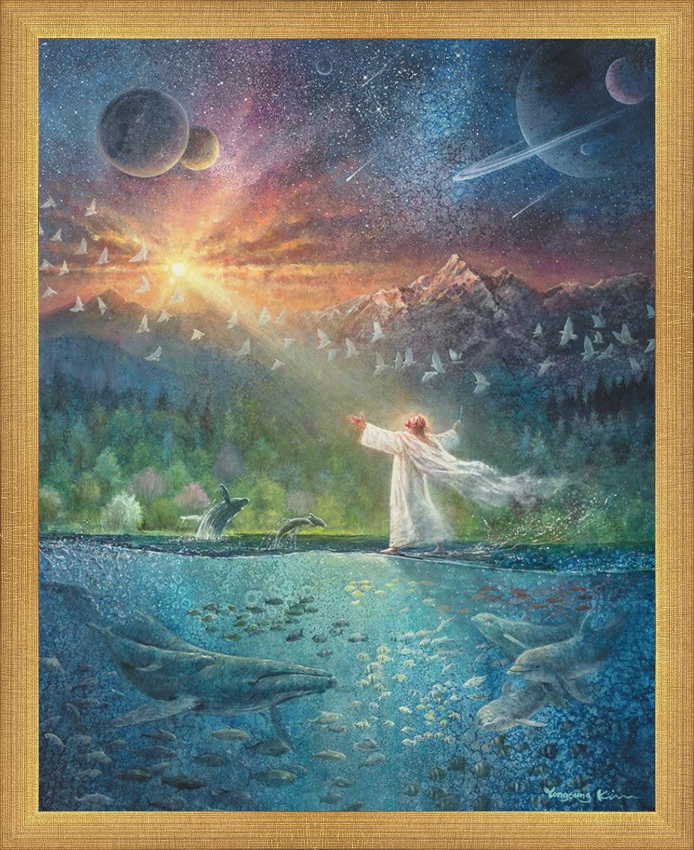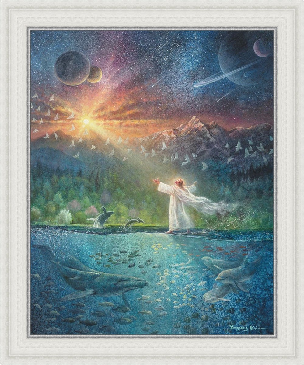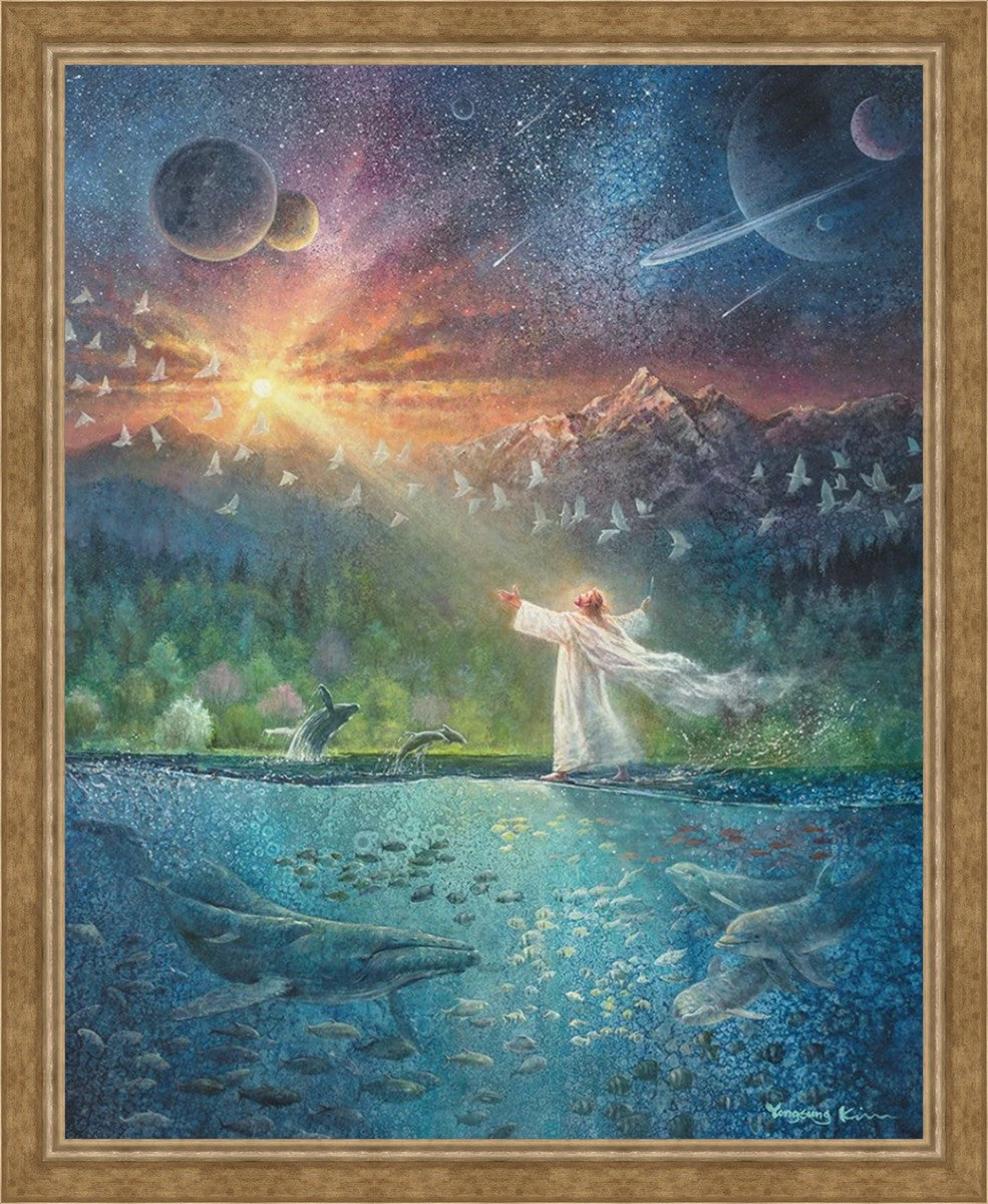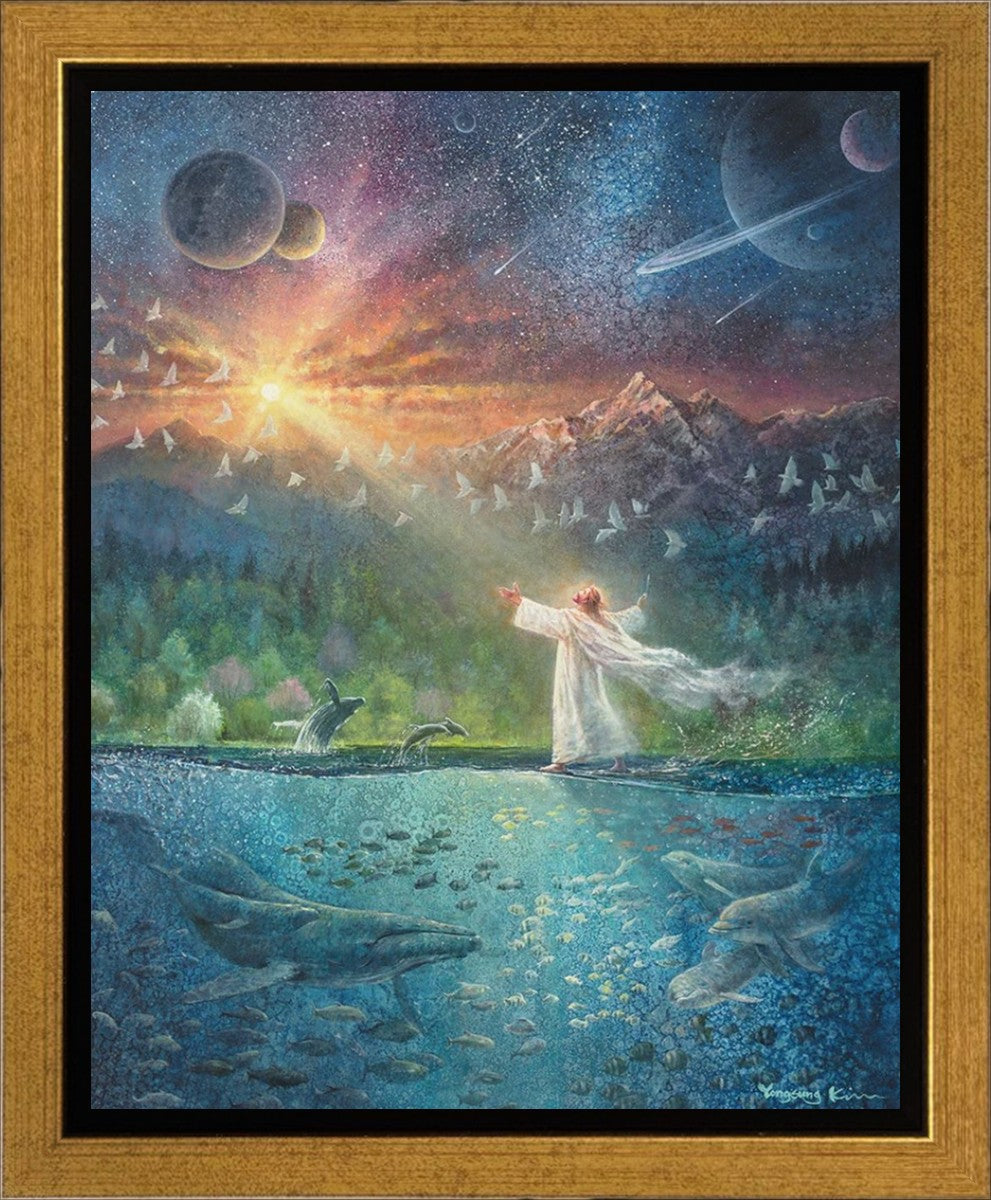 My struggle over all that time was to capture these initial emotions and vision. I wanted to show ALL creation - the sky, the sun, the moon, the Milky Way, the stars, the land, and the sea. In this, I would bring together all the creatures, all the creations of God in nature and have them praising God, according to the direction of the Creator, Jesus. This was a beautiful and majestic scene to just simply imagine.