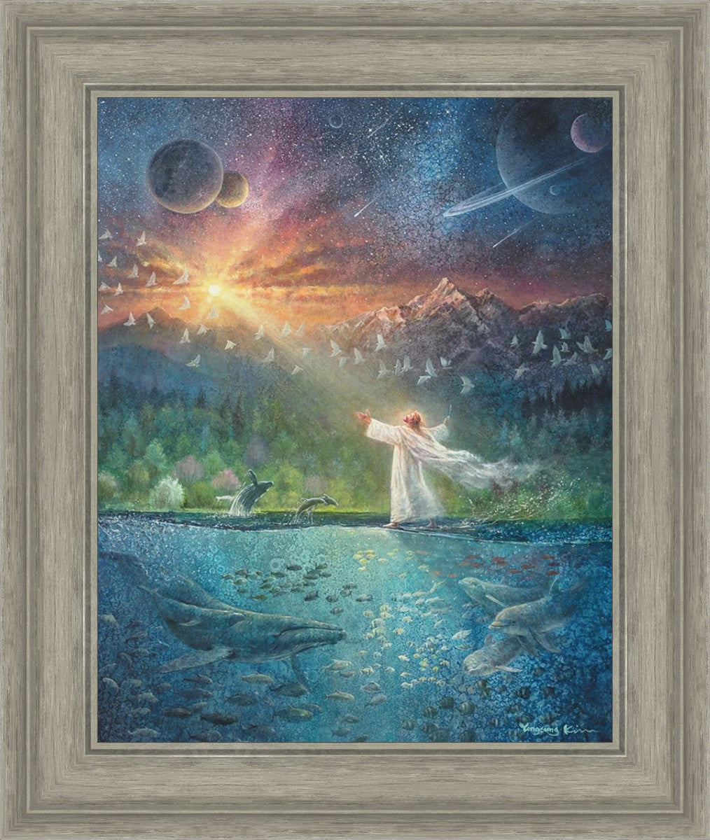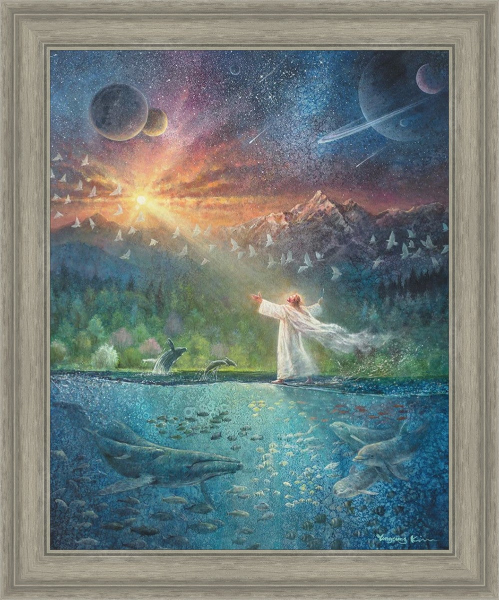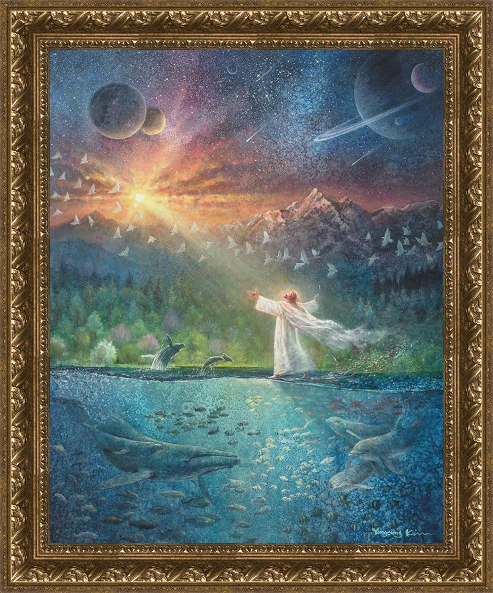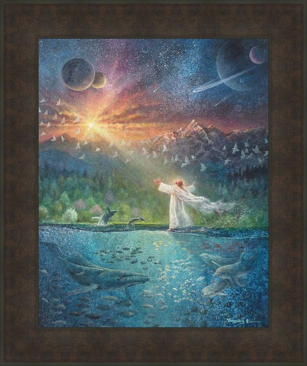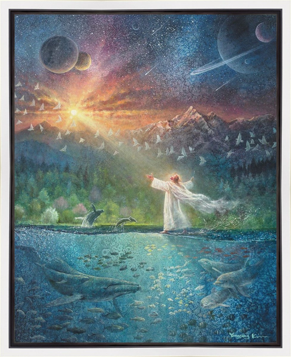My struggle over all that time was to capture these initial emotions and vision. I wanted to show ALL creation - the sky, the sun, the moon, the Milky Way, the stars, the land, and the sea. In this, I would bring together all the creatures, all the creations of God in nature and have them praising God, according to the direction of the Creator, Jesus. This was a beautiful and majestic scene to just simply imagine.