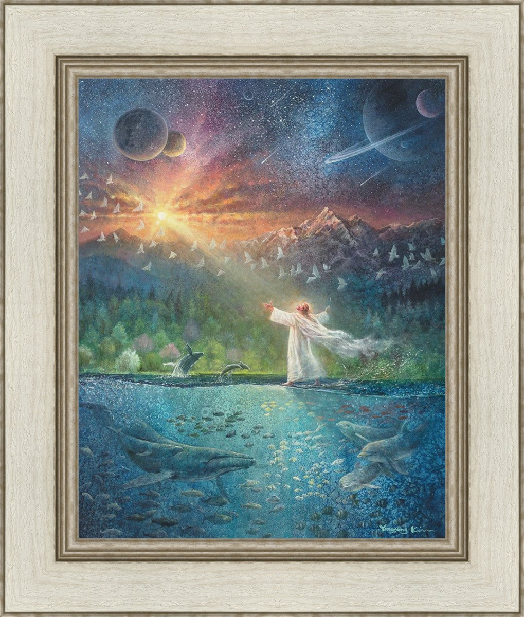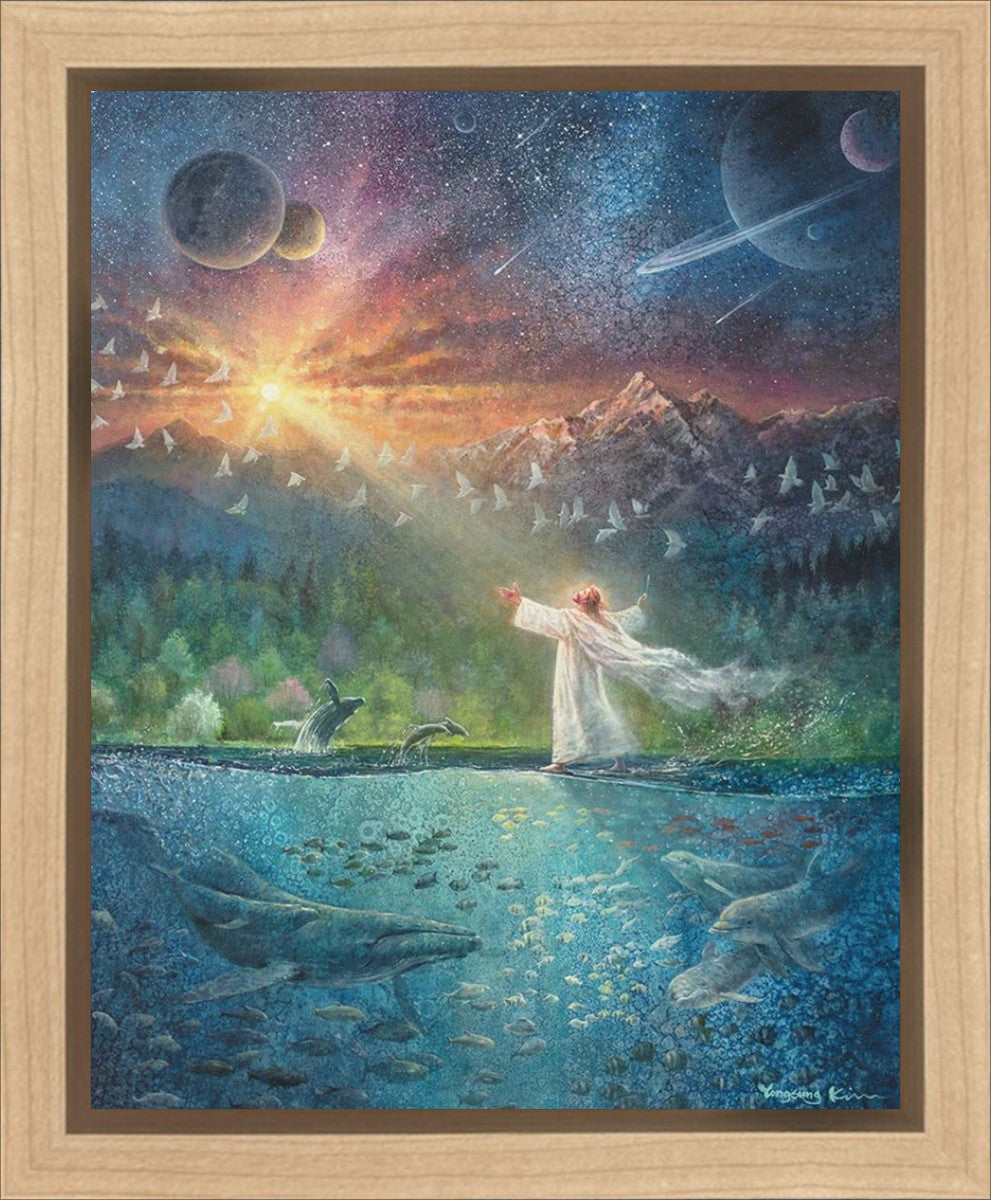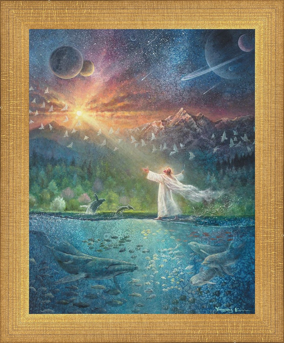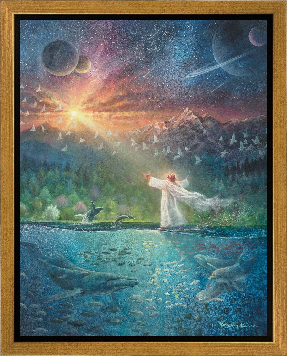 My struggle over all that time was to capture these initial emotions and vision. I wanted to show ALL creation - the sky, the sun, the moon, the Milky Way, the stars, the land, and the sea. In this, I would bring together all the creatures, all the creations of God in nature and have them praising God, according to the direction of the Creator, Jesus. This was a beautiful and majestic scene to just simply imagine.