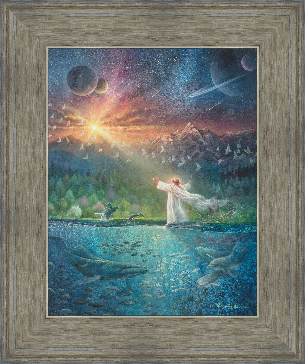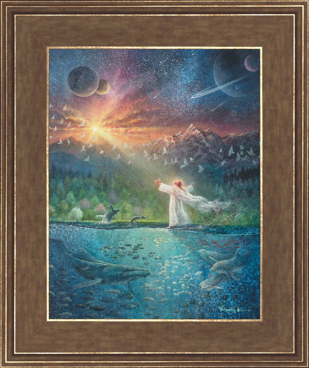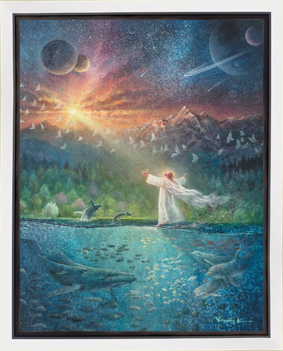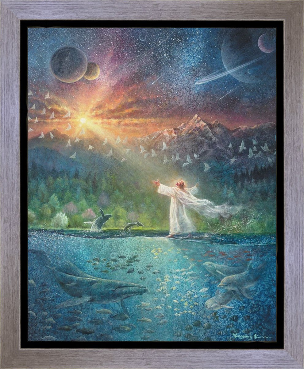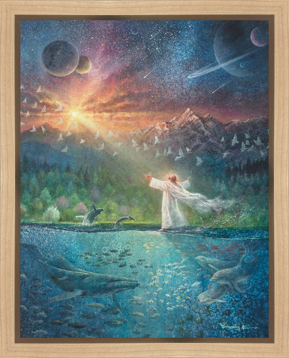 My struggle over all that time was to capture these initial emotions and vision. I wanted to show ALL creation - the sky, the sun, the moon, the Milky Way, the stars, the land, and the sea. In this, I would bring together all the creatures, all the creations of God in nature and have them praising God, according to the direction of the Creator, Jesus. This was a beautiful and majestic scene to just simply imagine.