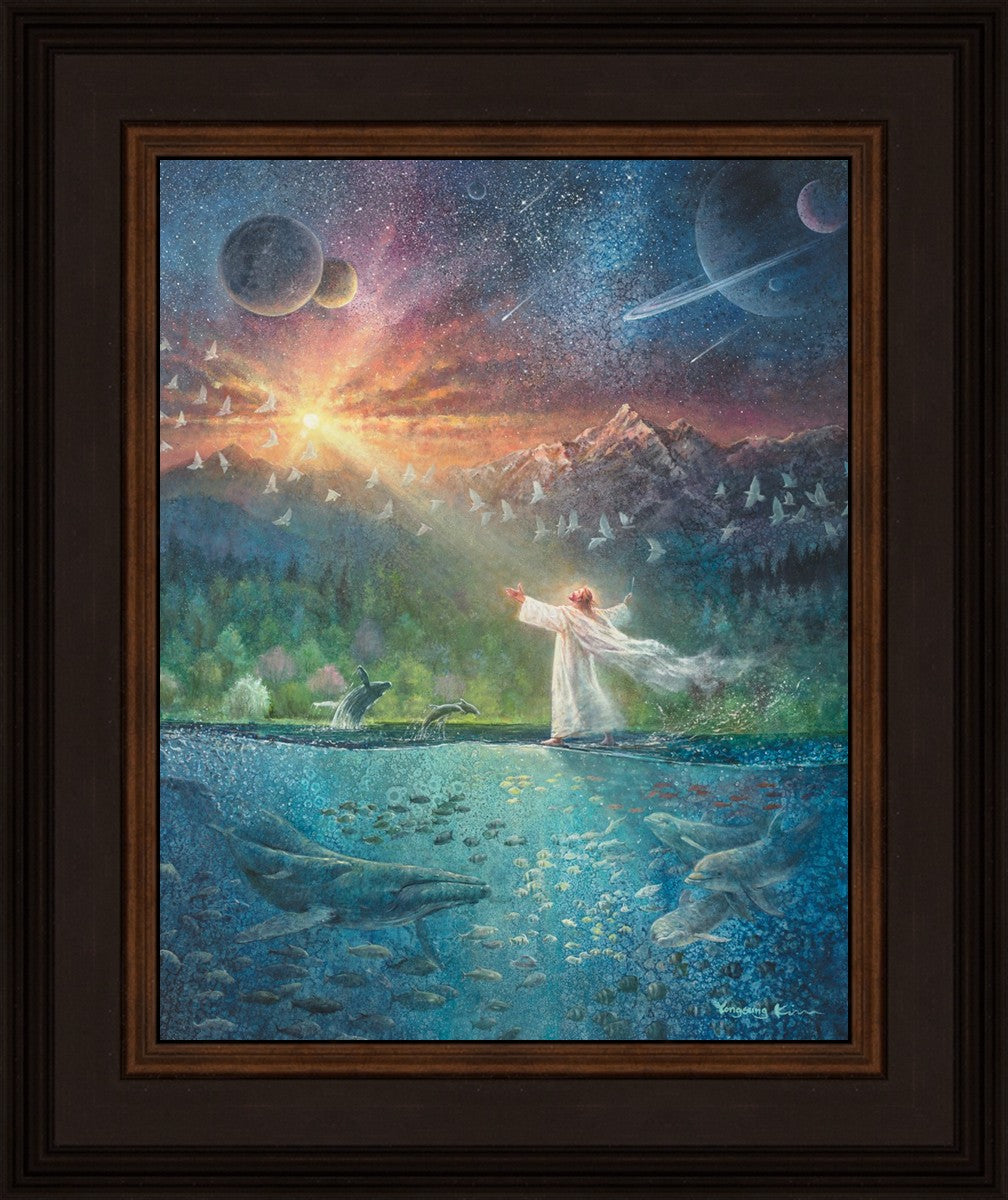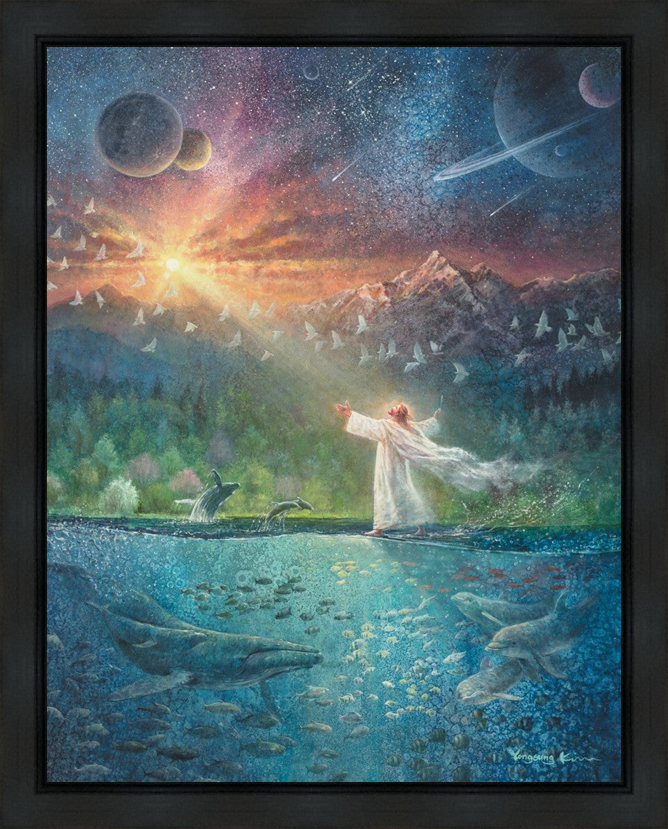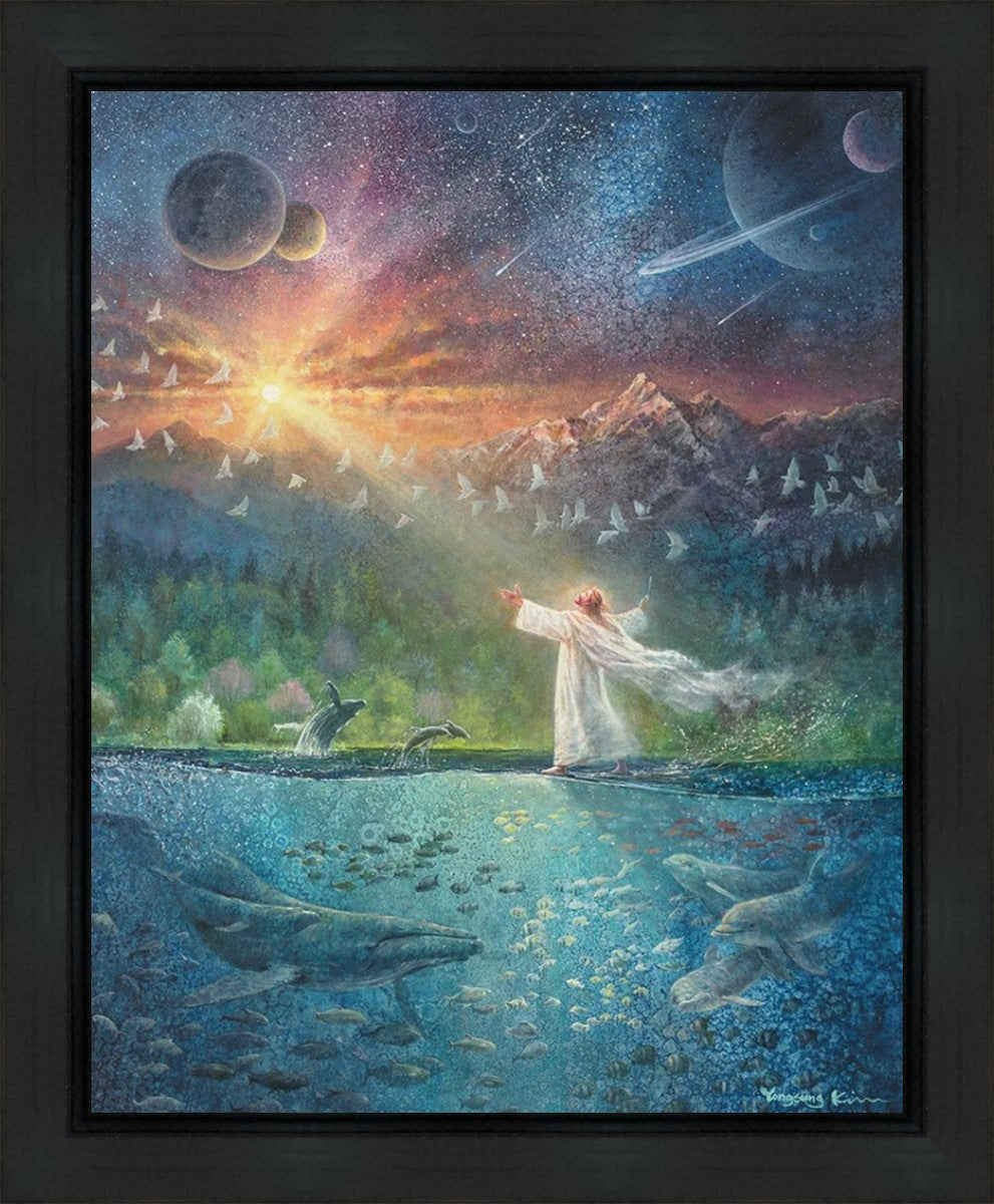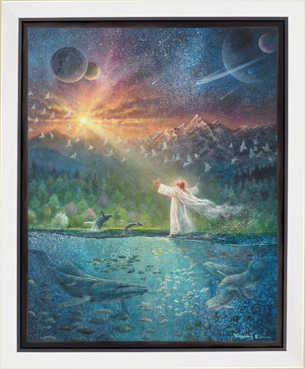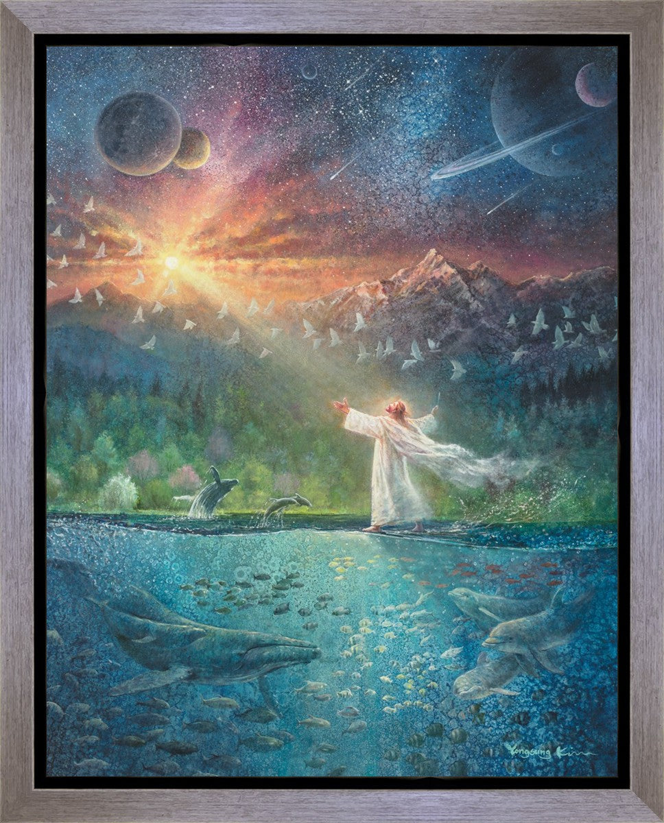 My struggle over all that time was to capture these initial emotions and vision. I wanted to show ALL creation - the sky, the sun, the moon, the Milky Way, the stars, the land, and the sea. In this, I would bring together all the creatures, all the creations of God in nature and have them praising God, according to the direction of the Creator, Jesus. This was a beautiful and majestic scene to just simply imagine.